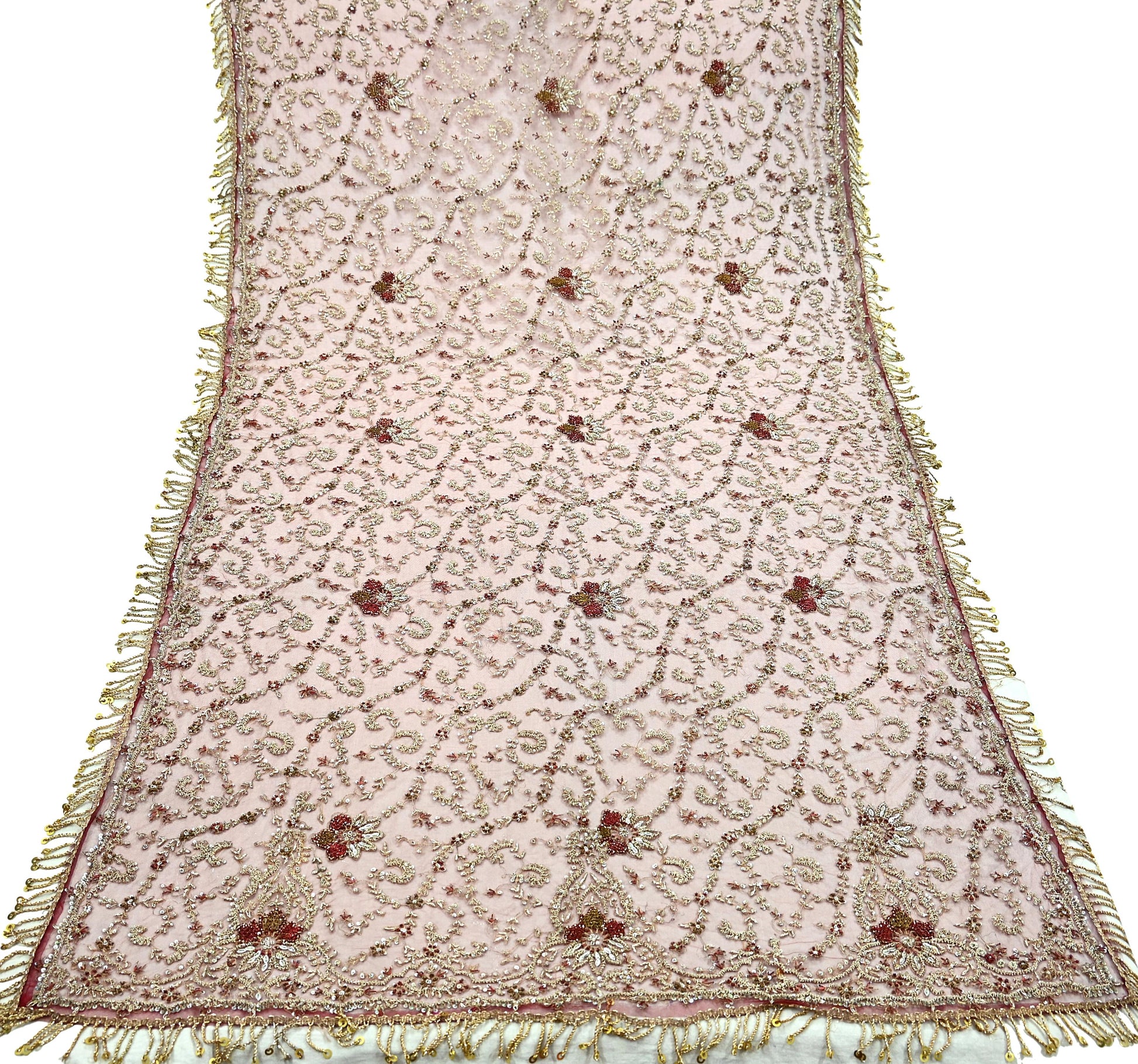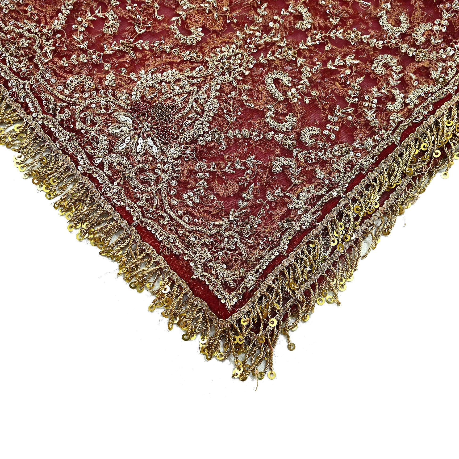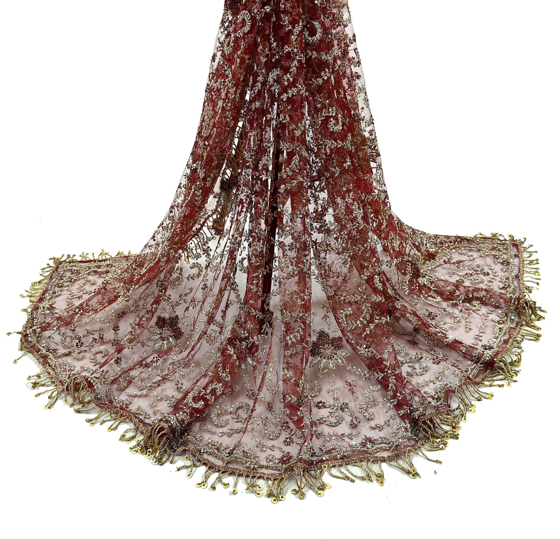 Indian Vintage Heavy Bridal Maroon Dupatta Net Mesh Long Stole Hand Embroidered Scarves Zardozi Dabka Zari Wedding dupatta veil hijab