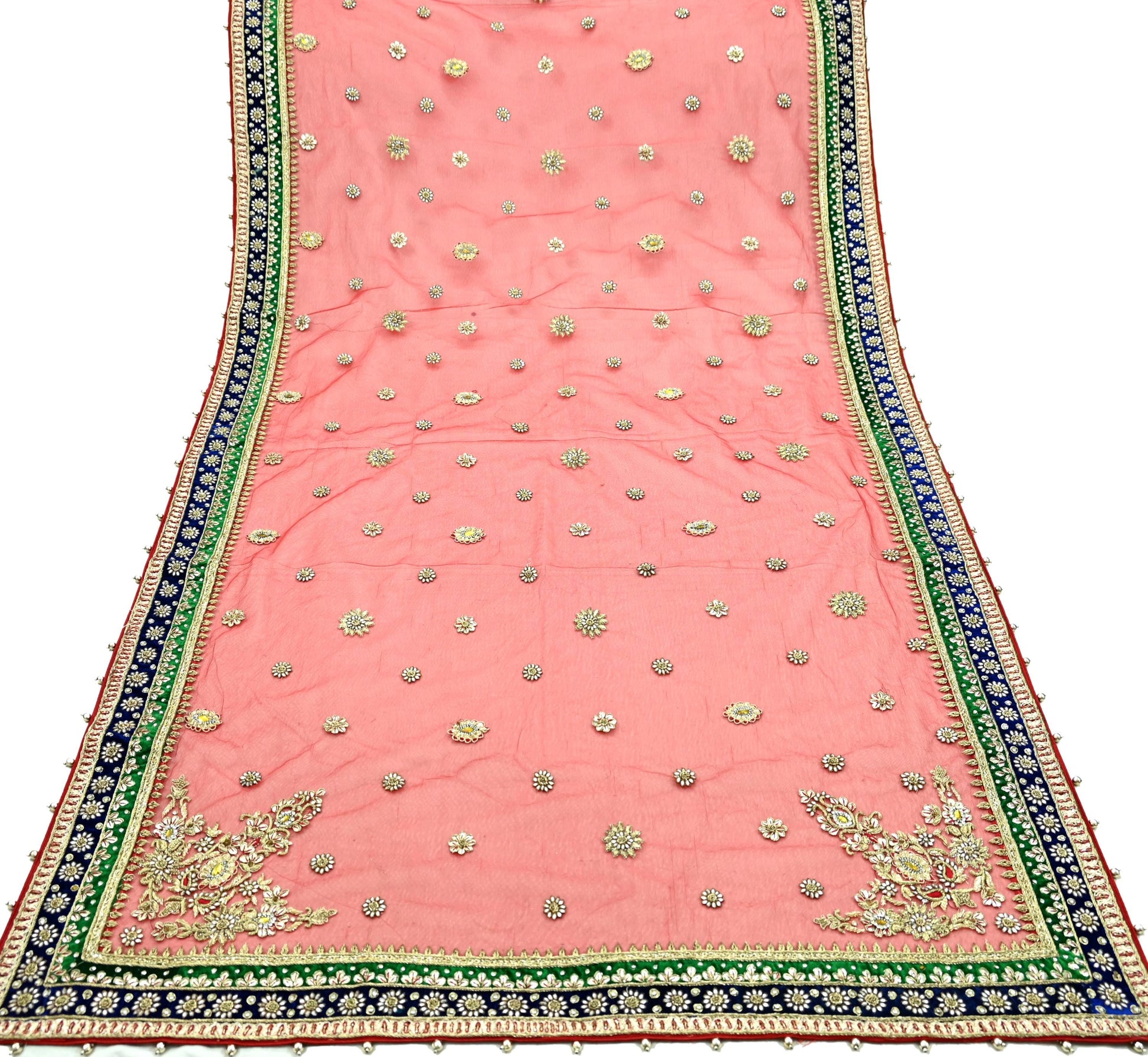 Indian Vintage Heavy Bridal Red Dupatta Net Mesh Long Stole Hand Embroidered Scarves Golden Zardozi Dabka Zari Sequins Wedding Veil Hijab