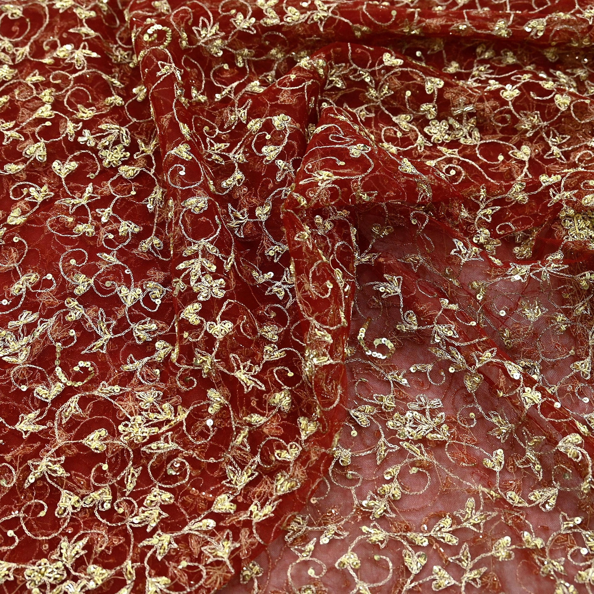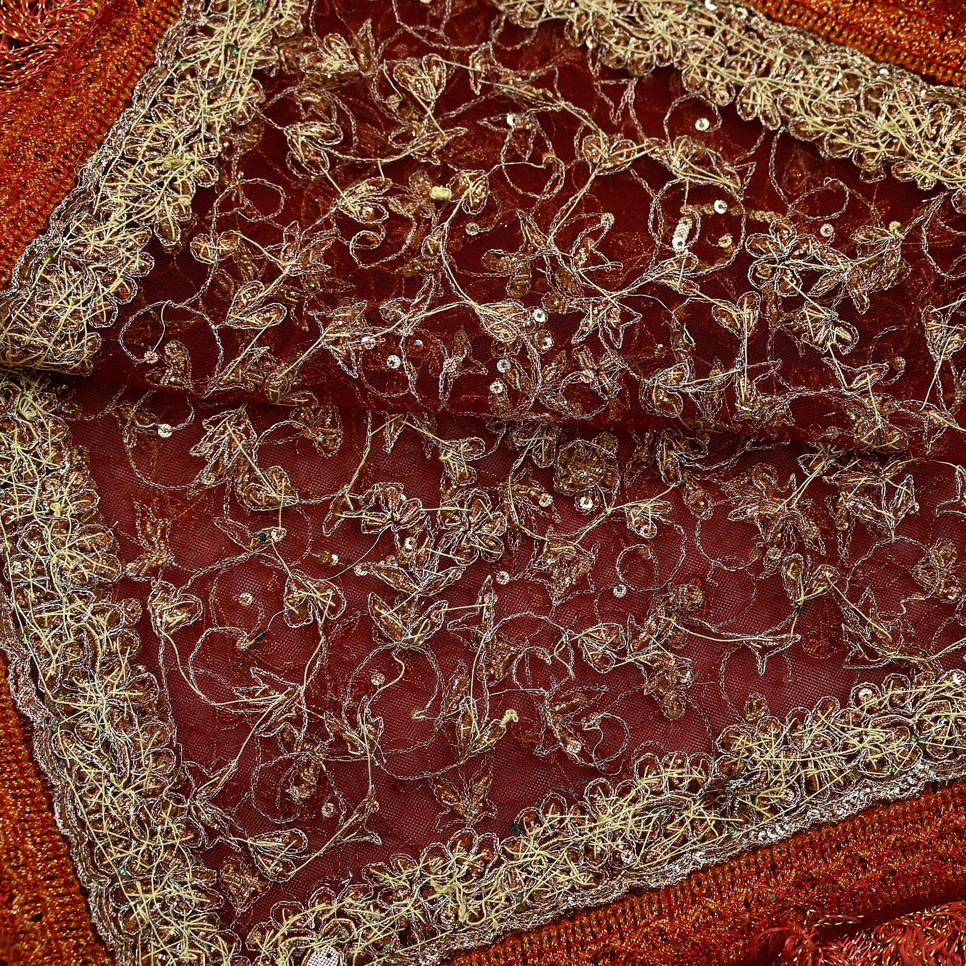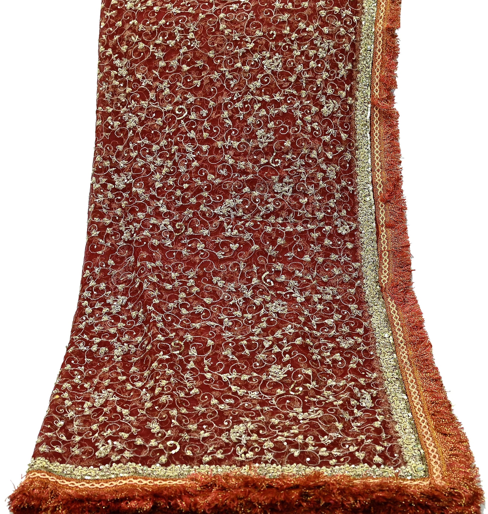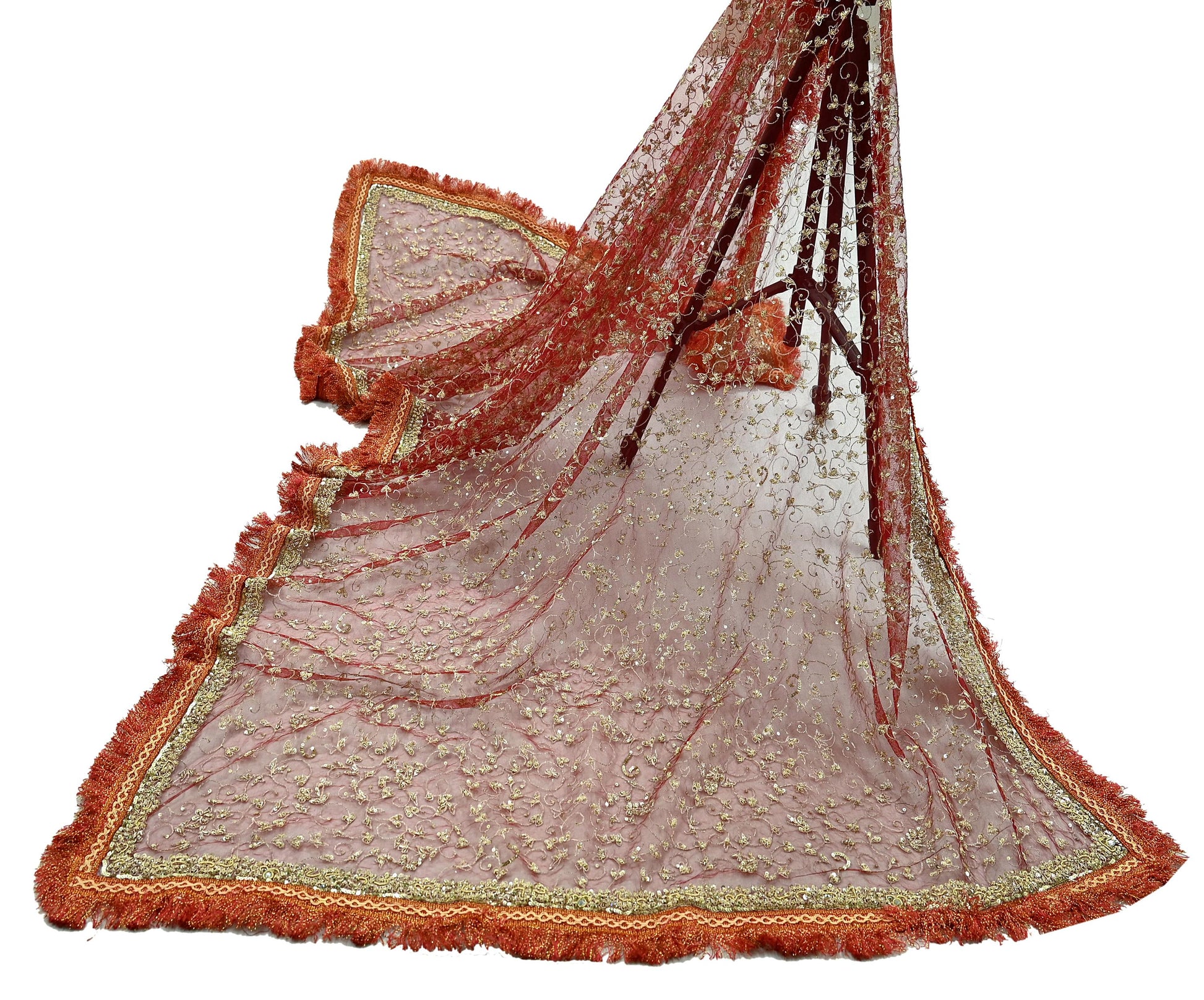 Indian Vintage Heavy Bridal Red Dupatta Net Mesh Long Stole Hand Embroidered Scarves Zardozi Dabka Zari Wedding dupatta veil hijab Fringes