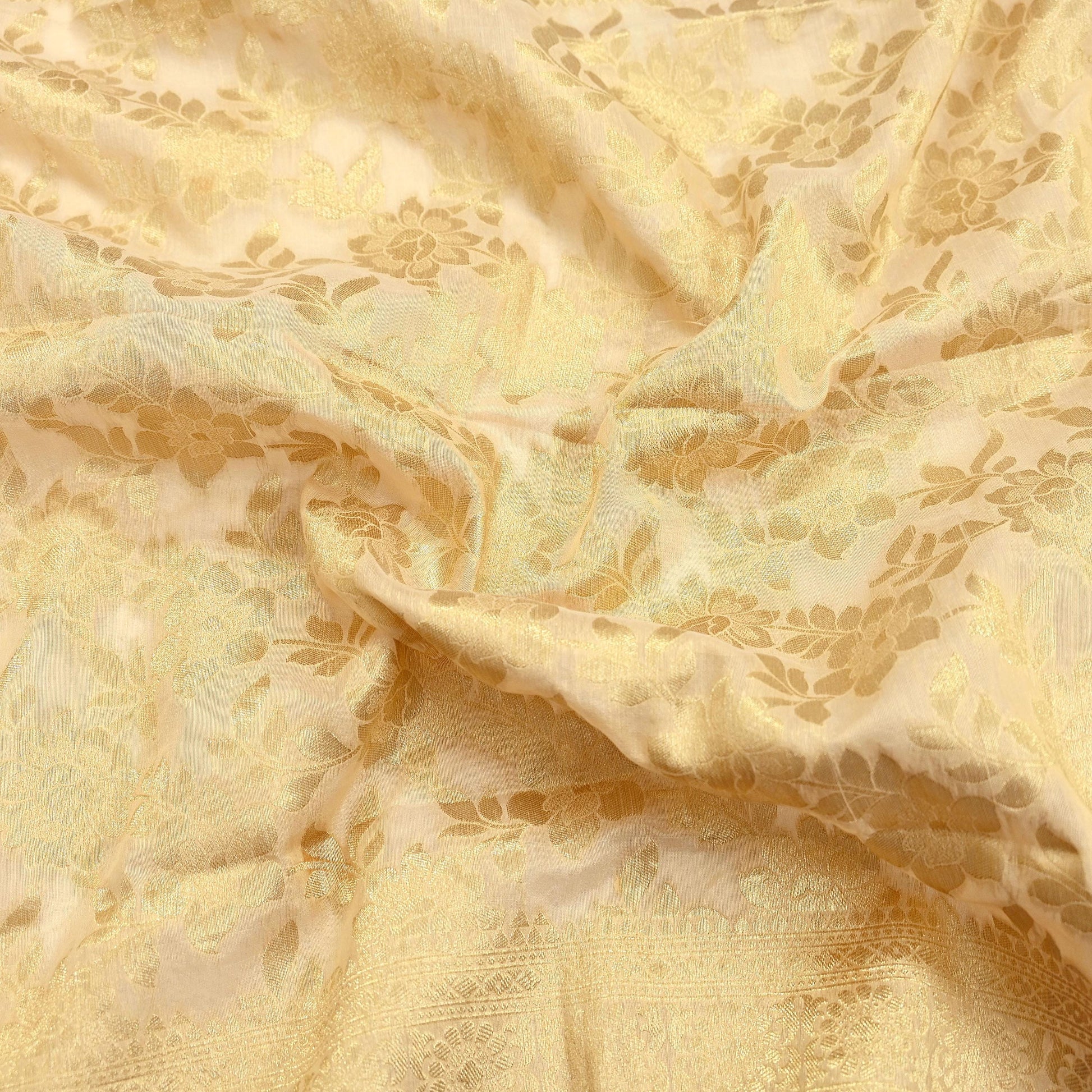 Indian Vintage Heavy Golden Beige Dupatta Pure Silk Long Stole Hand Woven Banarasi Veil Scarves Zari Stole Ethnic Wear Bridal Hijab