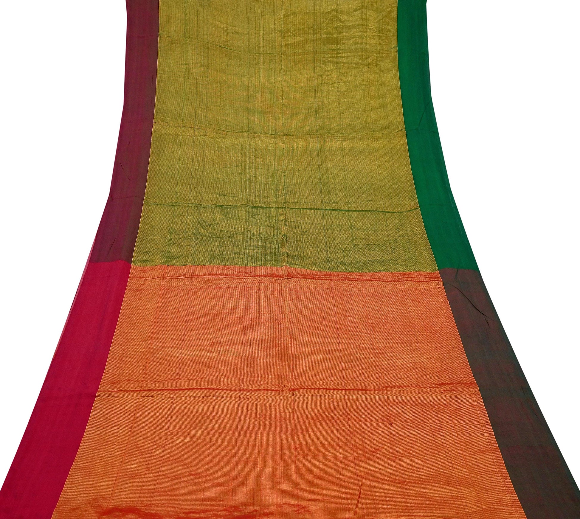 Indian Vintage Heavy Green & Maoon Woven Kanjivaram Saree 100% Pure Silk Sari Zari 5Yard Paisley Dress making Crafting Quilting Upcycle
