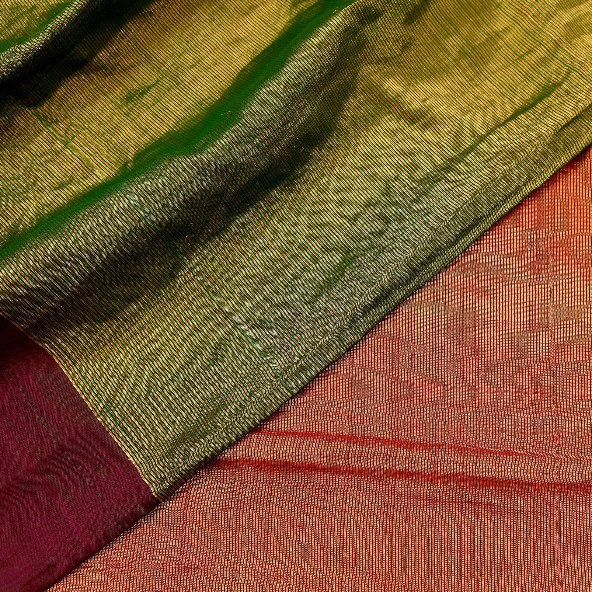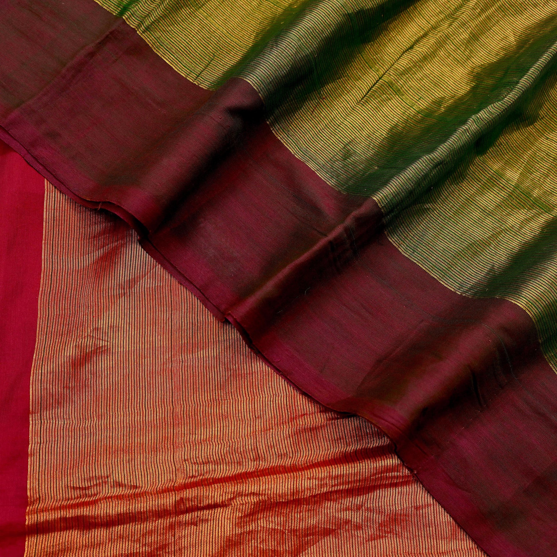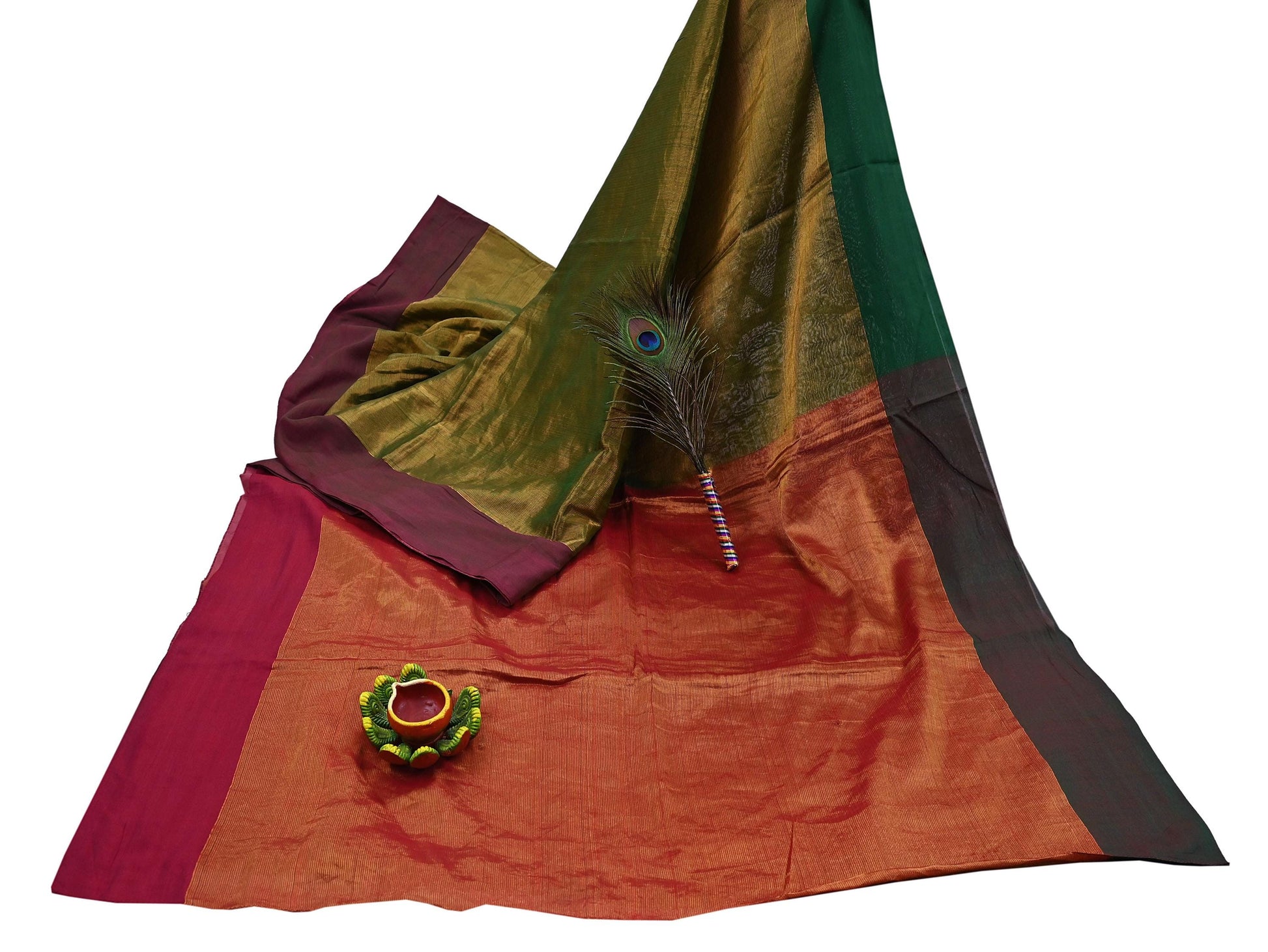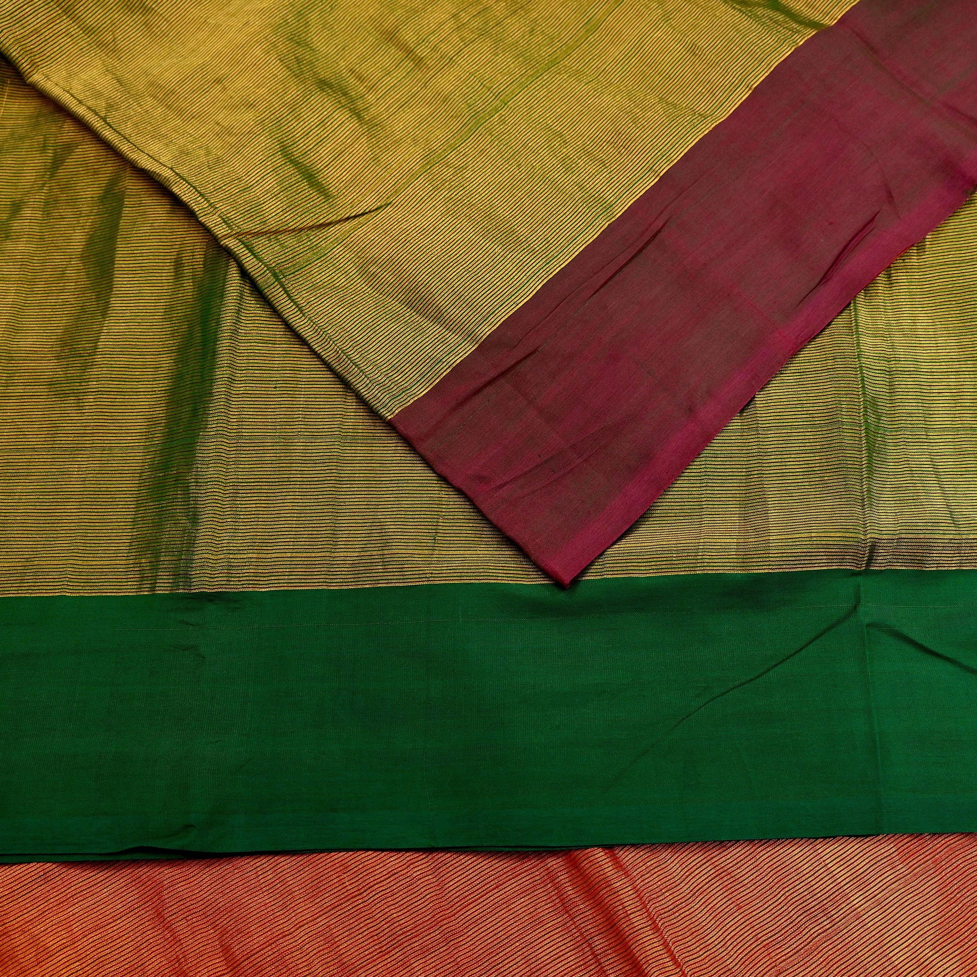 Vintage Heavy Handwoven Kanjivaram Pure Silk Saree – Green & Maoon with Golden & Silver Zari Work