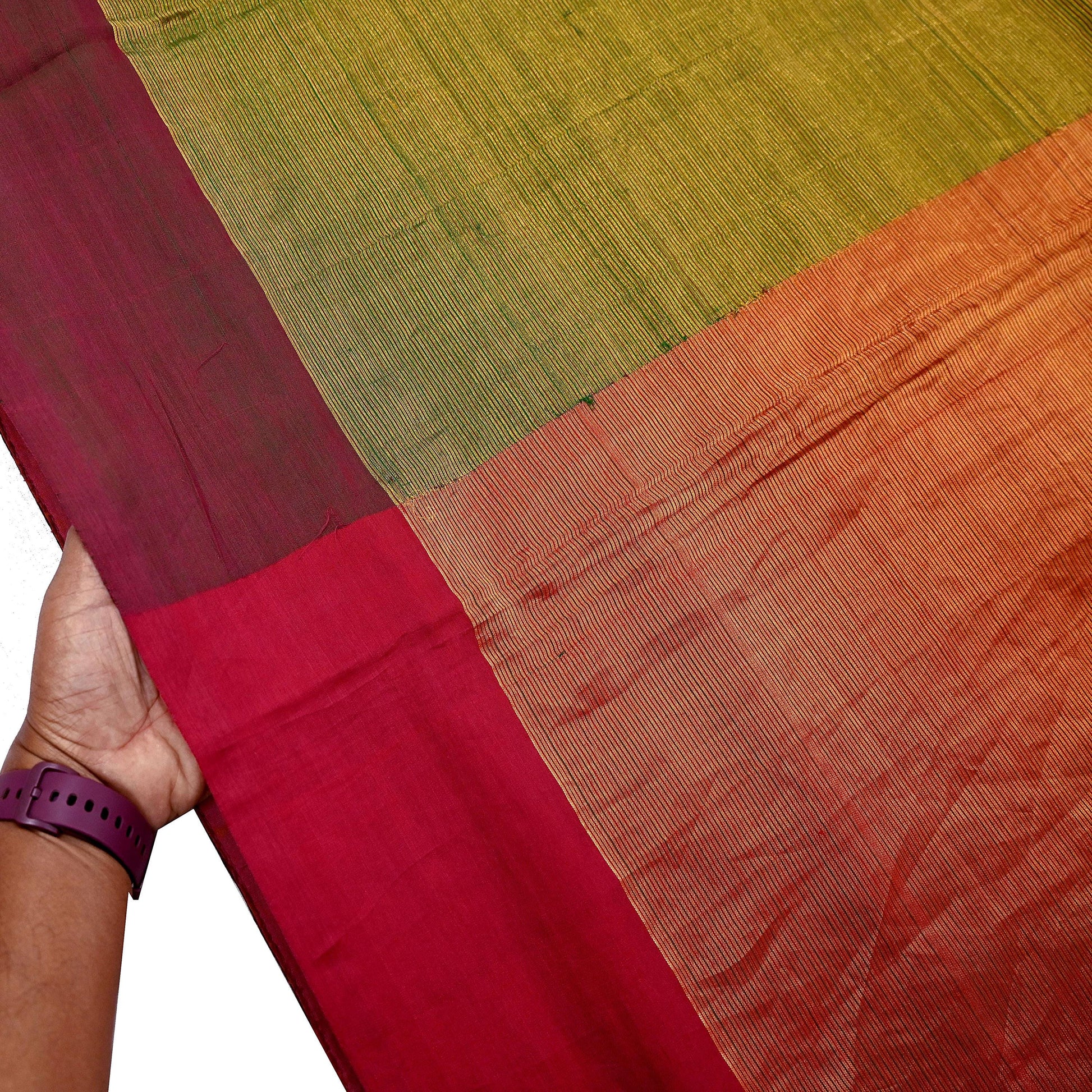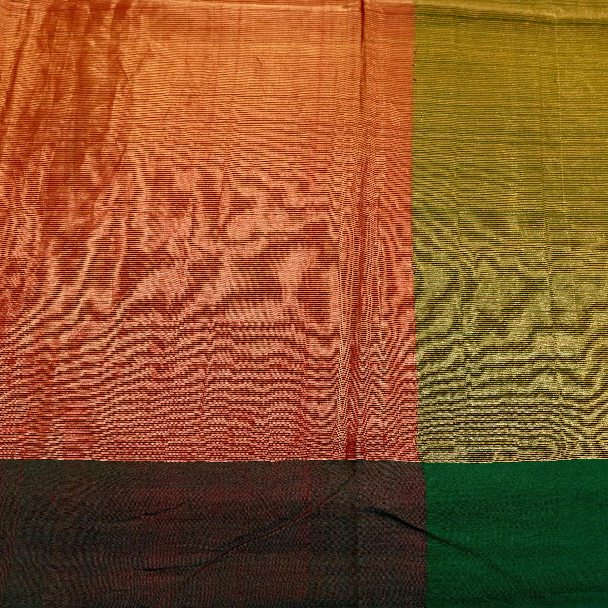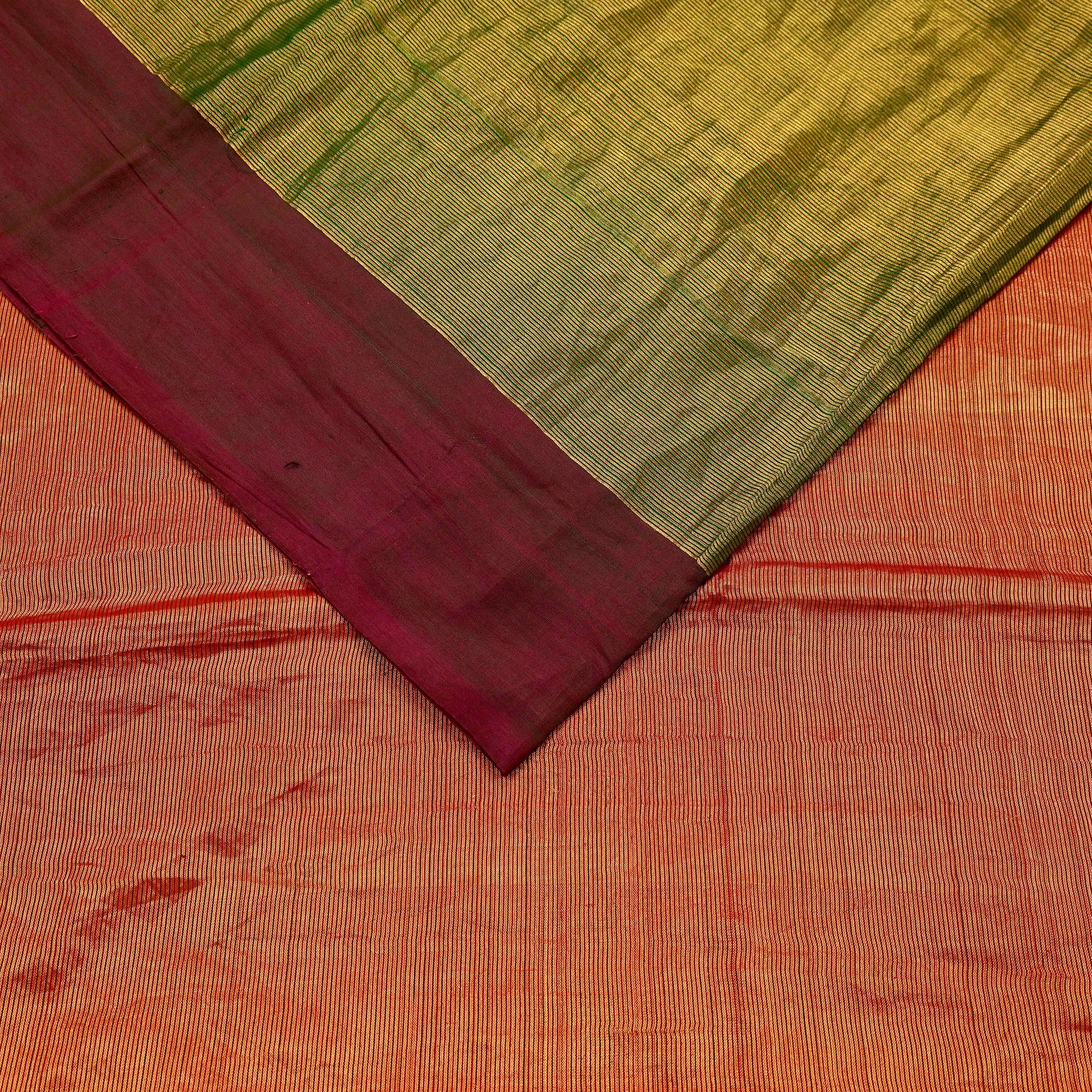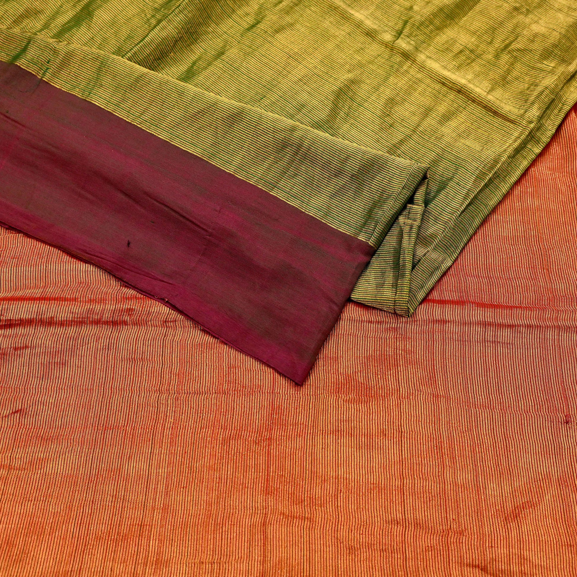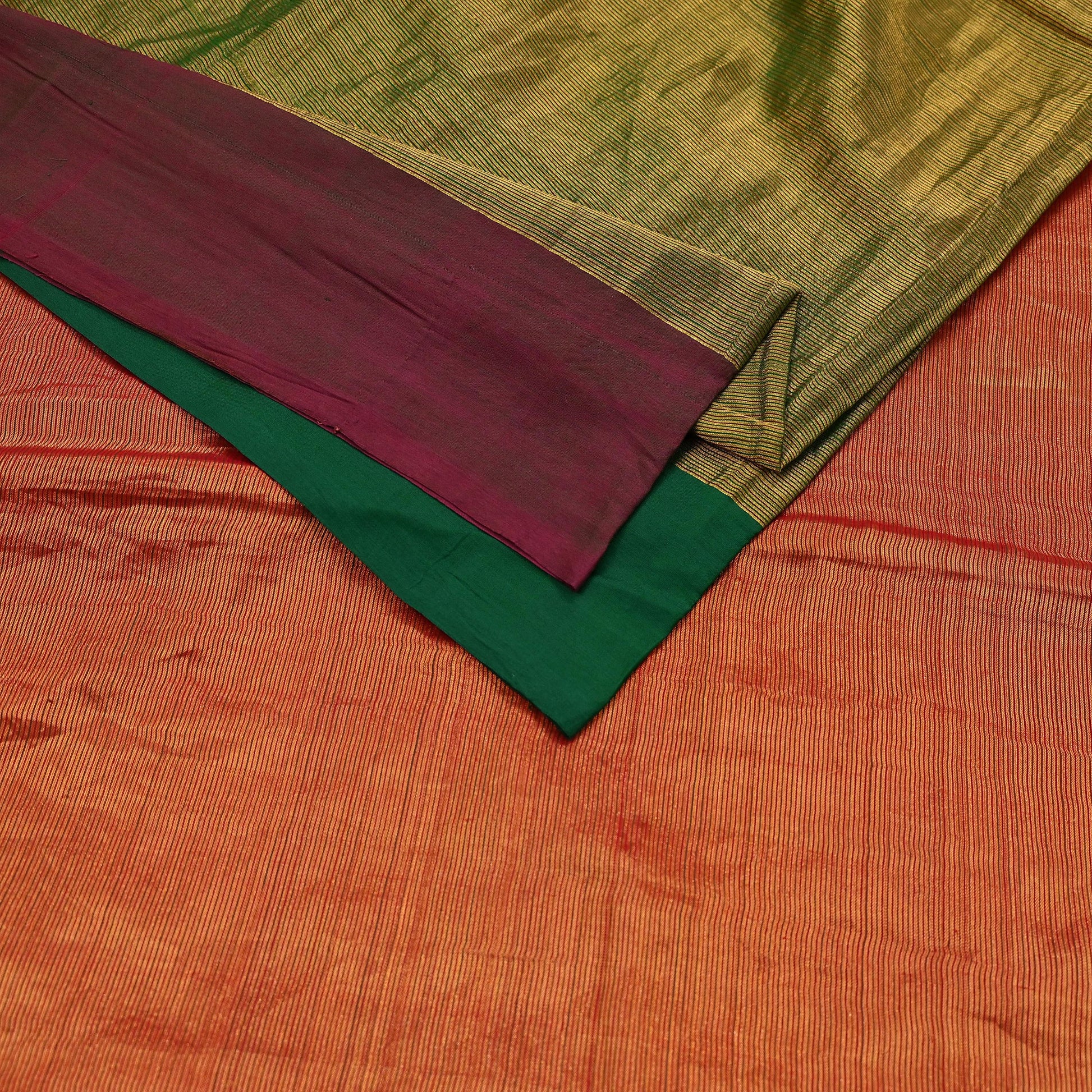 Vintage Heavy Handwoven Kanjivaram Pure Silk Saree – Green & Maoon with Golden & Silver Zari Work