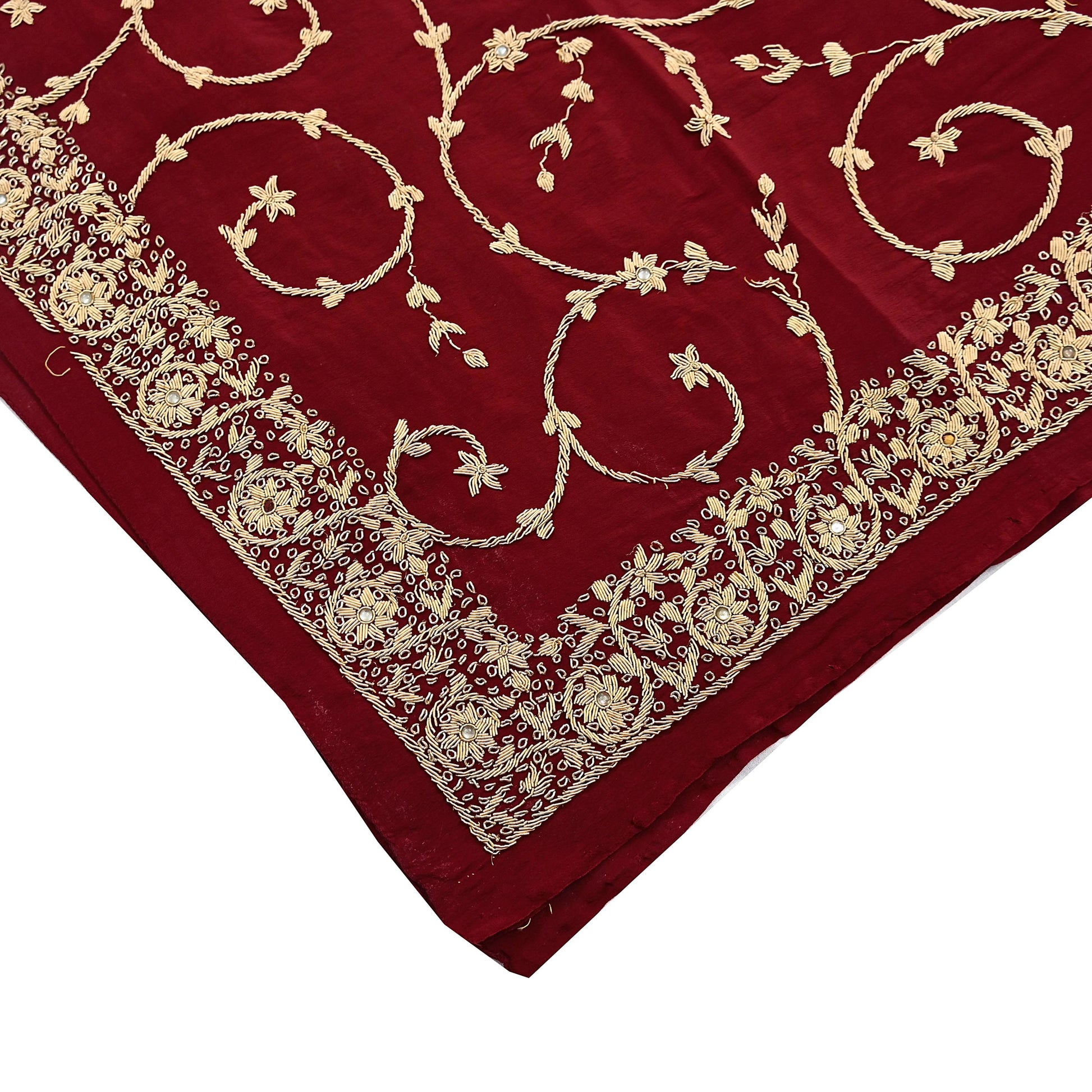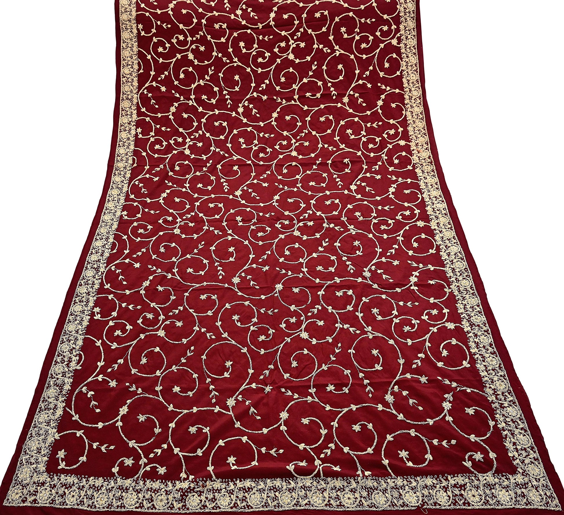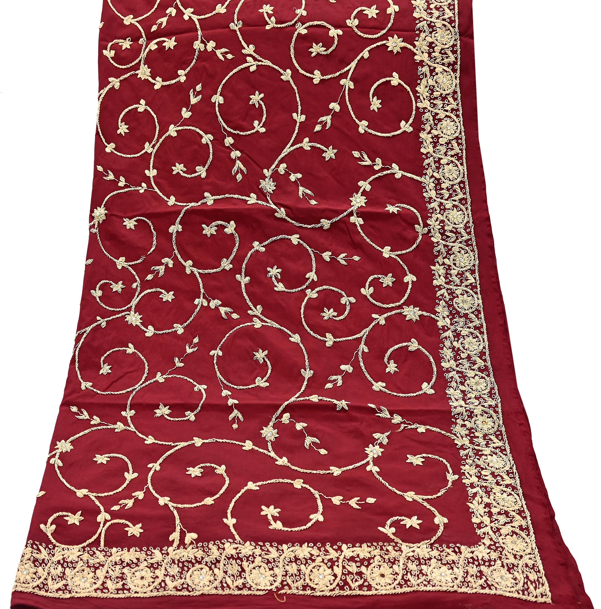Indian Vintage Heavy Maroon Dupatta Pure Crepe Silk Long Stole Hand Embroidered Scarves Dabka Zardozi Zari Scarves Wedding/ Bridal Veil