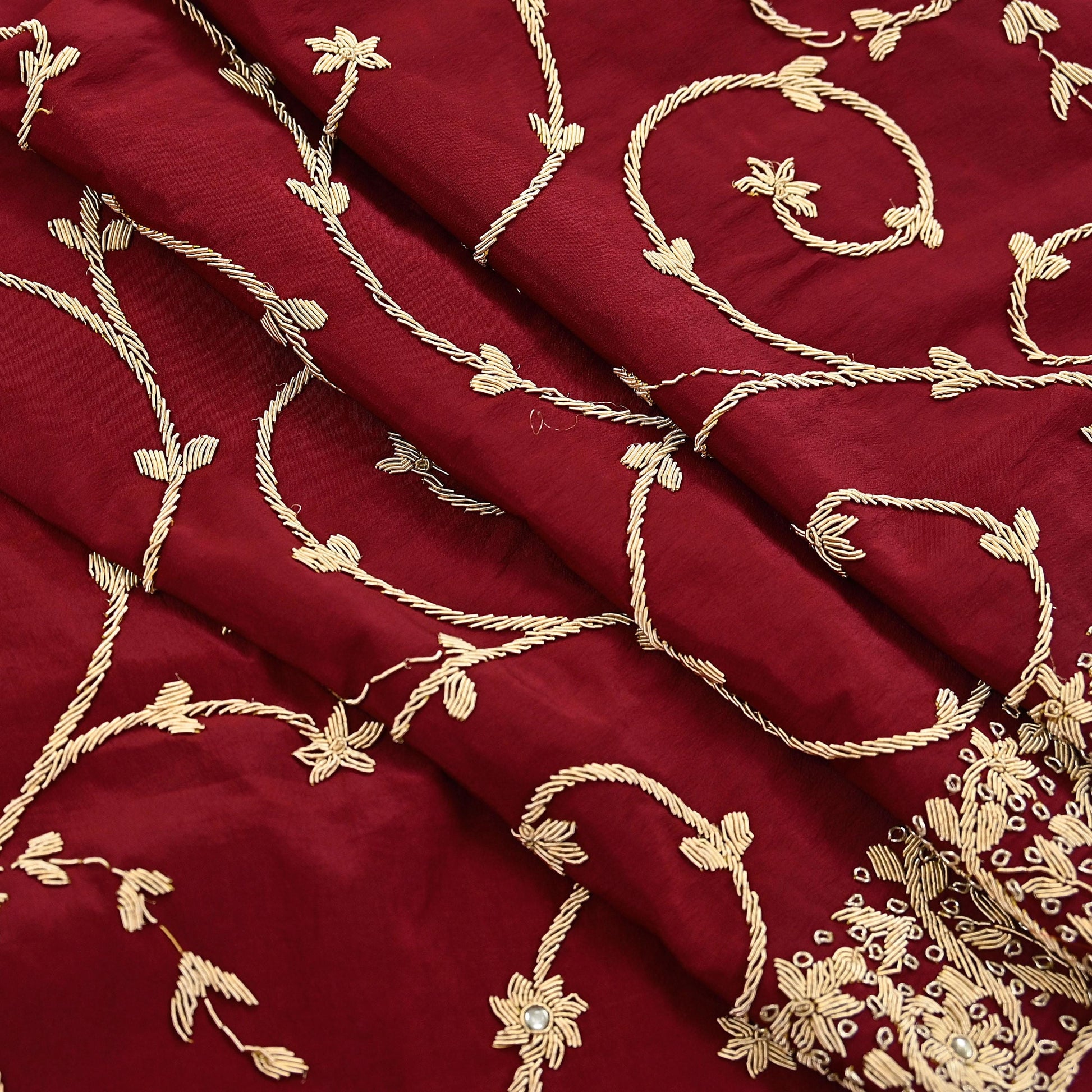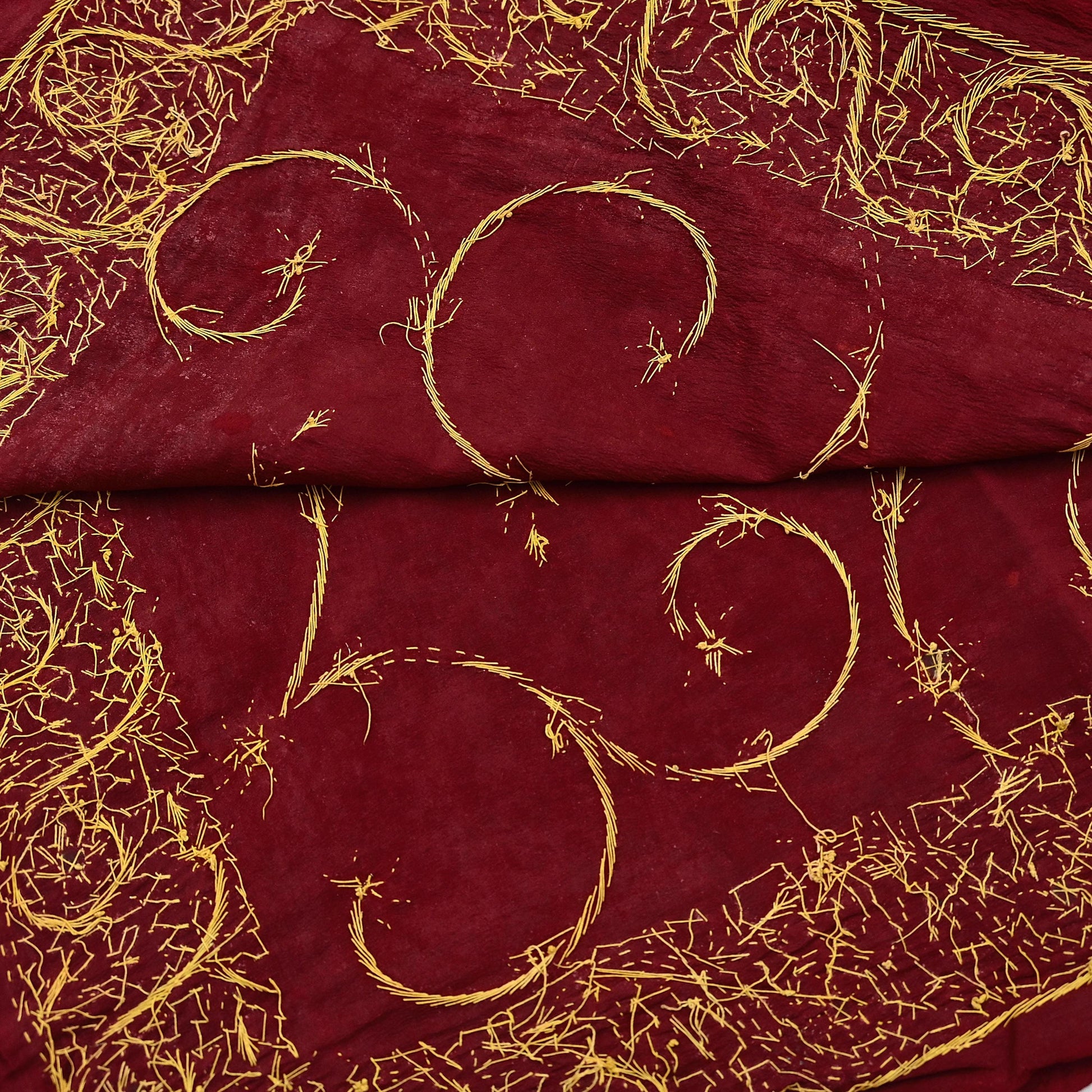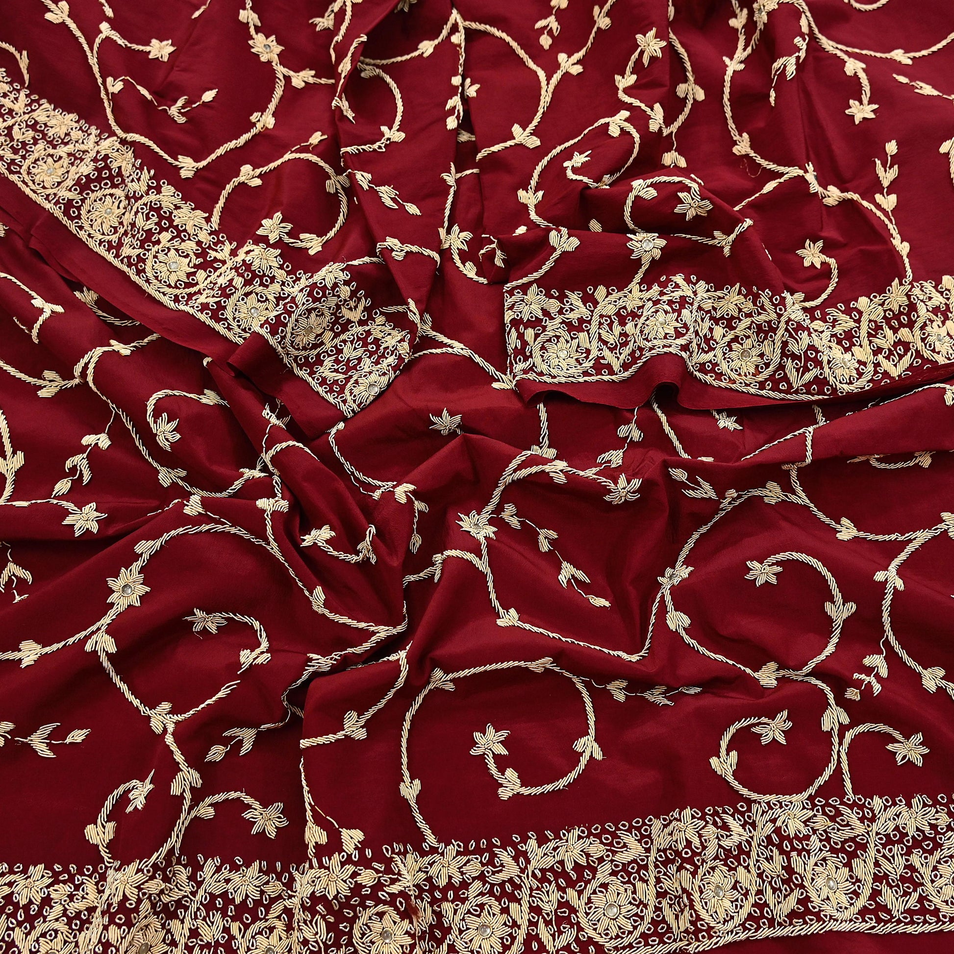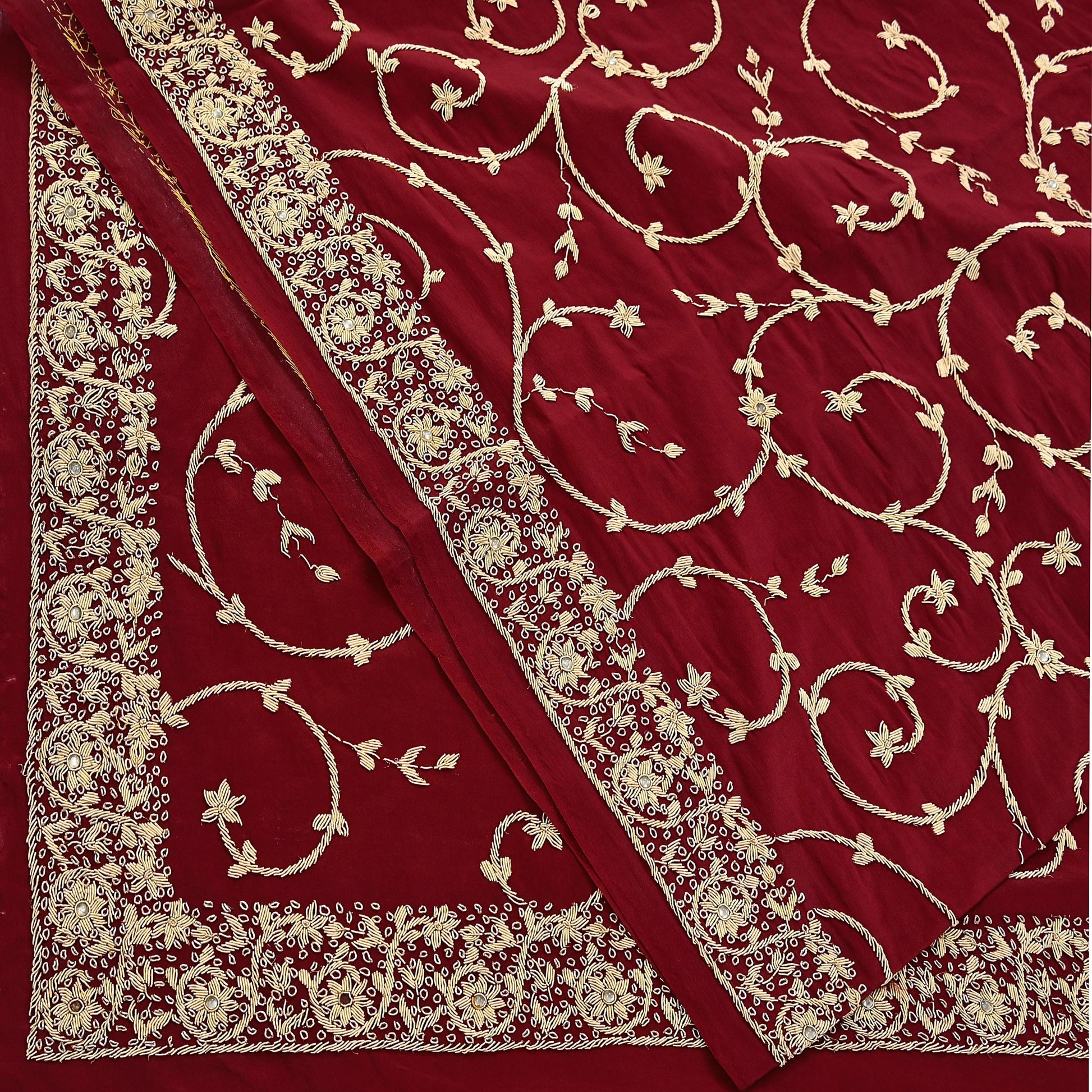Indian Vintage Heavy Maroon Dupatta Pure Crepe Silk Long Stole Hand Embroidered Scarves Dabka Zardozi Zari Scarves Wedding/ Bridal Veil