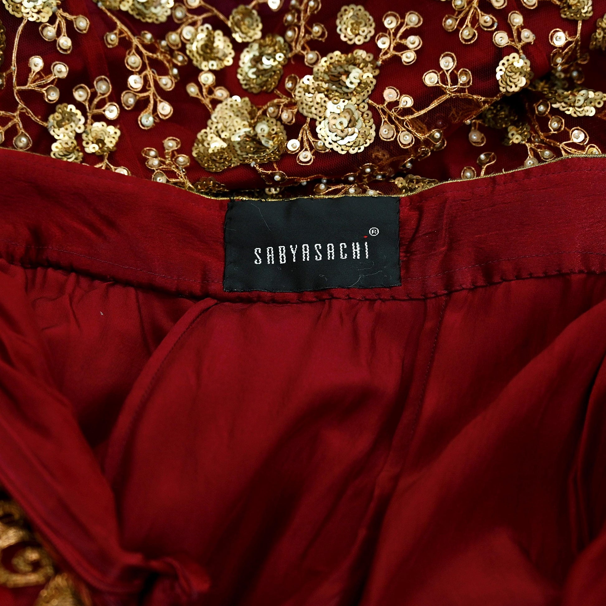 Indian Vintage Heavy maroon Net/Mesh Hand Embroidered Lehenga Skirt By Designer Sabyasachi Bridal Wear Dabka/ Zardozi
