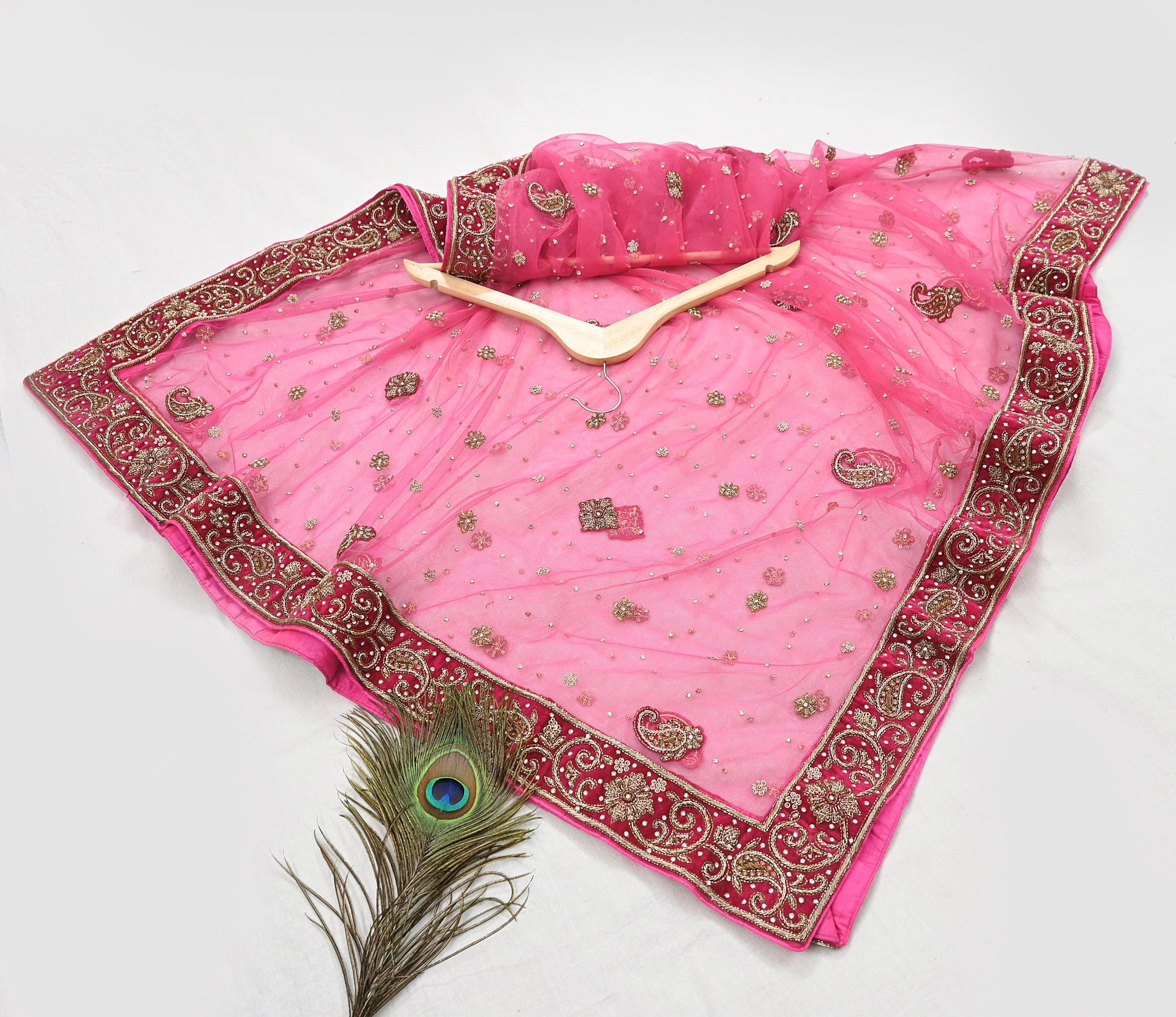 Stunning Beautiful Heavy Dupatta Hand Embroidered Net Dupatta/Stole In Pink Color Fabric. This one of a kind item is difficult to express in words. Border feature is floral & Paisley design embroidered pure metallic golden zardozi/dabka work, golden zari, golden sequins, Golden glass beads, Golden stones work embellished work is the highlight of the dupatta. Also you can see similar Zardozi, Beaded work with floral pattern in center part adds to its beauty. Rani Pink Velvet & Velvet Patches Border work is giving a fabulous look to the dupatta. Awesome one !!!