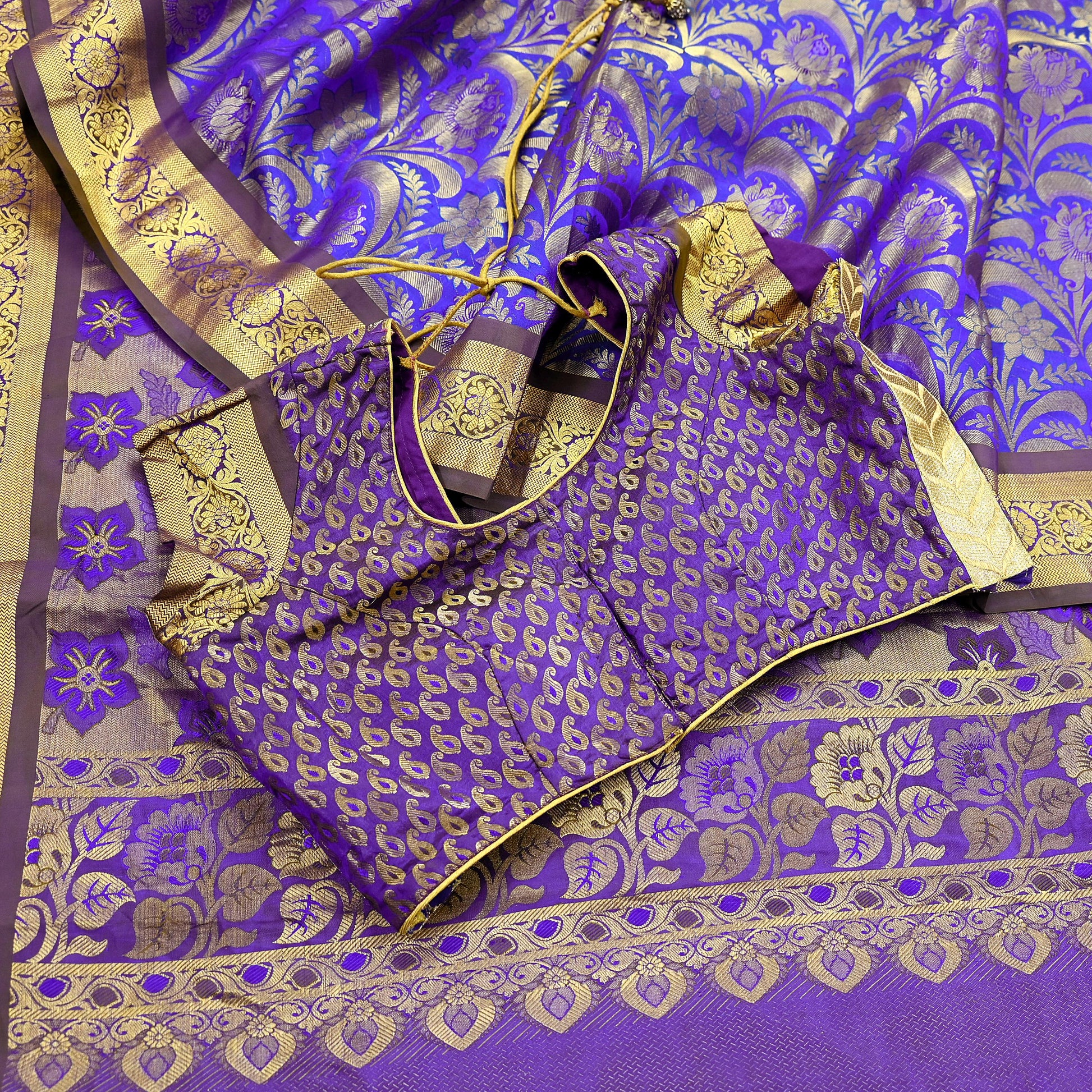 *We offers this vintage Purple & Blue color saree which is crafted with 100% Pure Silk.