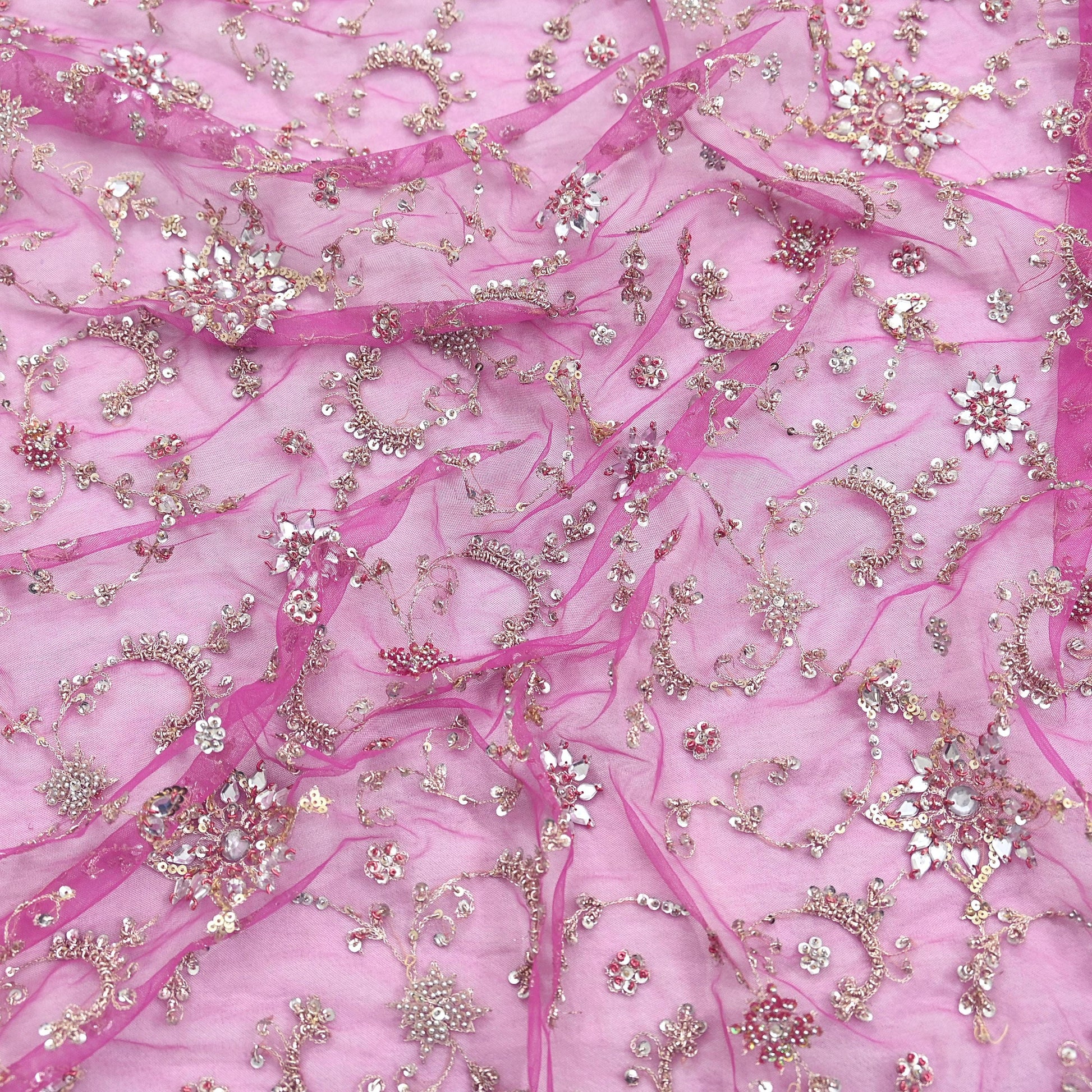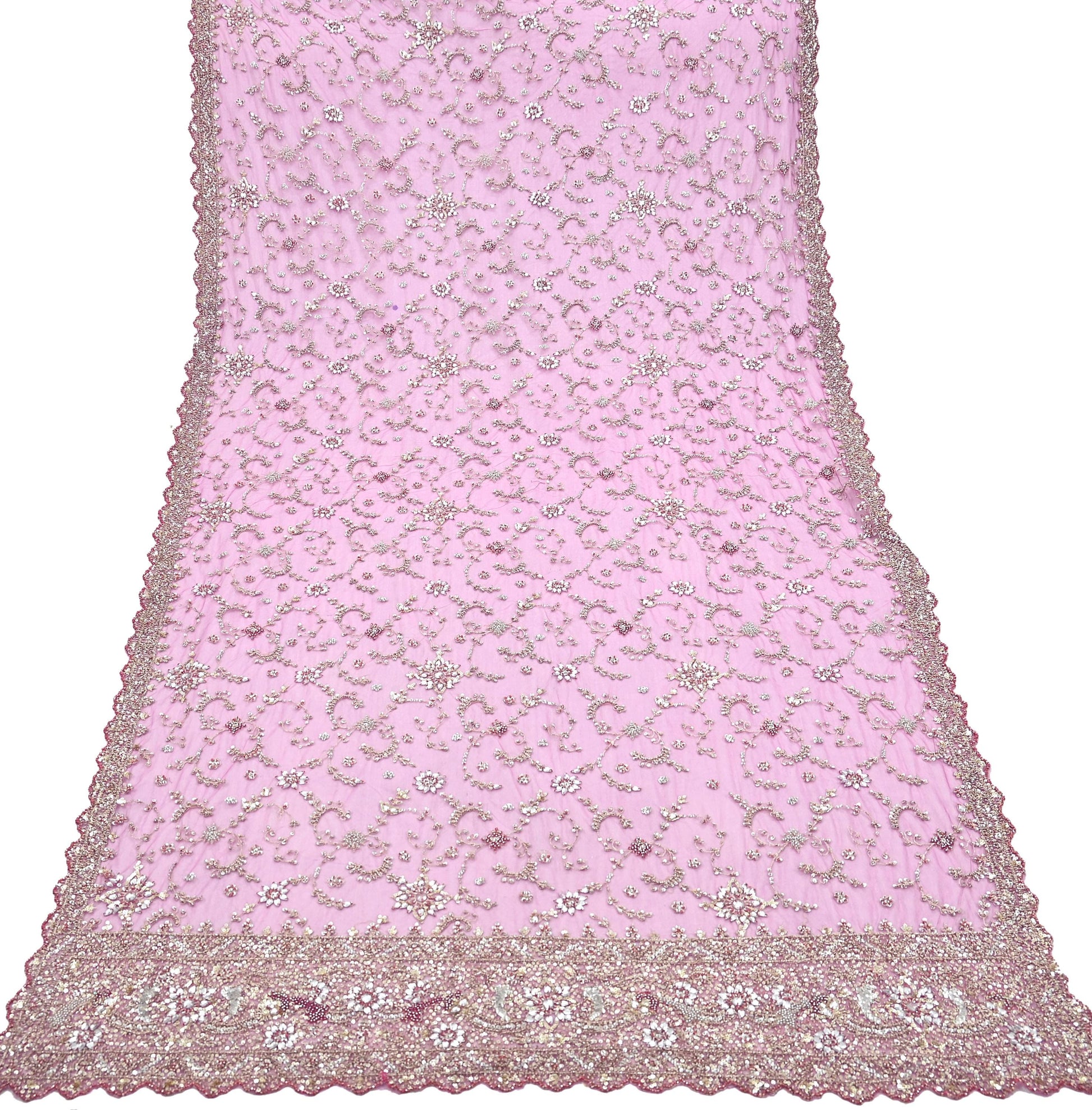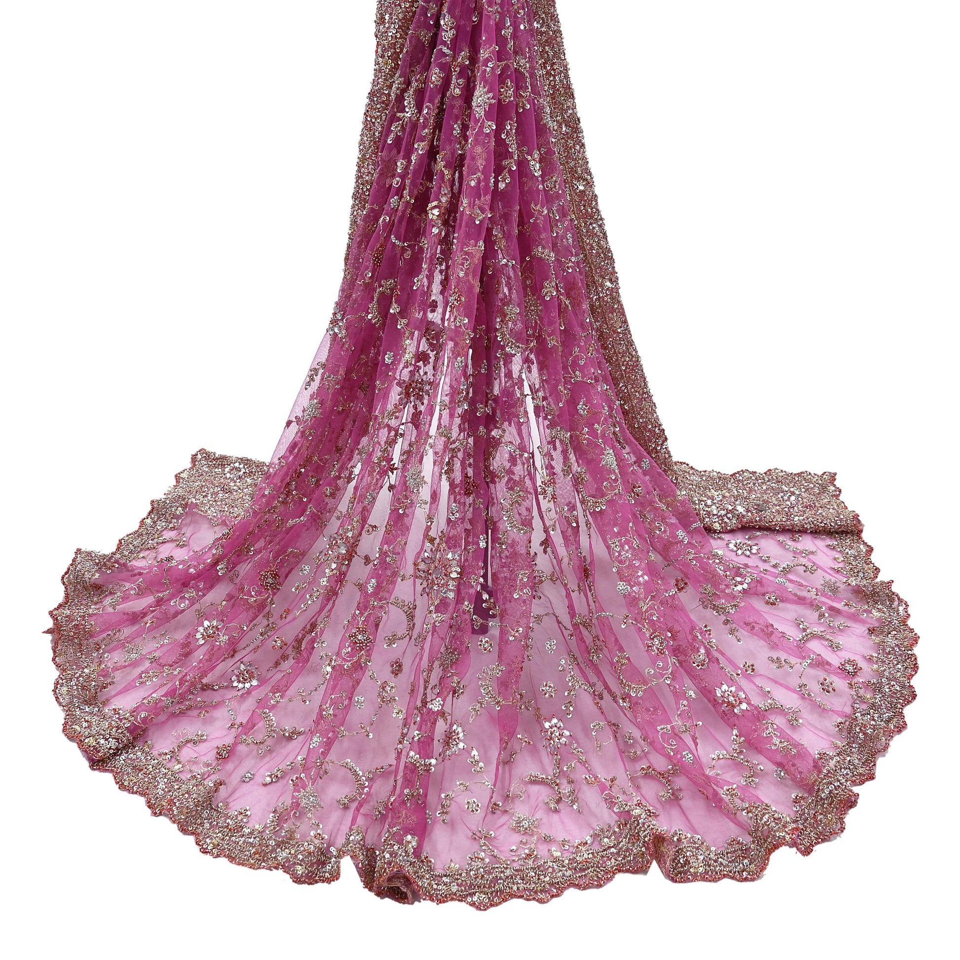 Indian Vintage Heavy Purple Dupatta Net Mesh Long Stole Hand Embroidered Scarf Purple Zardozi Zari Sequins Stole