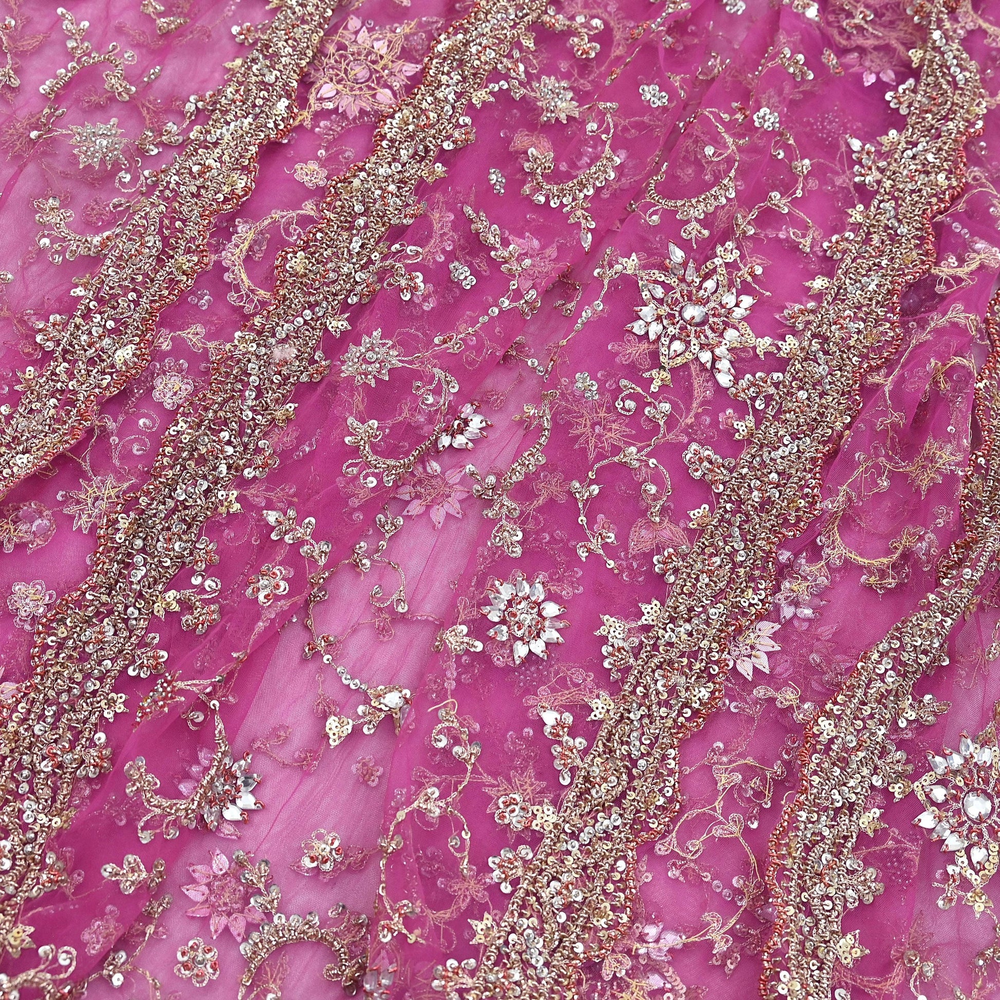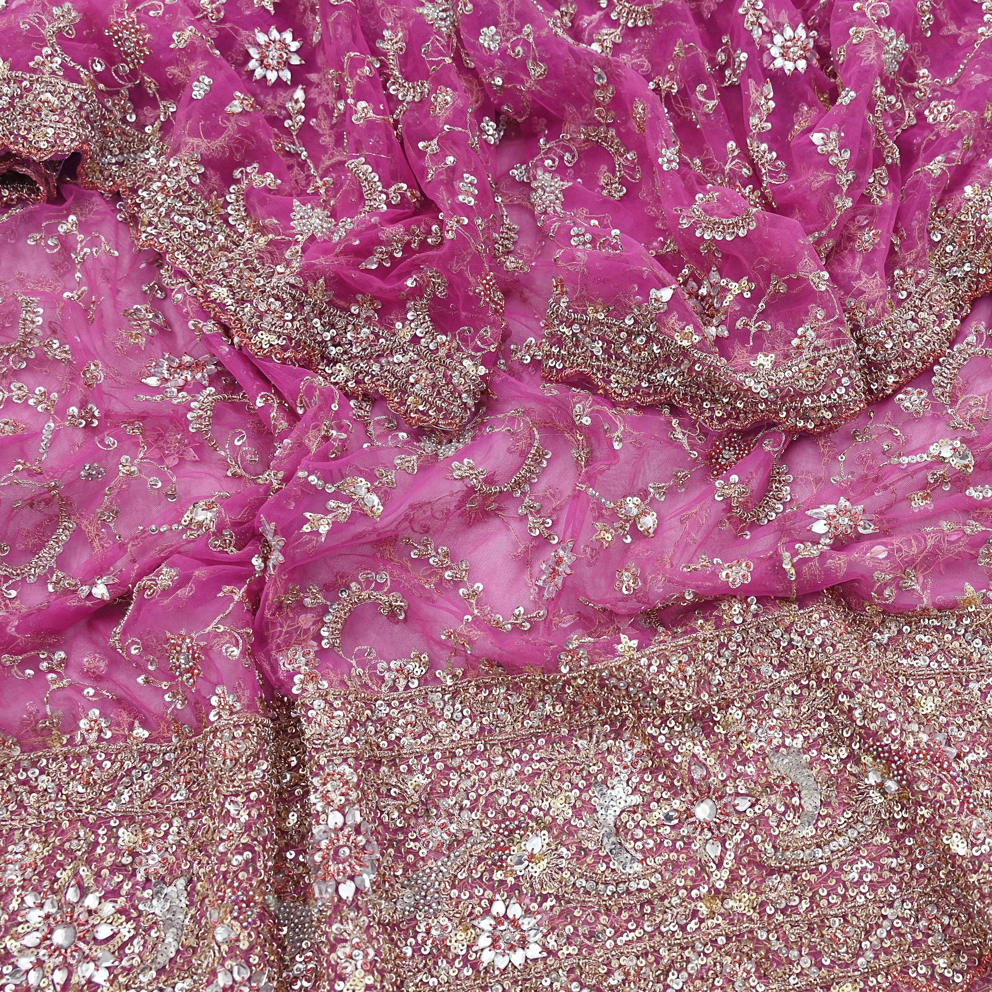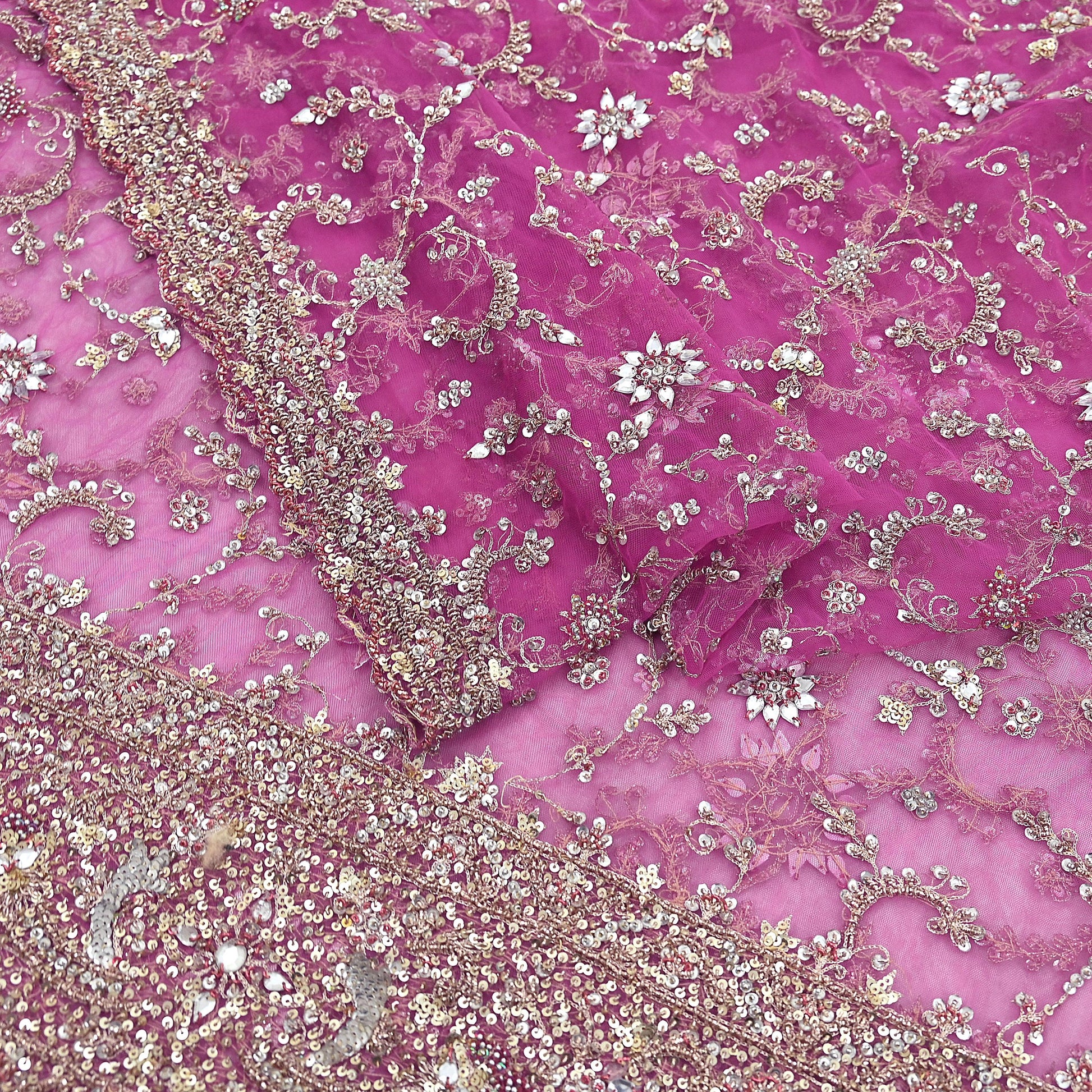Stunning Beautiful Heavy Dupatta Hand Embroidered Net Dupatta/Stole In Purple Color Fabric. This one of a kind item is difficult to express in words. Border feature is floral & Paisley design embroidered pure metallic Golden, Red, Green & Purple zardozi/Zari And Silver & Golden reflected sequins & White Stone/Beaded work embellished work is the highlight of the dupatta. Also you can see similar Zardozi, Beaded & Multi Sequins work with floral pattern in center part adds to its beauty. Golden Beads Tassels work is giving a fabulous look to the dupatta. Awesome one !!!