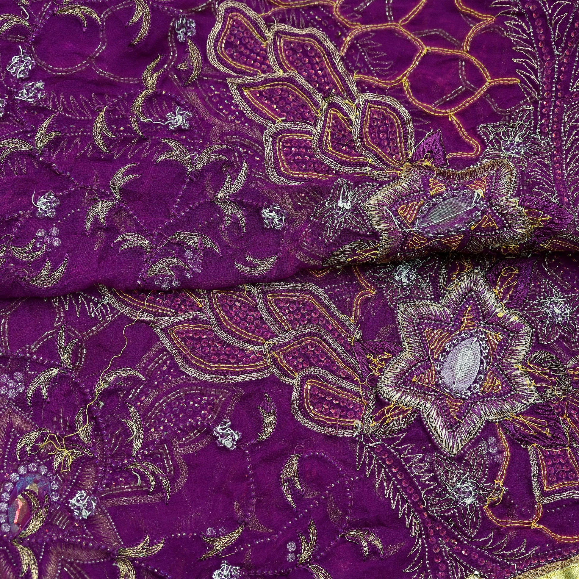 Indian Vintage Heavy Purple Dupatta Pure Georgette silk Long Stole Hand Embroidered Scarves Stole Veil Wrap Sequins