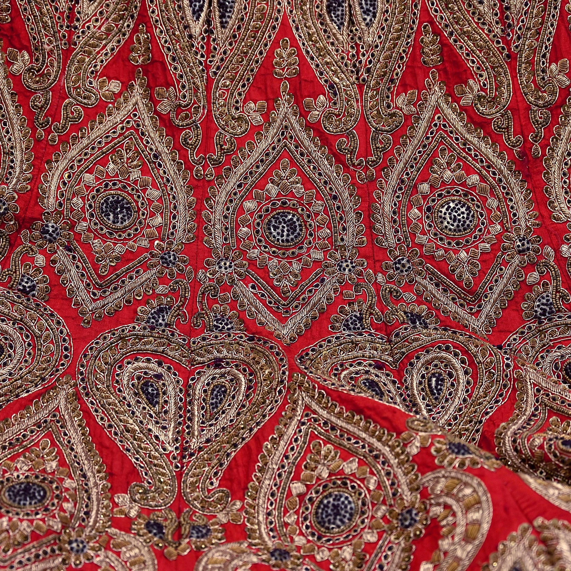 Indian Vintage Heavy Red Pure chanderi Silk Hand Embroidered semi stitched Lehenga/Skirt By Designer Sabyasachi Bridal Wear Dabka/ Zardozi