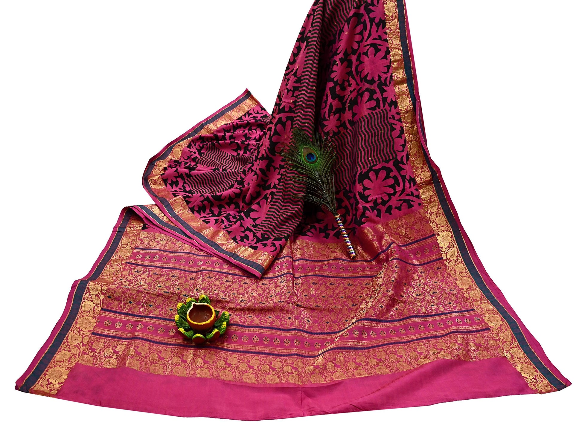 *We offers this vintage Pink & Black color saree which is crafted with 100% Pure Silk.
