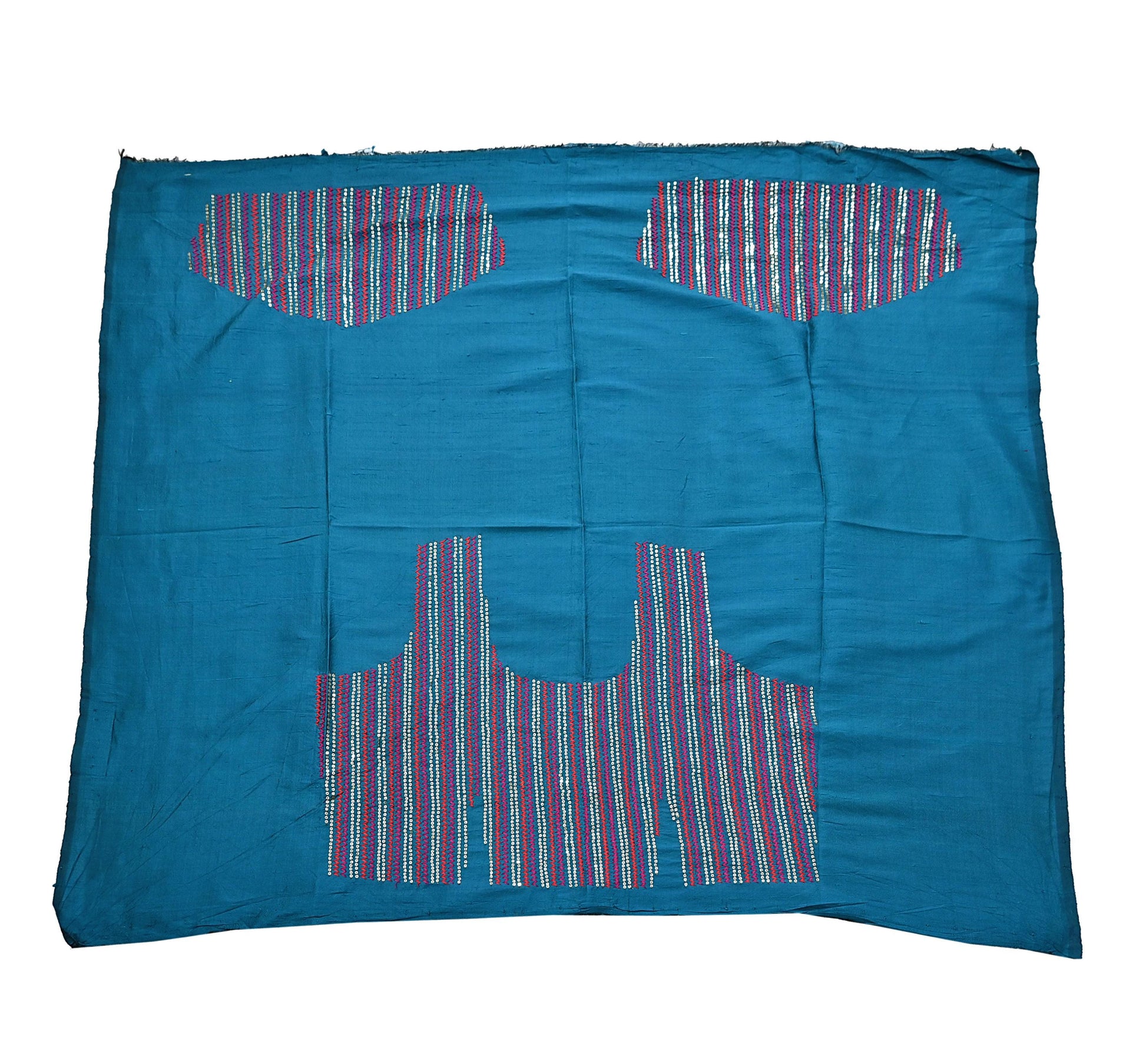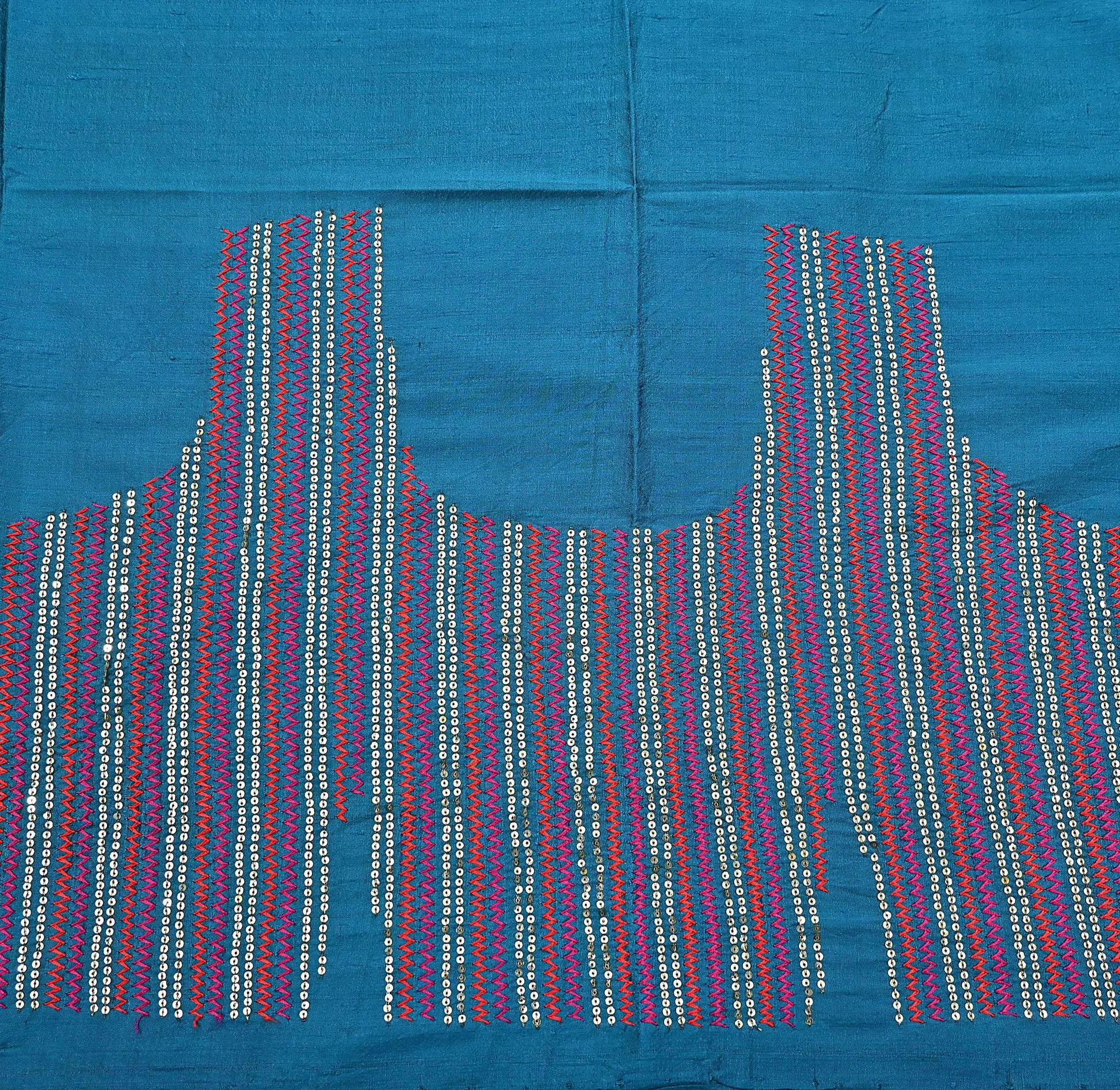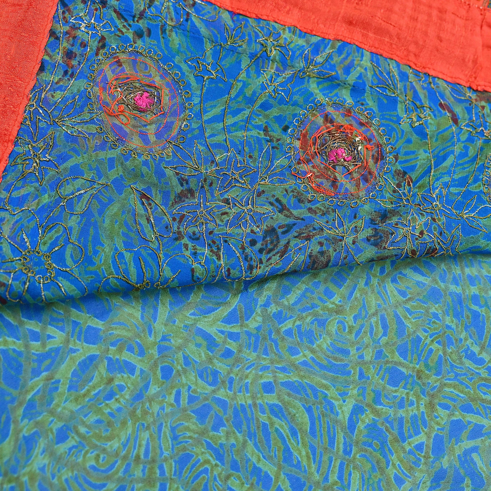 *Vintage Heavy Beautiful Green & Blue Colored Hand Embroidered work Pure Georgette Silk Sari. With green raw silk matching Blouse Fabric.