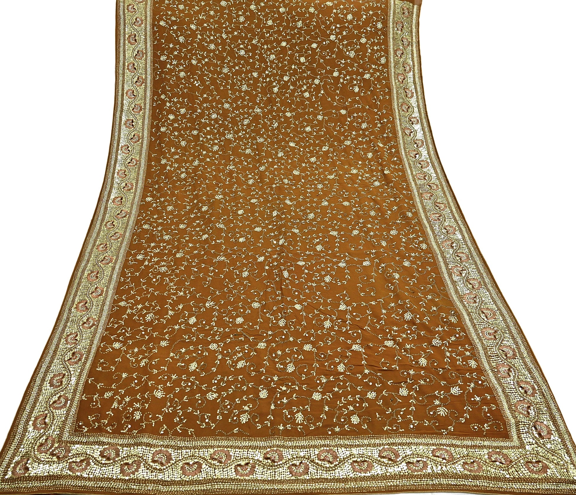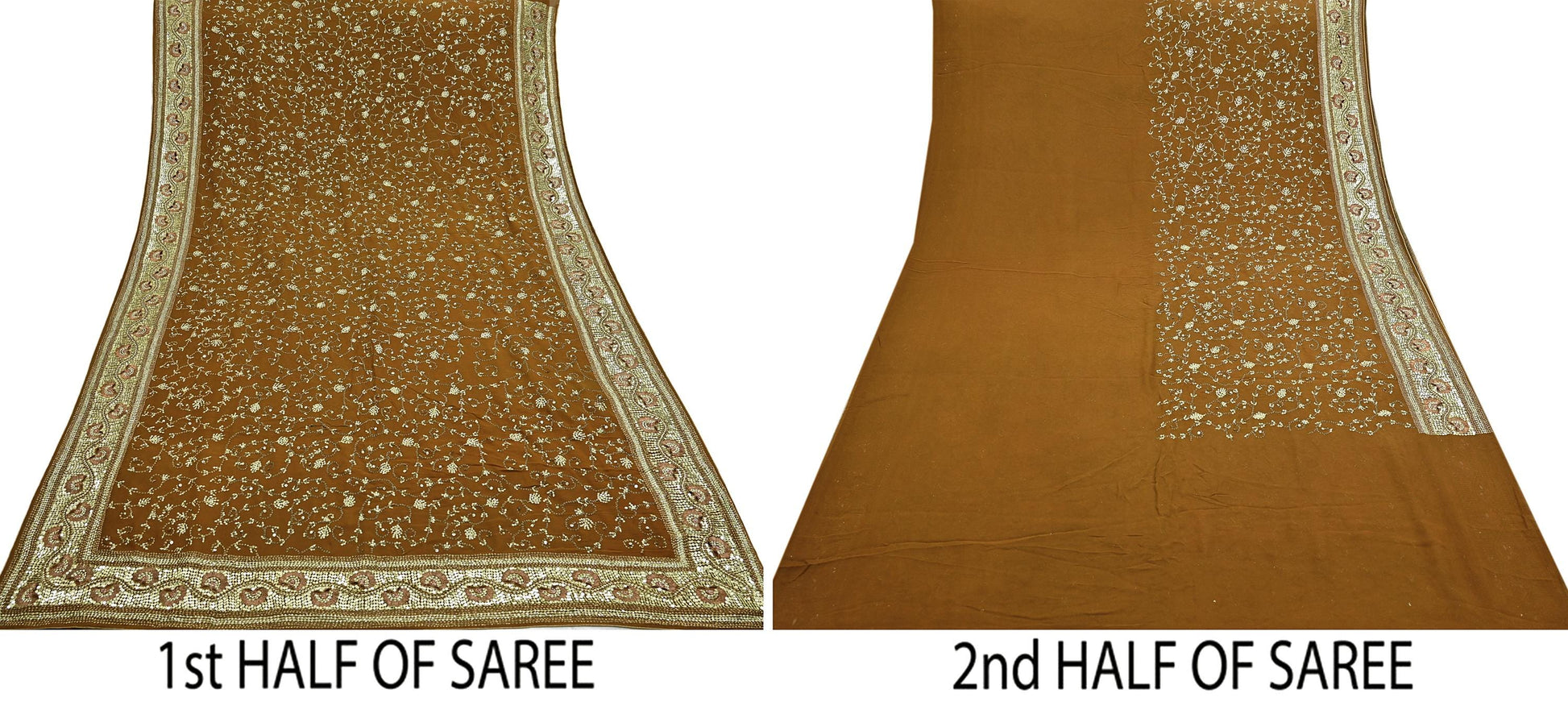 Indian Vintage Heavy Sarees Mustard Pure Georgette Silk Hand Embroidered Sari Fabric 6Yd Sewing Ethnic zari with blouse fabric