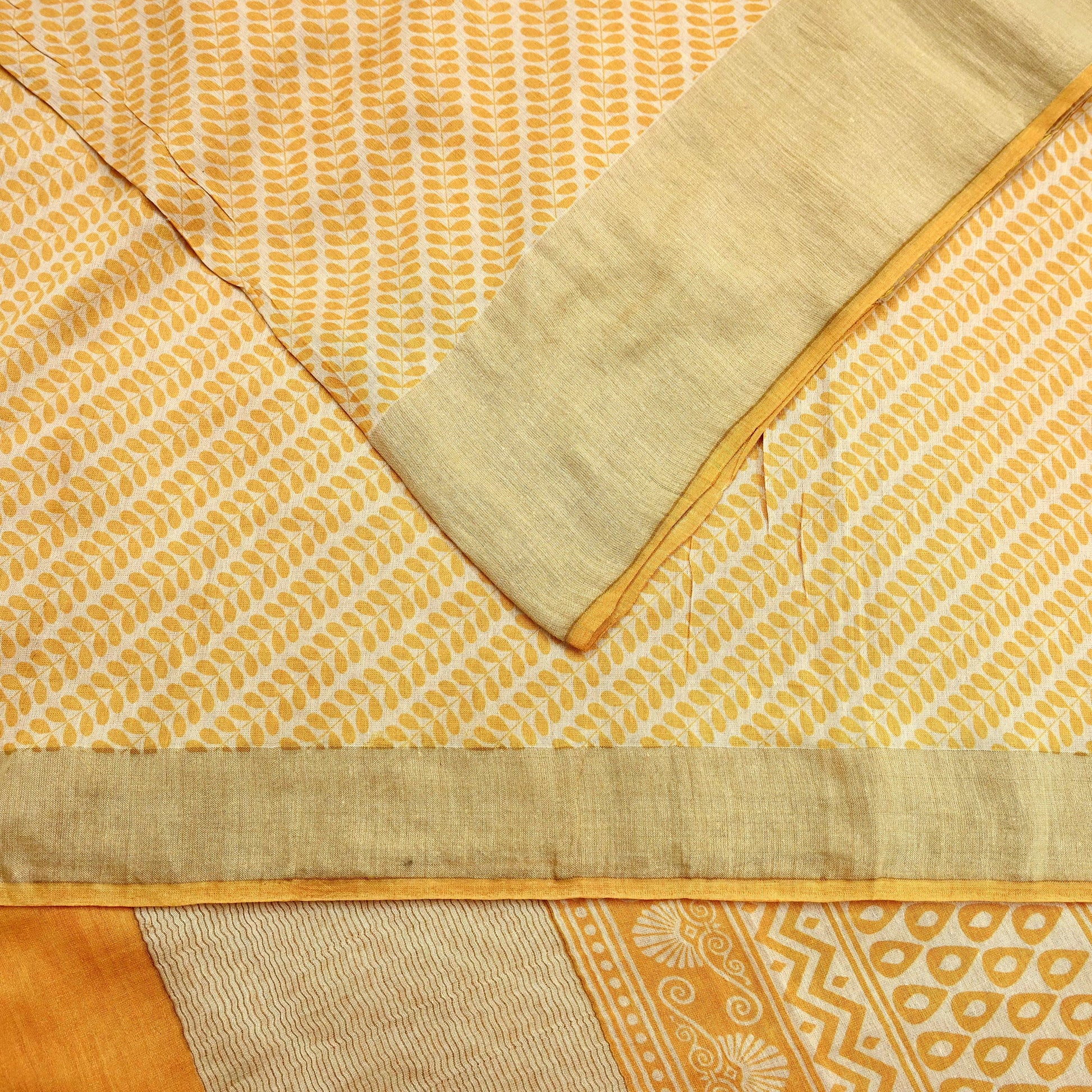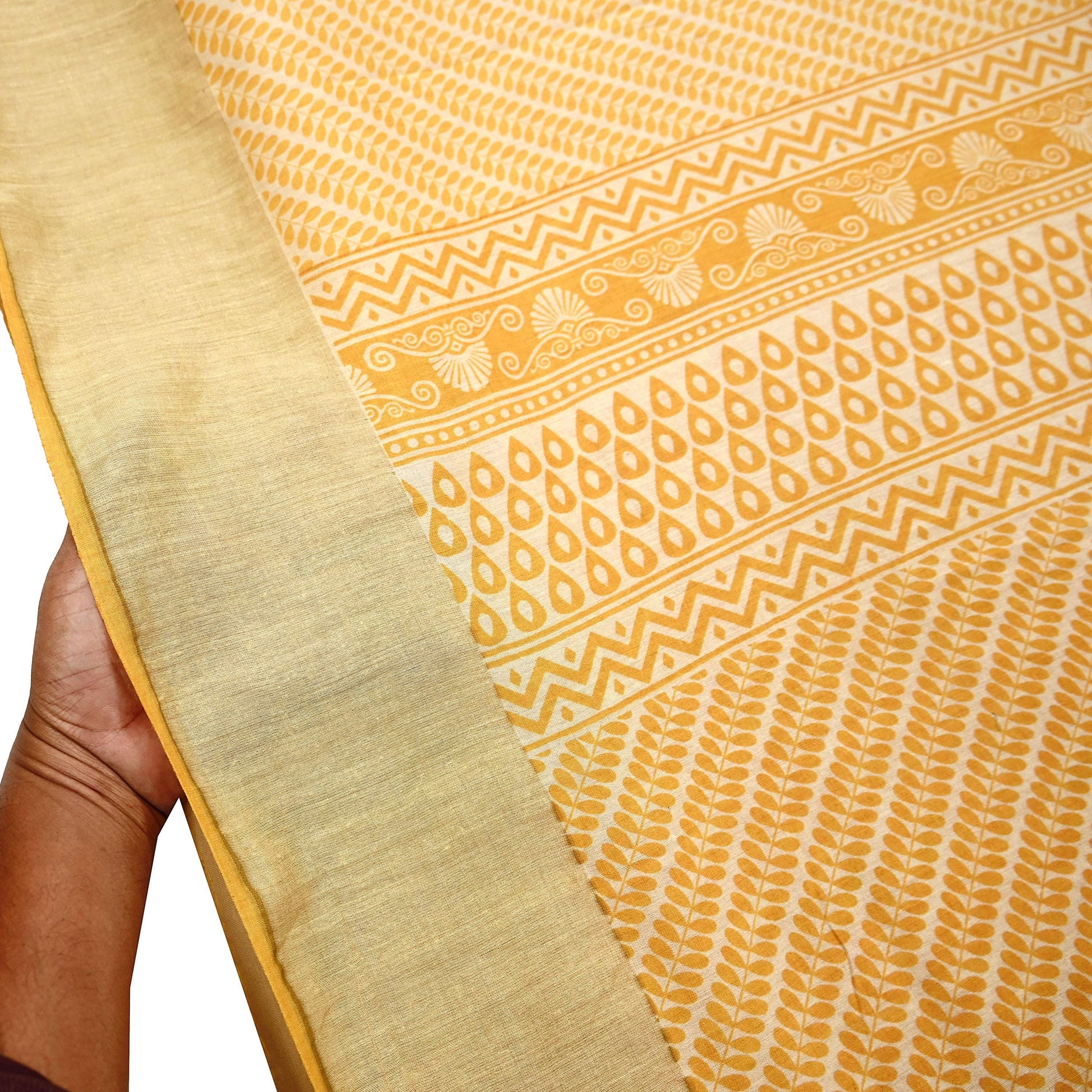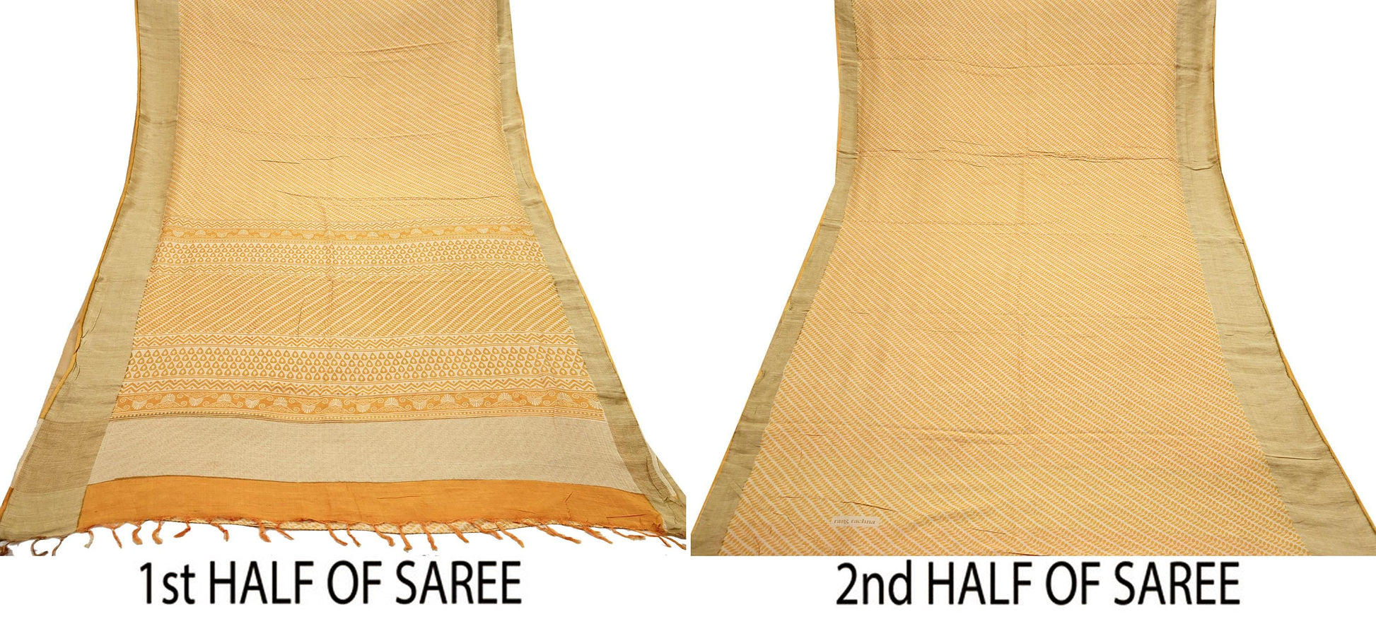 Indian Vintage Heavy Sari Beige & Yellow Pure Khadi Silk Handloom Saree Craft Fabric 5yd Ethnic Wear Dress making For Crafting Quilting