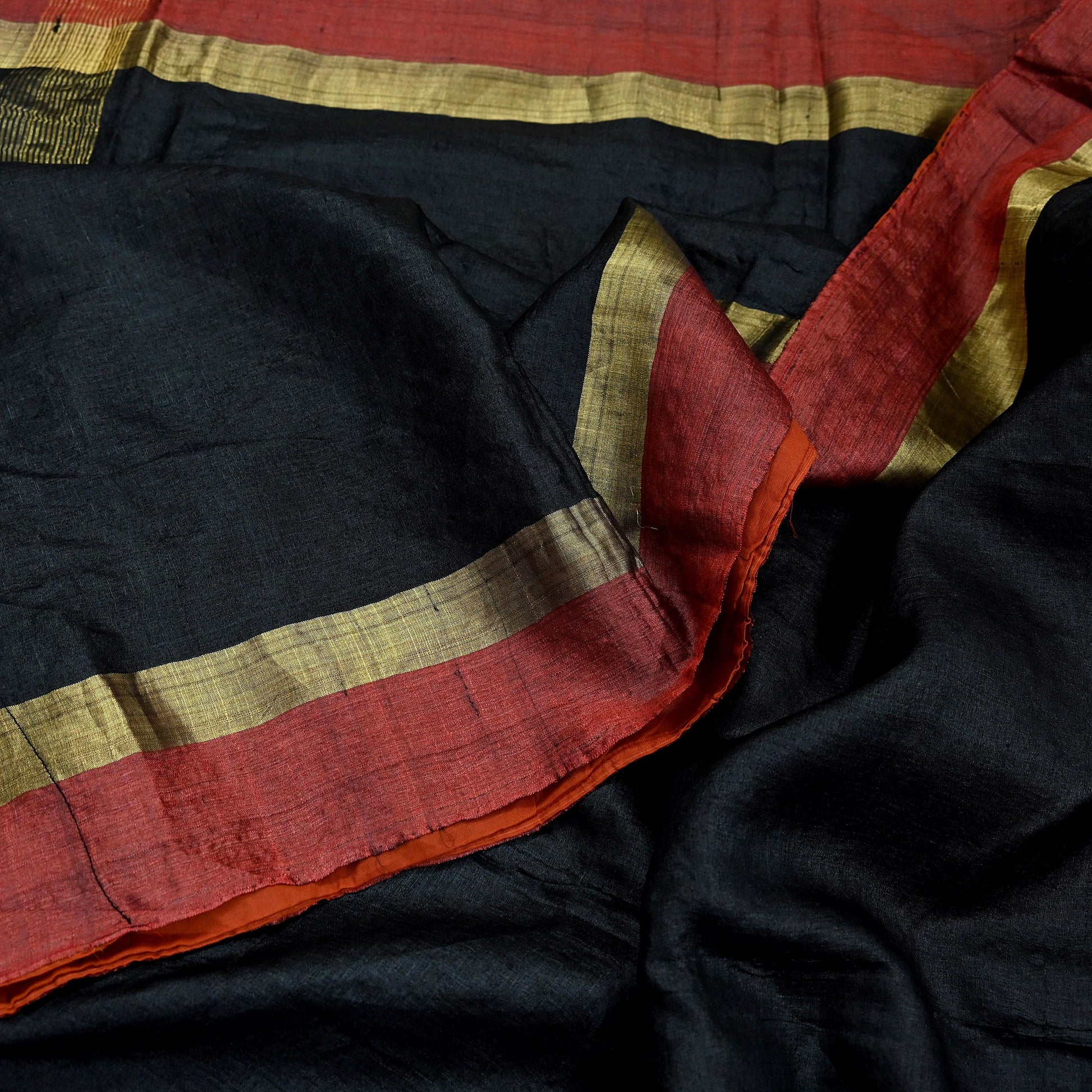 This unique Heavy vintage Black Colored Pure Khadi Silk Handloom Woven Saree/Fabric.