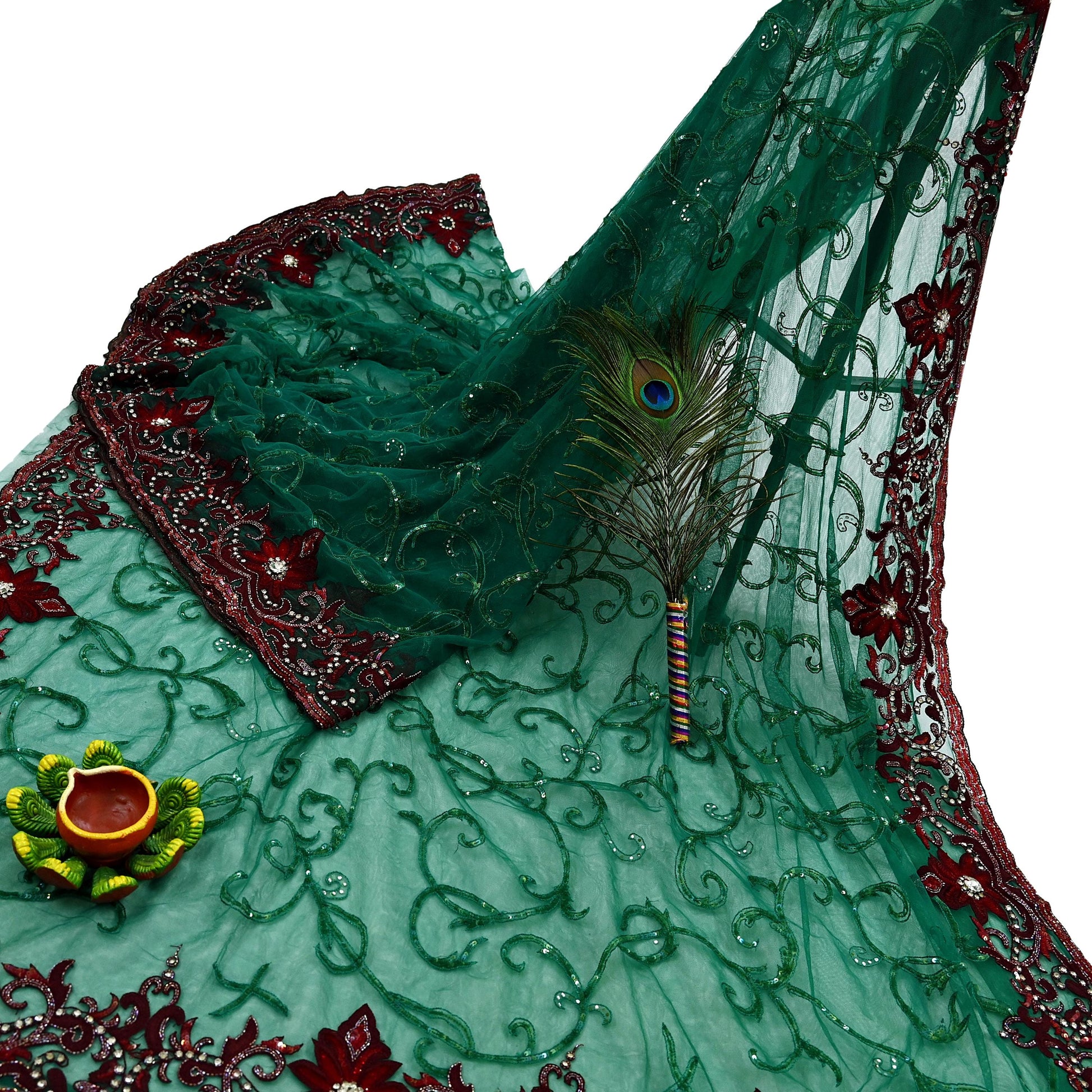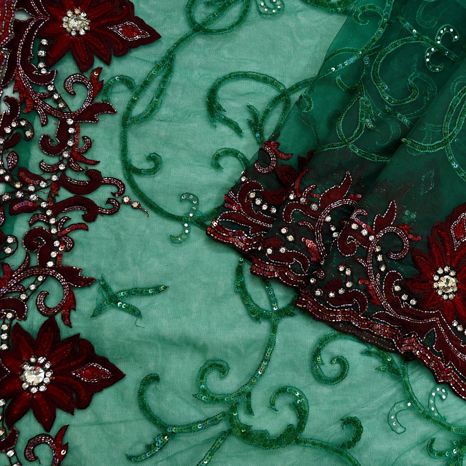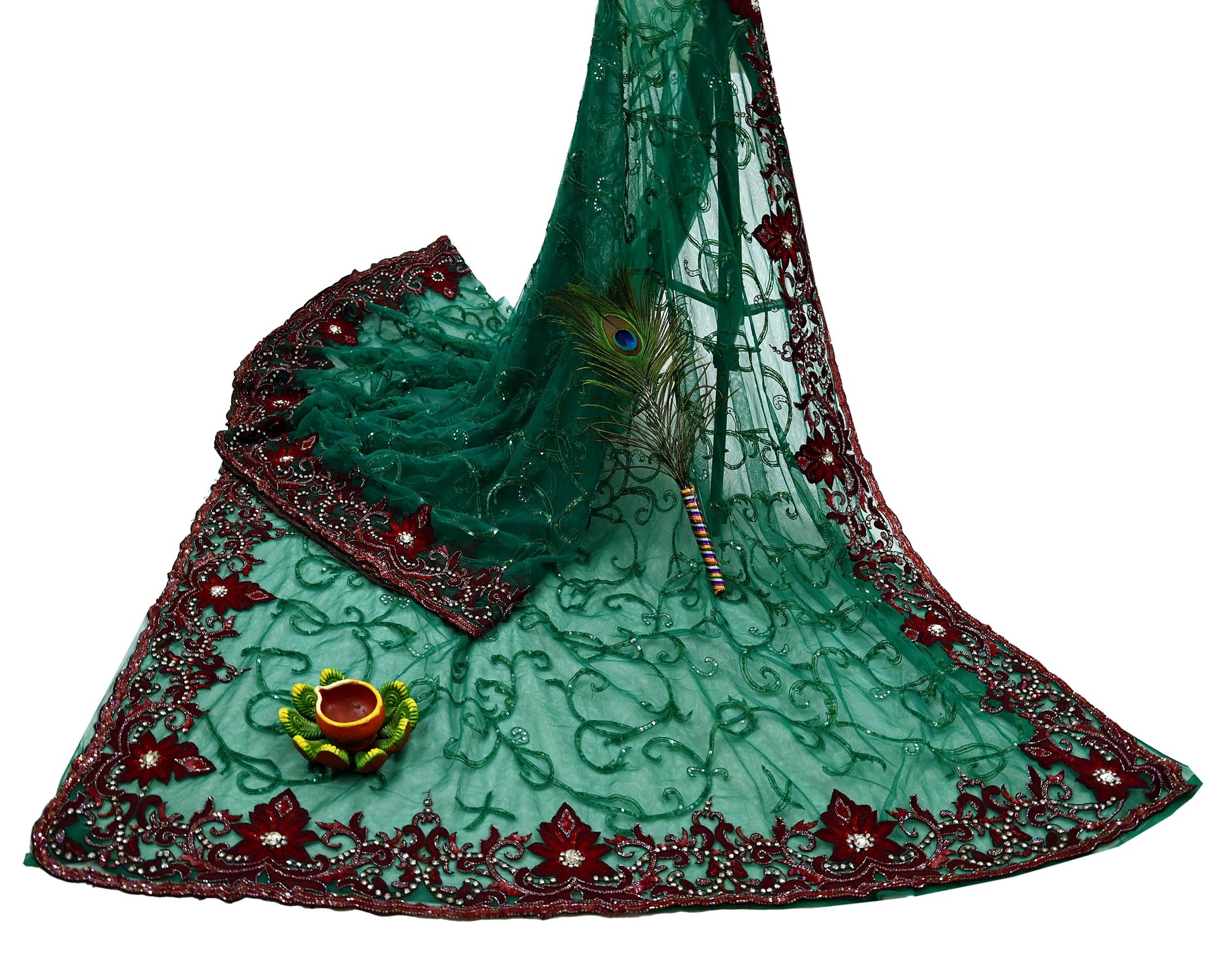 Indian Vintage Heavy Sari Green Net/Mesh Embroidered Sarees Fabric 6Yd Sewing Soft Sequins Floral Zari Bridal/wedding Saris