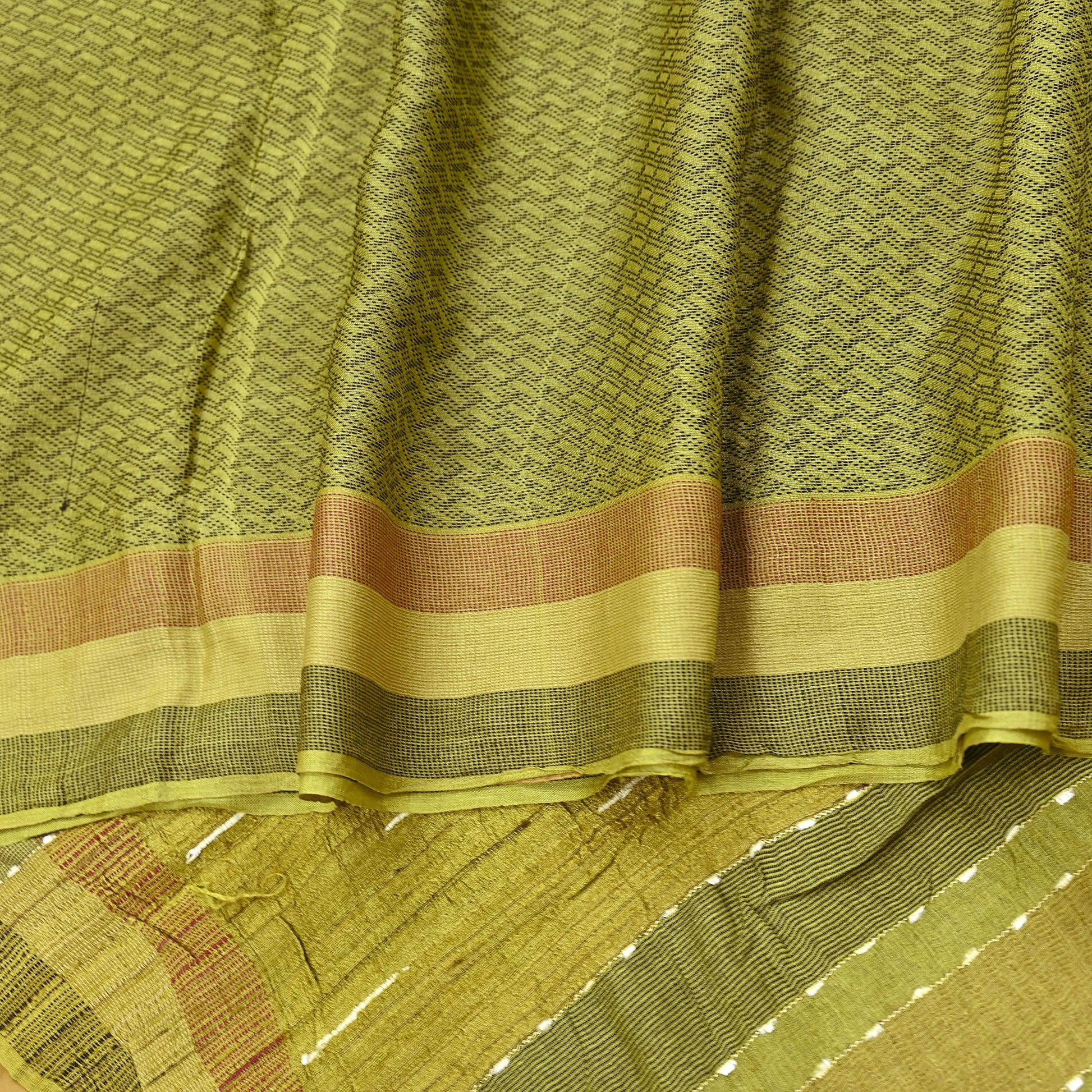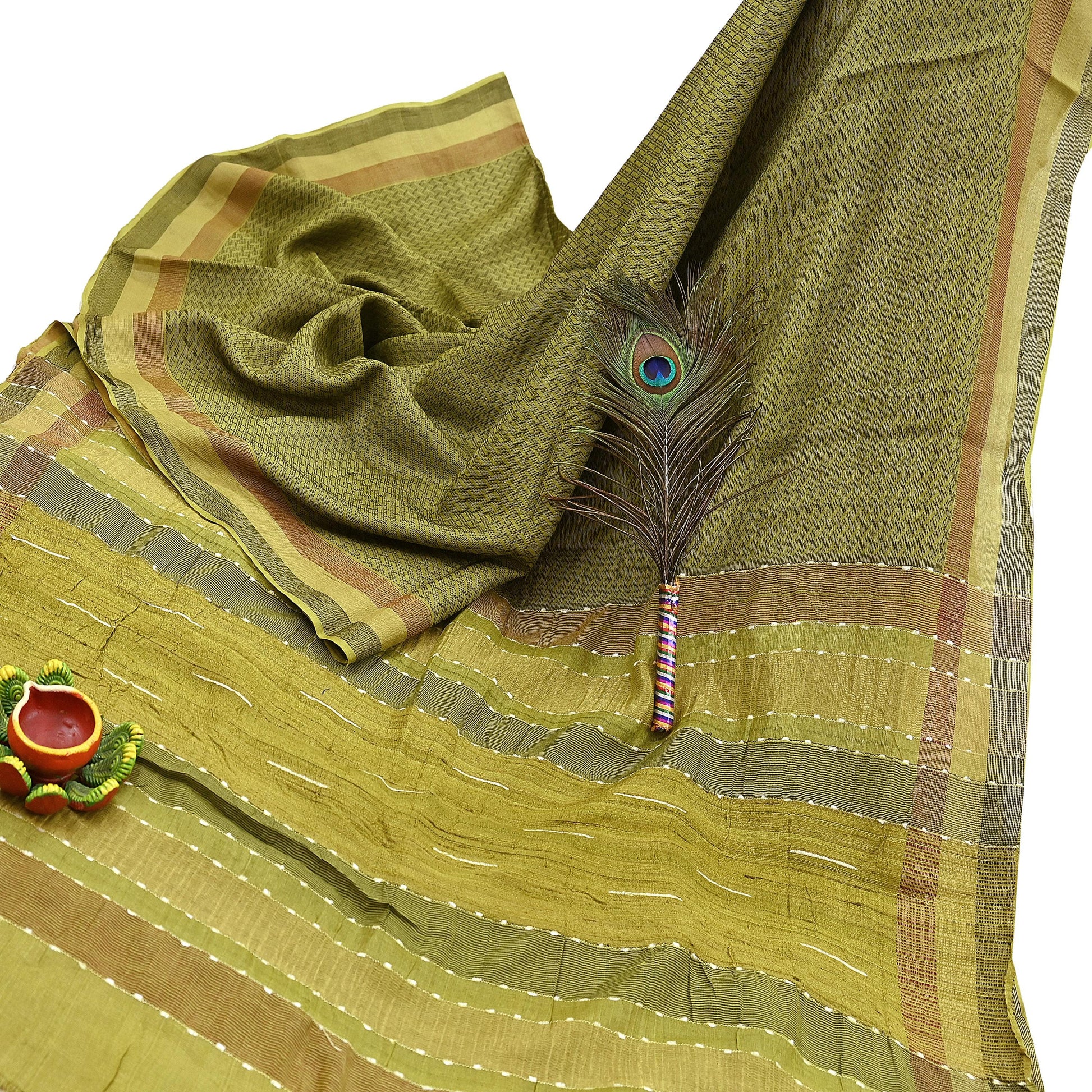 This unique Heavy vintage Green Colored Pure Khadi Silk Handloom Woven Saree/Fabric.