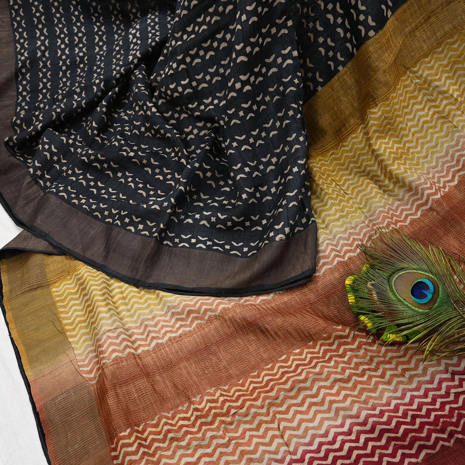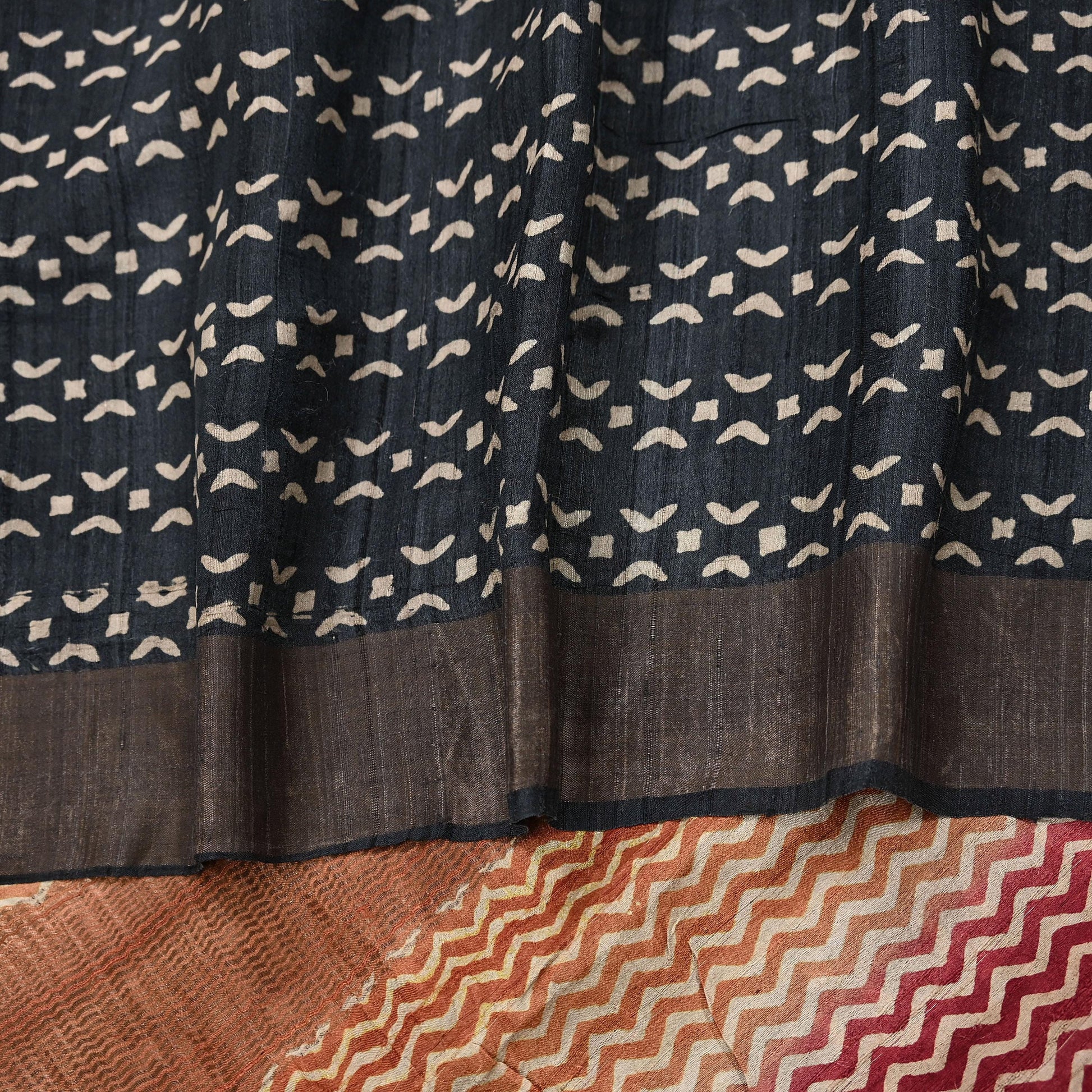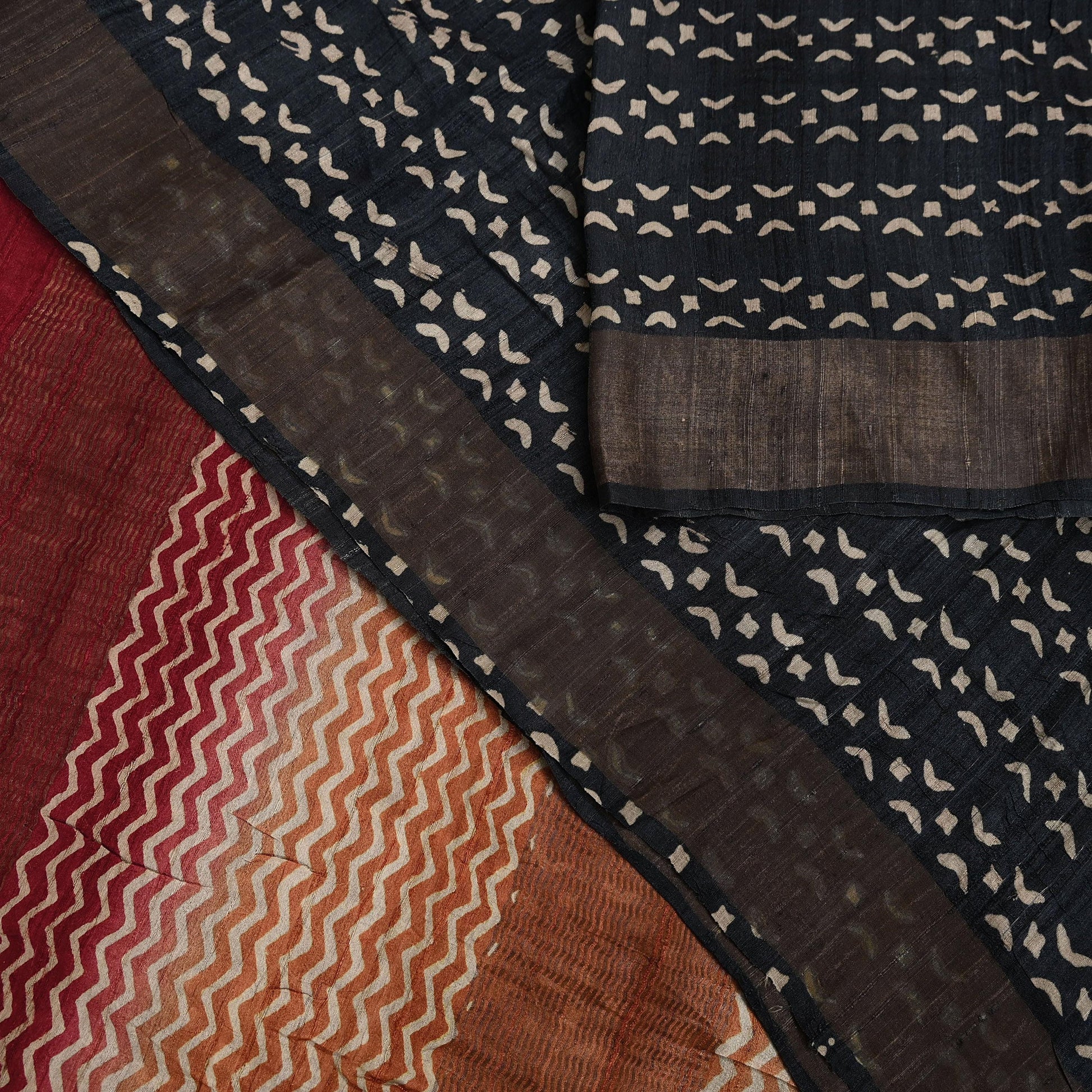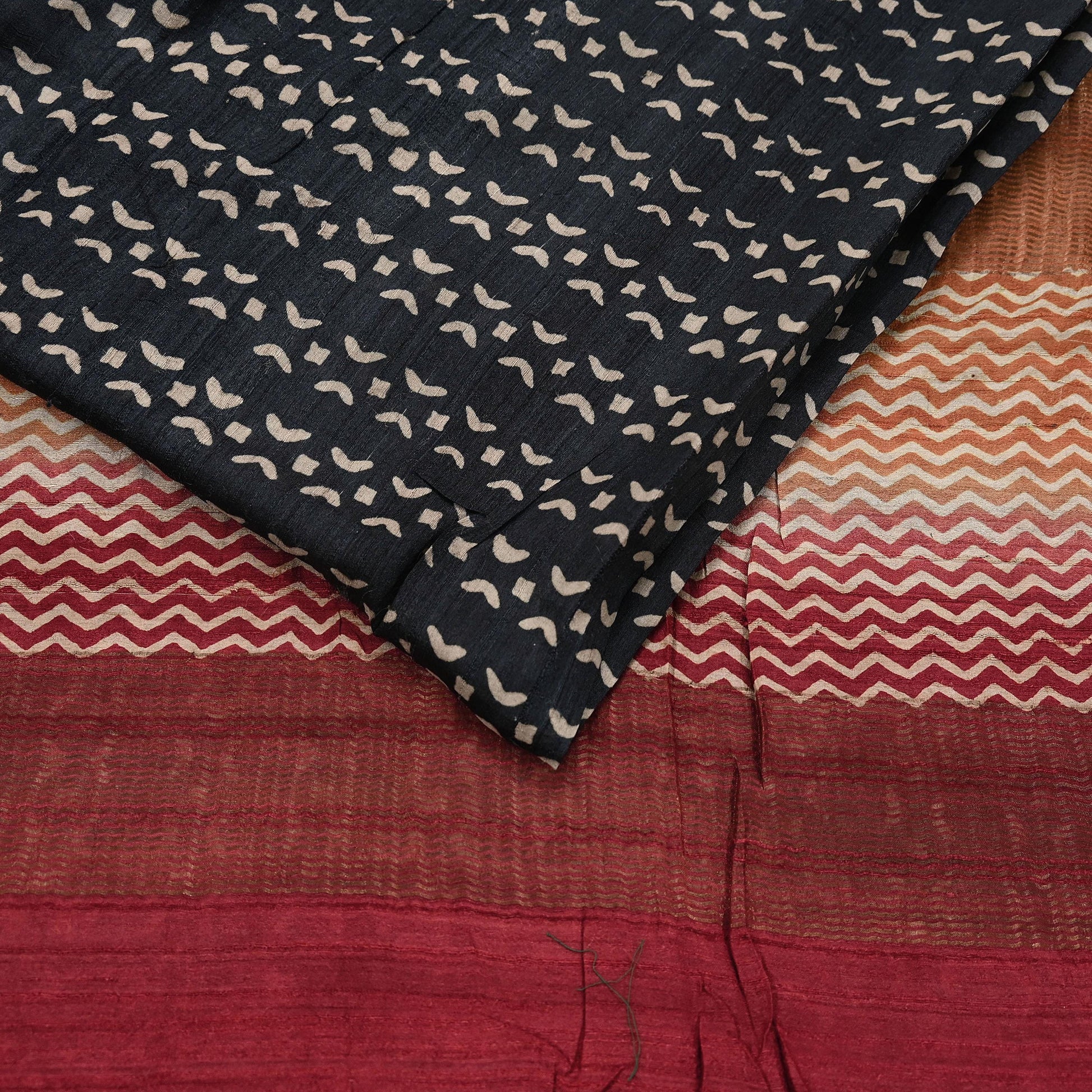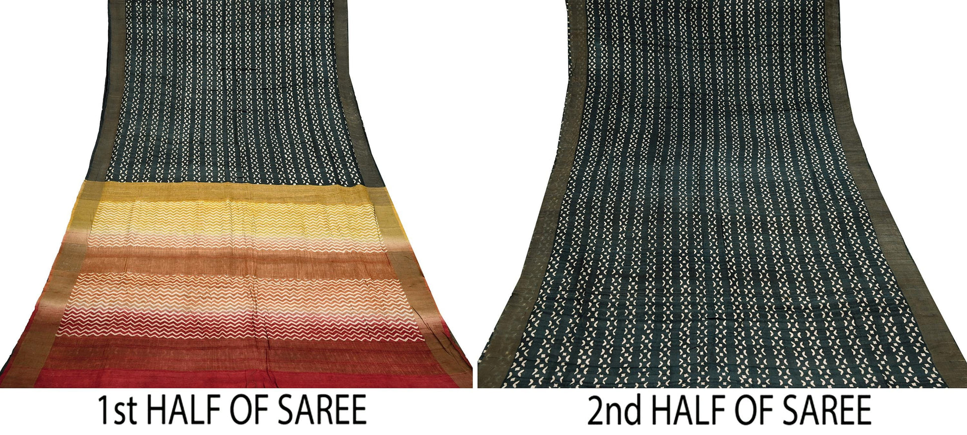 Indian Vintage Heavy Sari Maroon & Black Pure Khadi Silk Handloom Saree Craft Fabric 5yd Ethnic Wear Dress making For Crafting Quilting