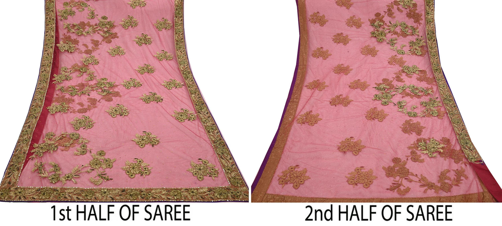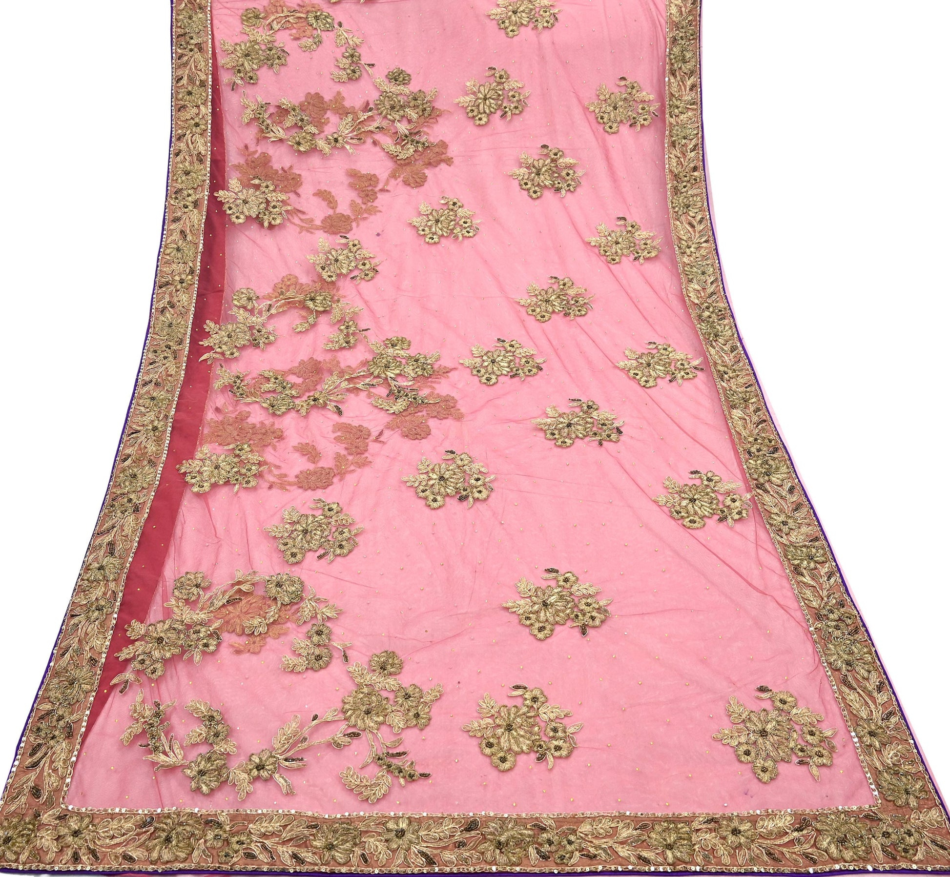 Indian Vintage Heavy Sari Pink Net/Mesh Hand Embroidered Sarees Craft Fabric 6Yd Sewing Soft Zardozi/Dabka Zari Sequins Wedding sarees