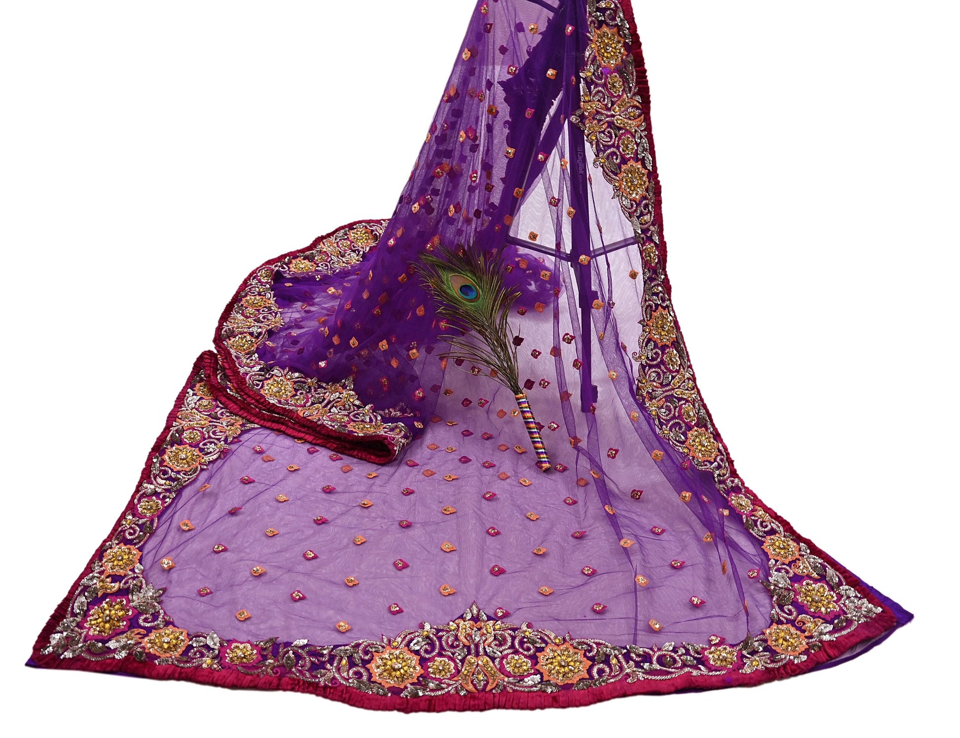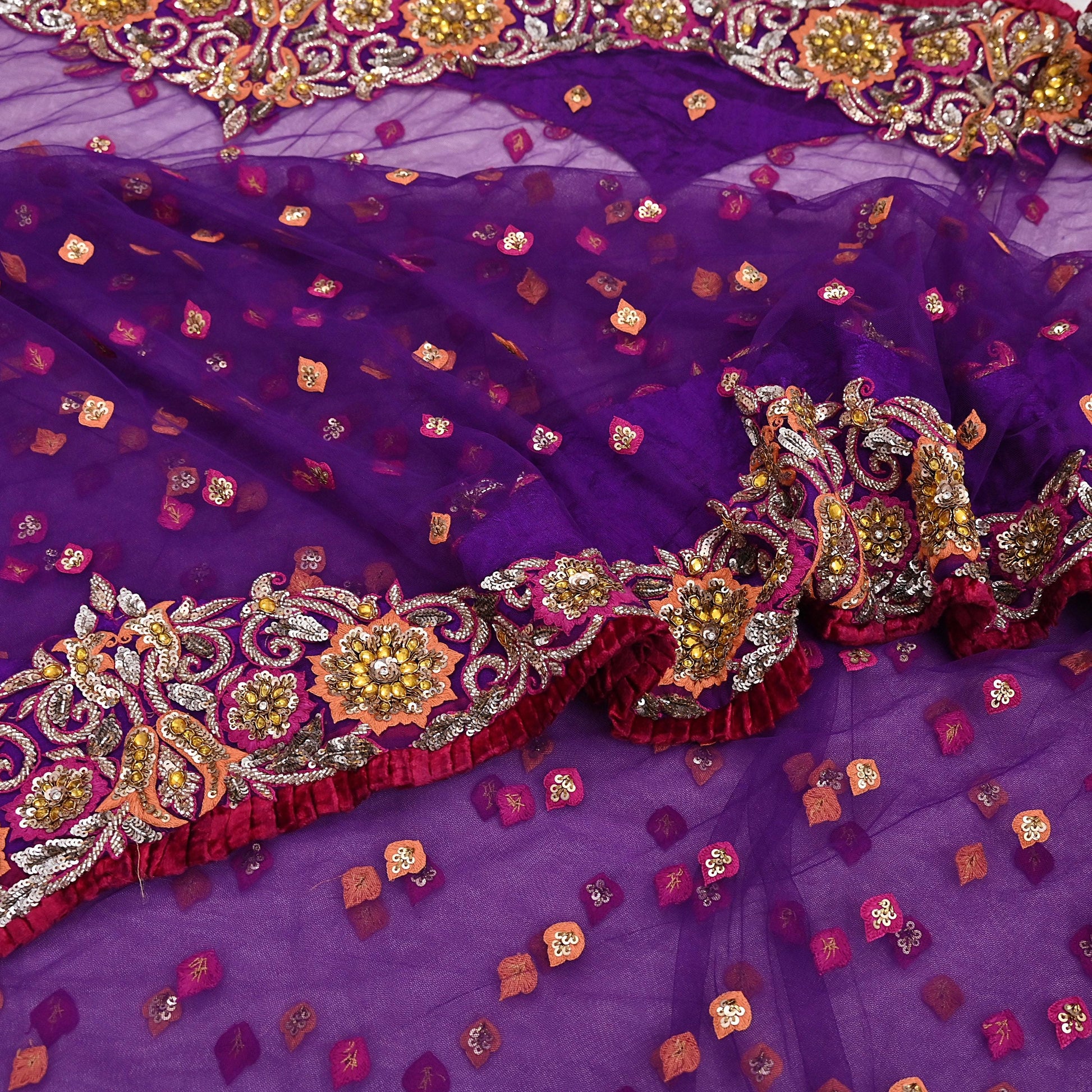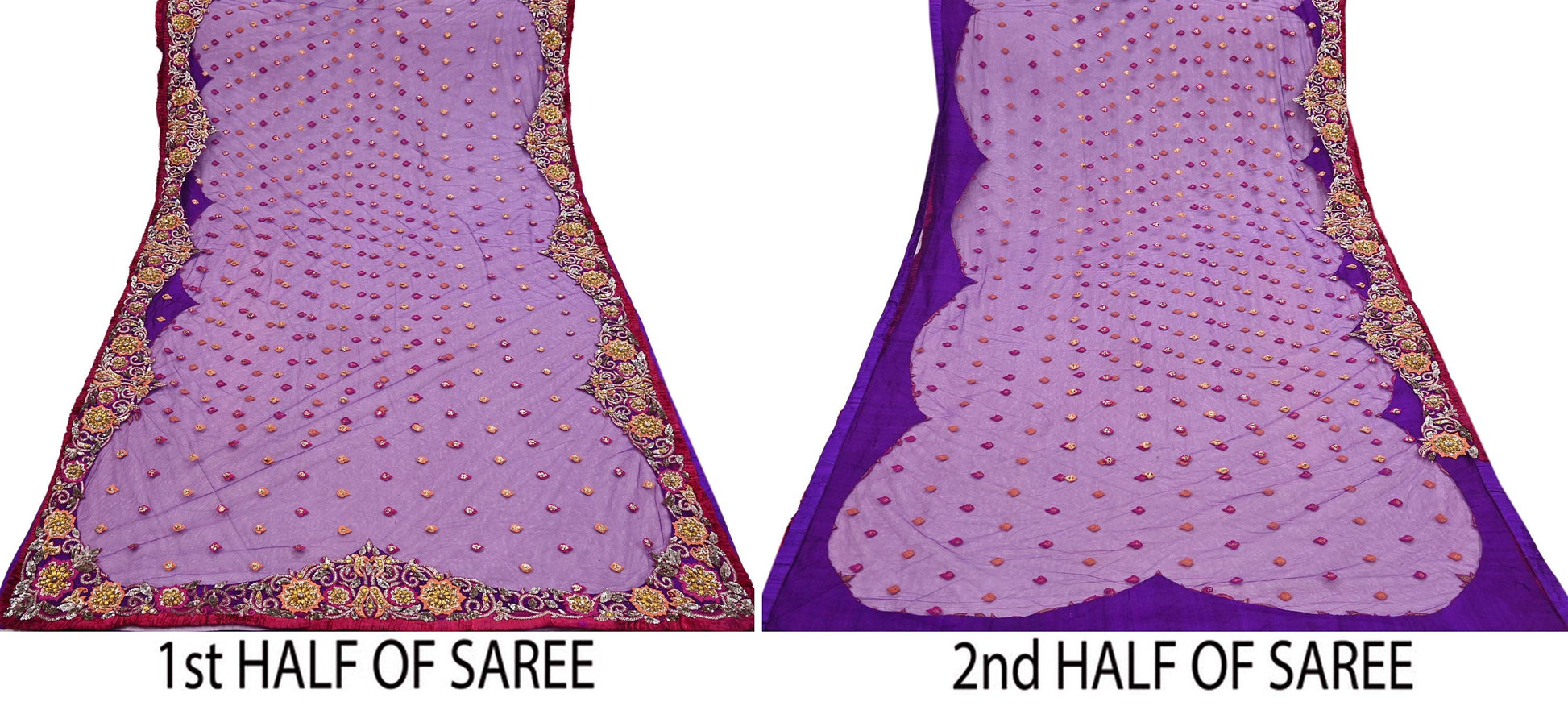 Indian Vintage Heavy Sari Purple Net/Mesh Embroidered Sarees Fabric 5Yd Sewing Soft Green Sequins Floral Zari Bridal/wedding Saris