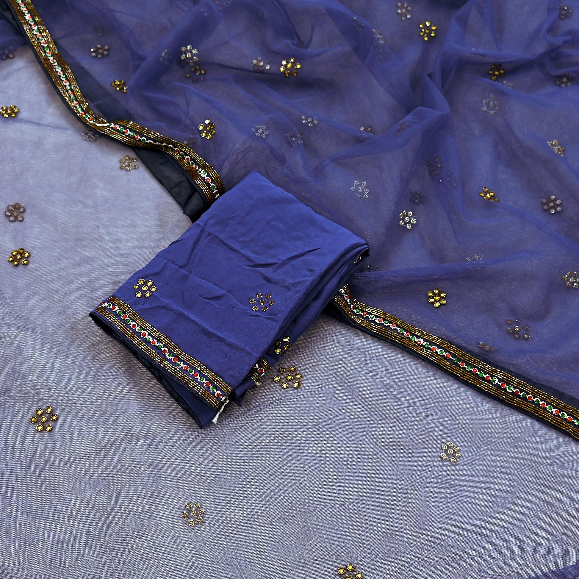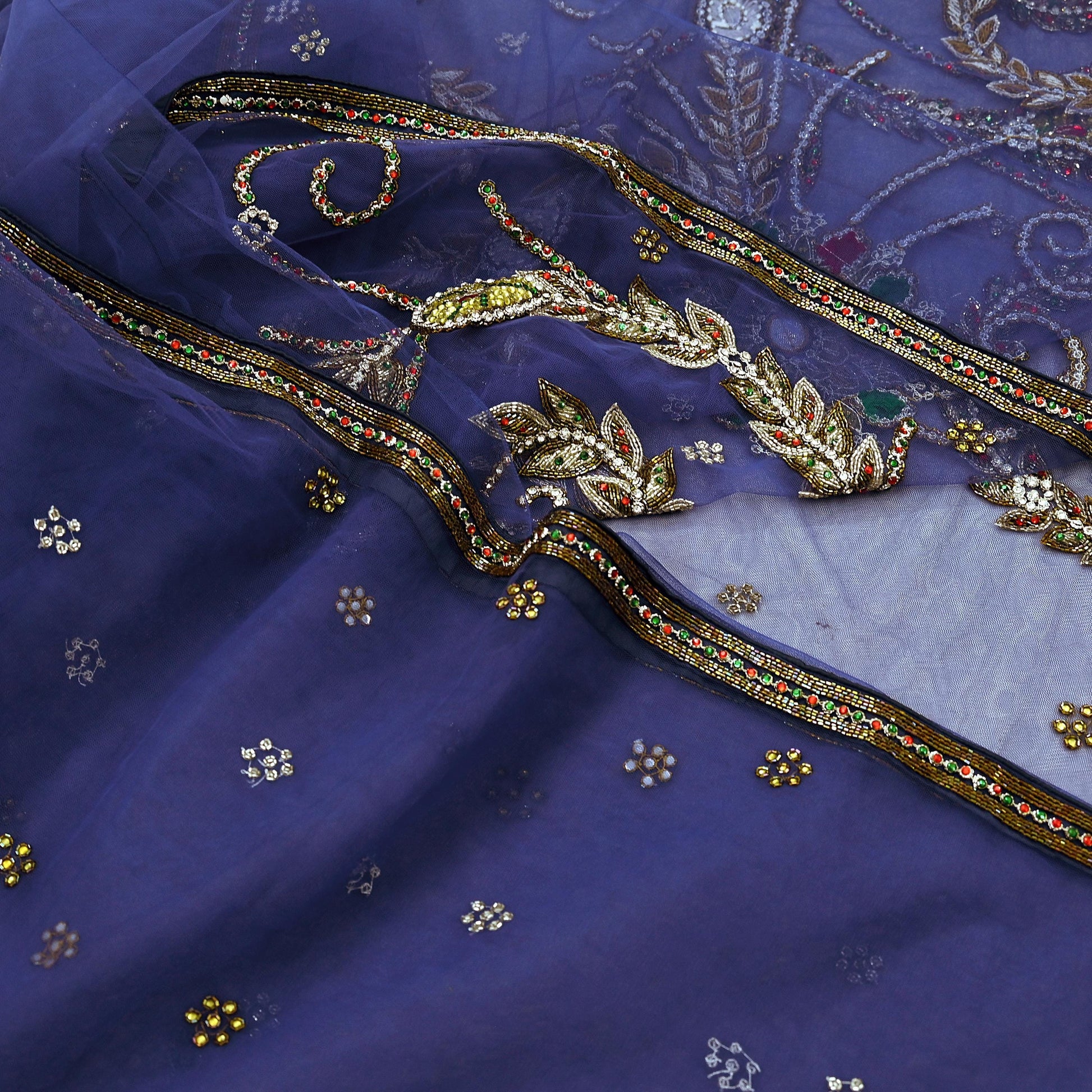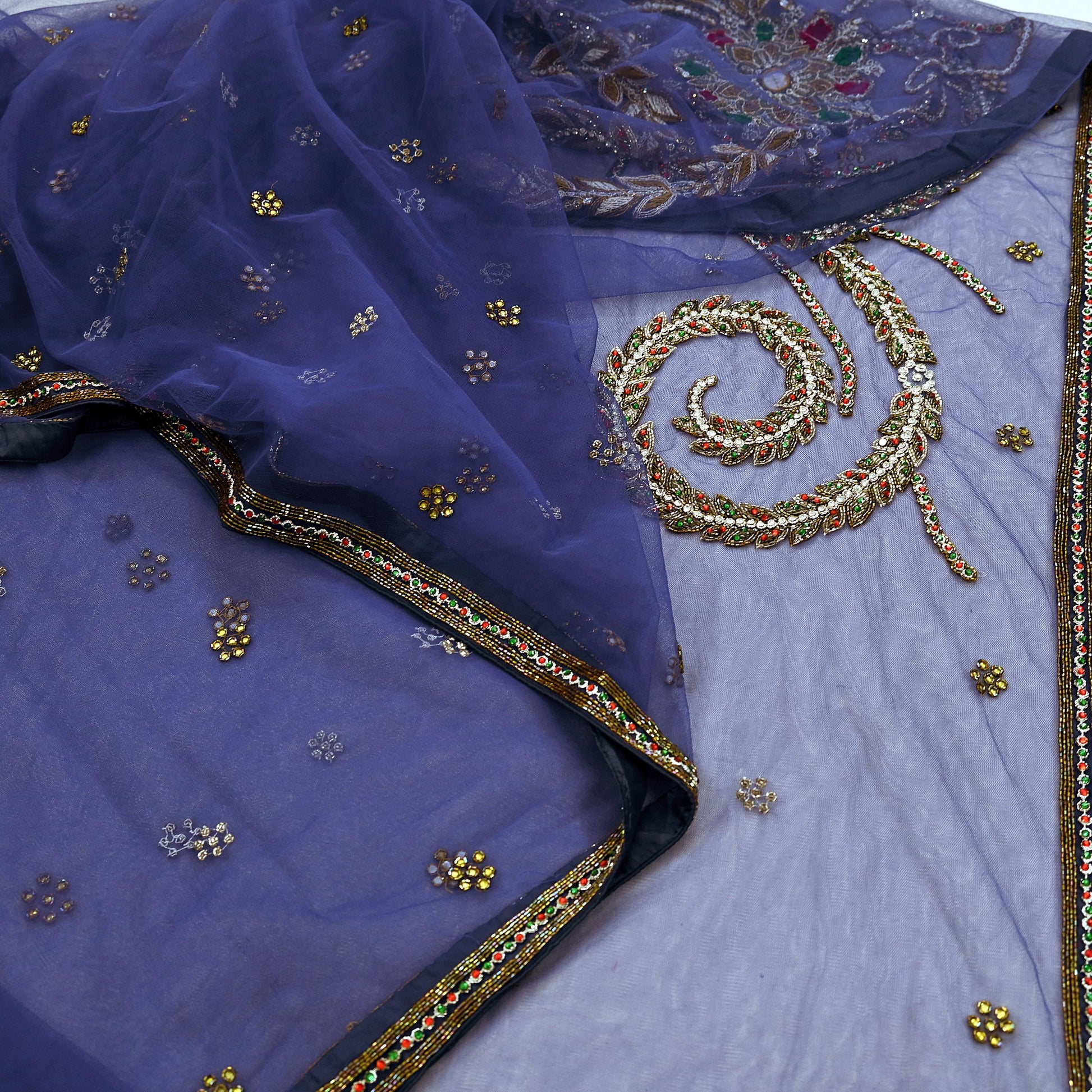 *Vintage Heavy Purple Colored Hand Embroidered Net Fabric Sari.