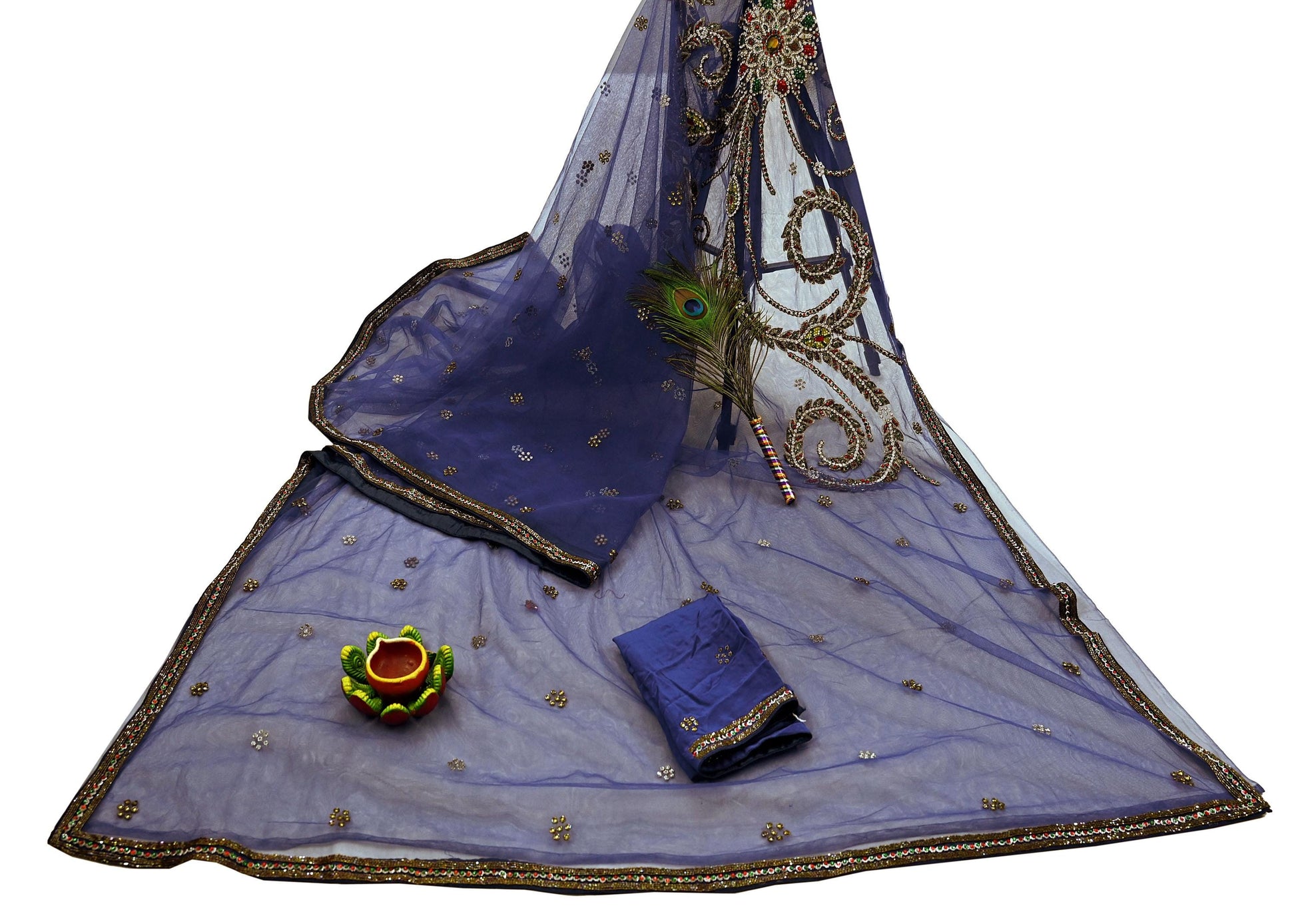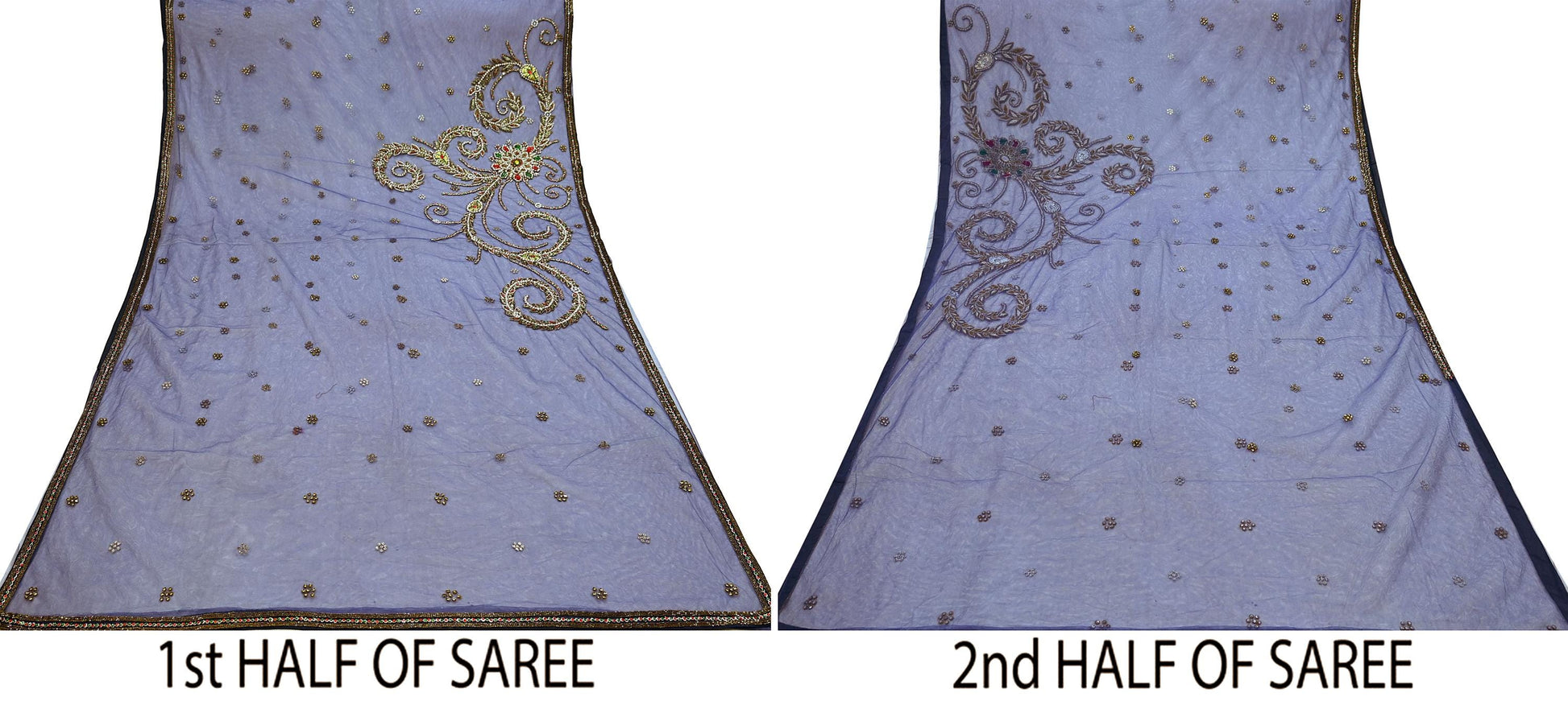 Indian Vintage Heavy Sari Purple Net/Mesh Hand Embroidered Sarees Craft Fabric 5Yd Sewing Soft Zardozi Wedding sarees With Blouse fabric