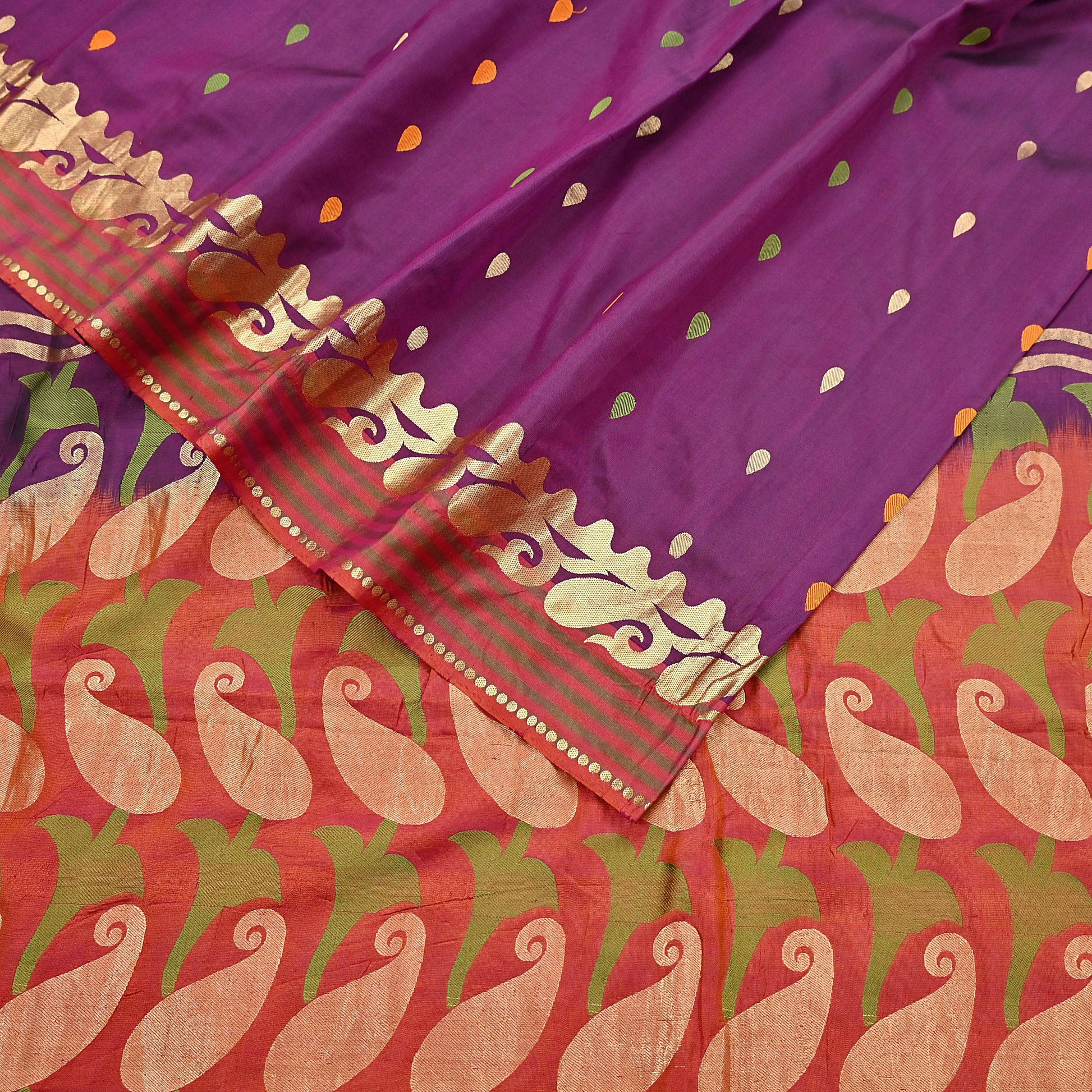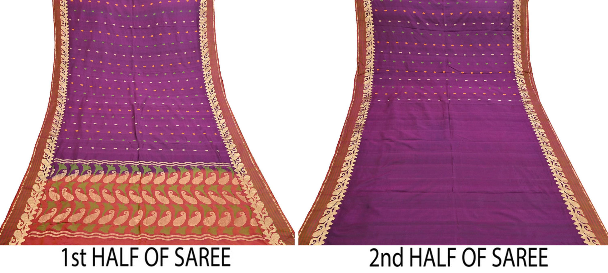 Indian Vintage Heavy Sari Purple & Orange Hand Woven Sarees 100% Pure Silk Zari 5Yd Floral with Blouse fabric