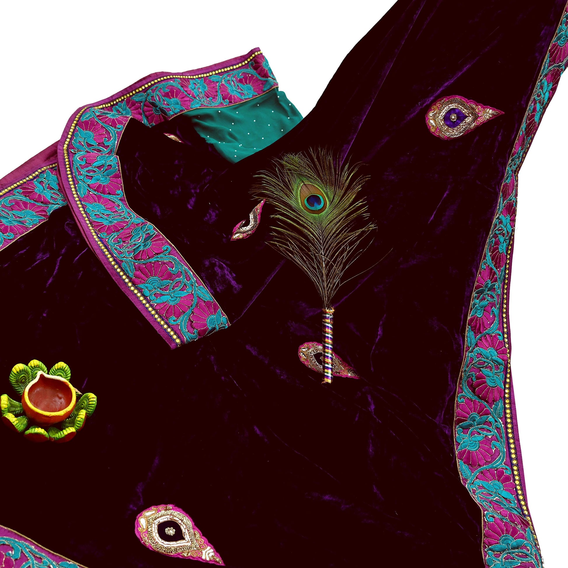 Indian Vintage Heavy Sari Purple Pure Georgette Silk & Velvet Hand Embroidered Sarees Craft Fabric 5Yd Sewing Ethnic Bollywood saree