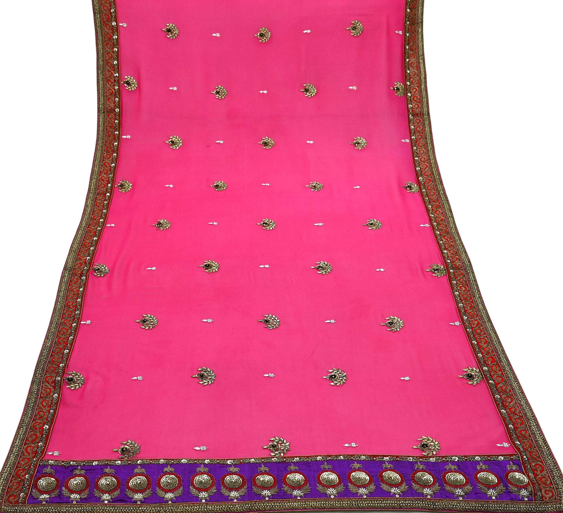 Indian Vintage Heavy Wedding Dupatta Pink Pure Georgette Silk Long Stole Hand Embroidered By Designer Sabyasachi Scarves Zardozi Bridal Veil