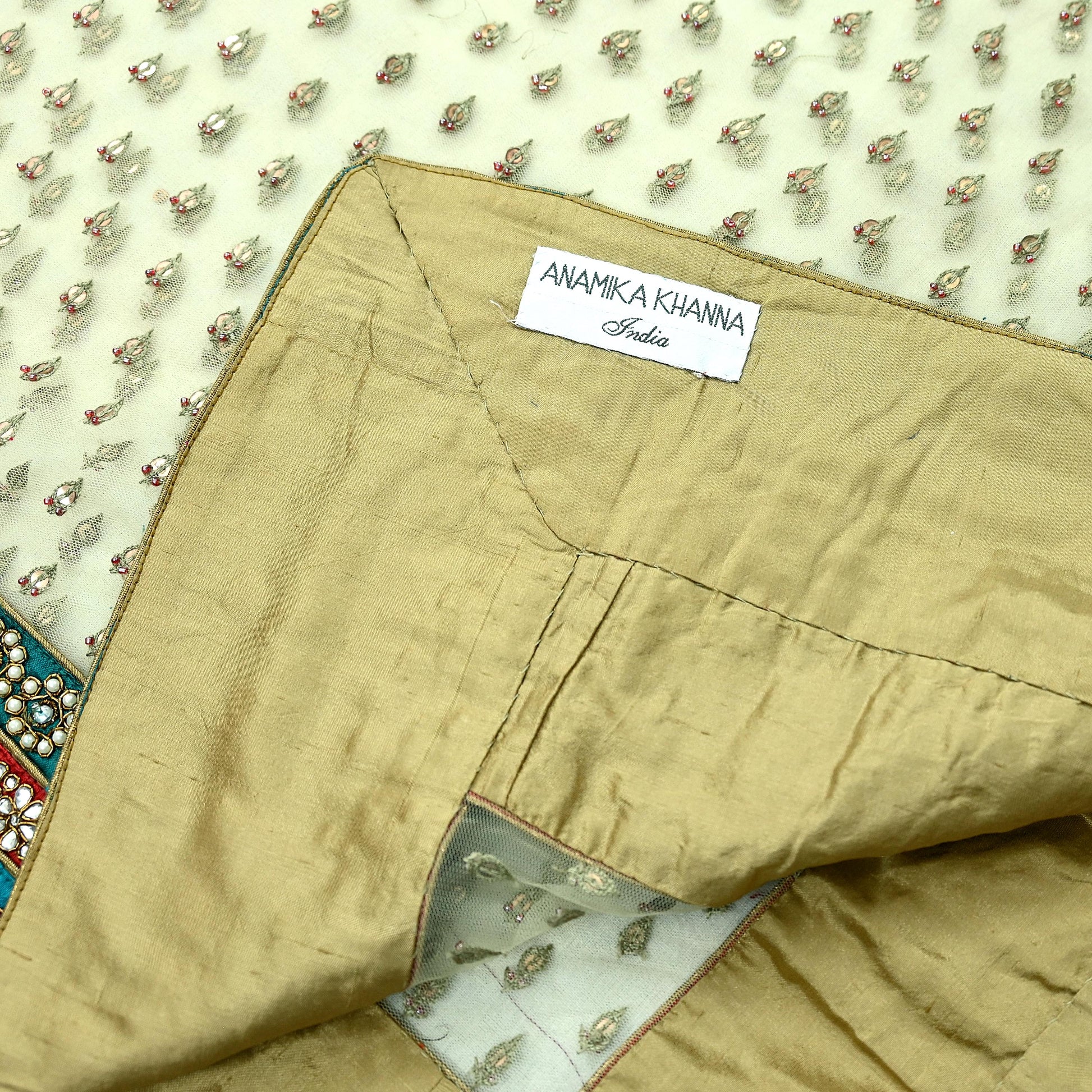 Indian Vintage Heavy Wedding Green Net/Mesh/Velvet Hand Embroidered Dupatta Designer By Anamika Khanna Bridal Wear Dabka Zardozi Veil Hijab