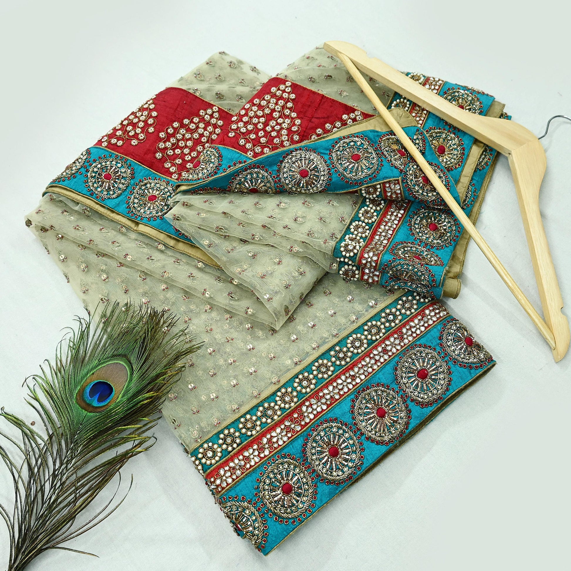 *New Heavy Hand Embroidered Heavy Dupatta Set Designer By Anamika Khanna Net Dupatta/Stole In Green Color.