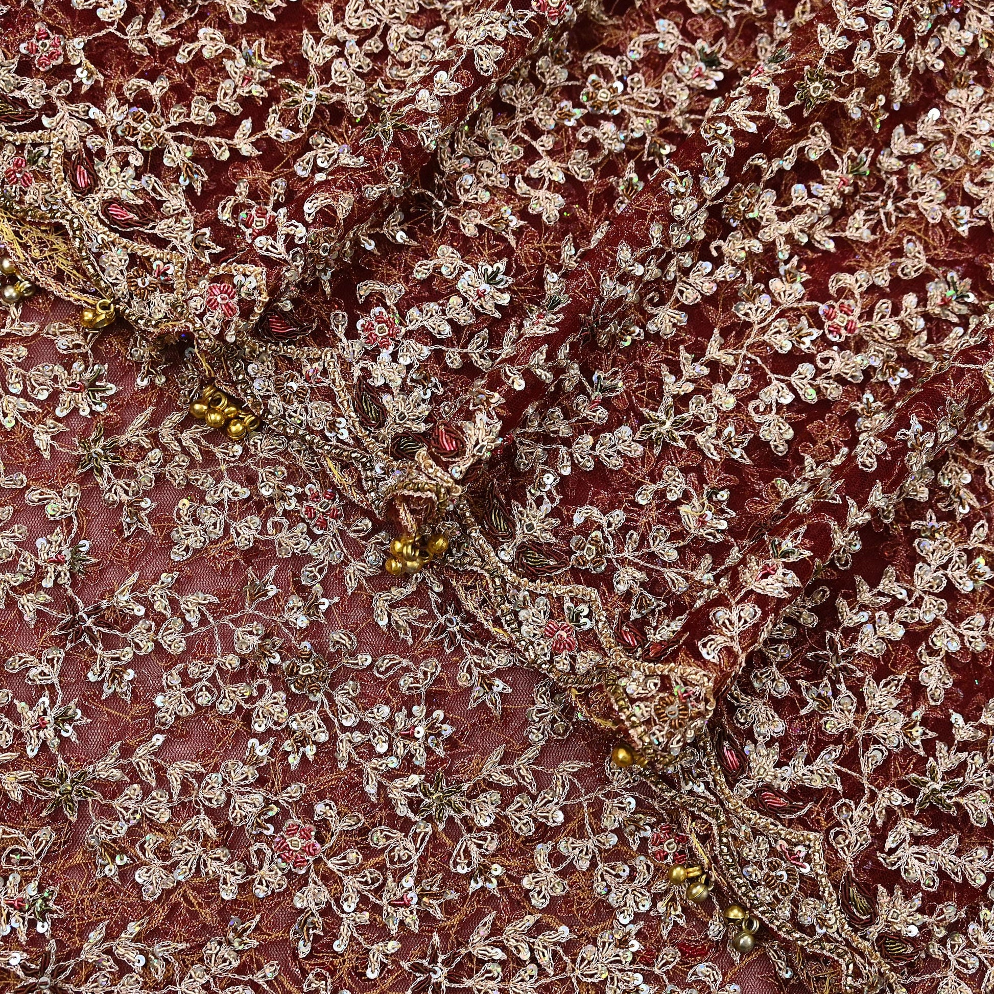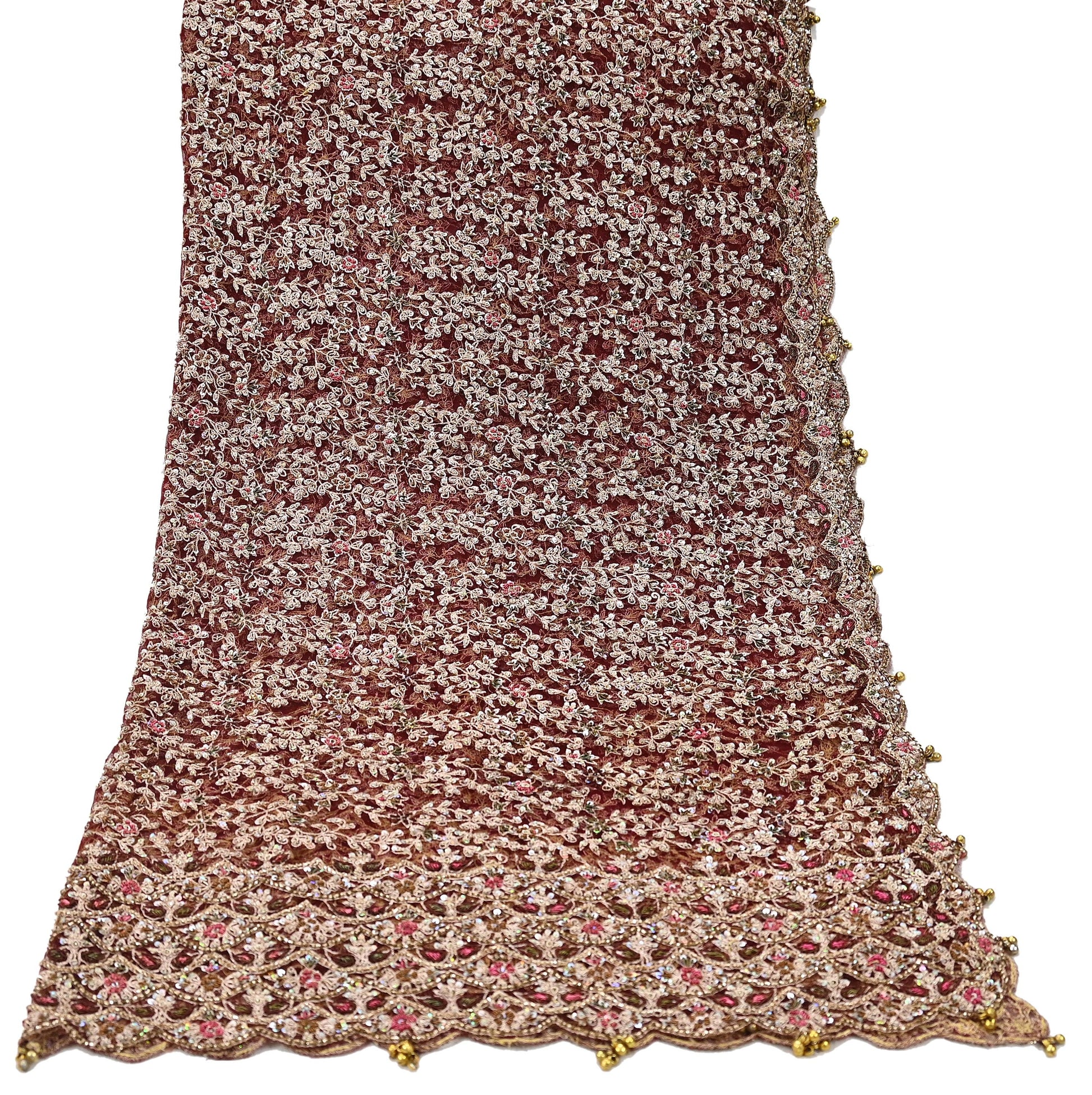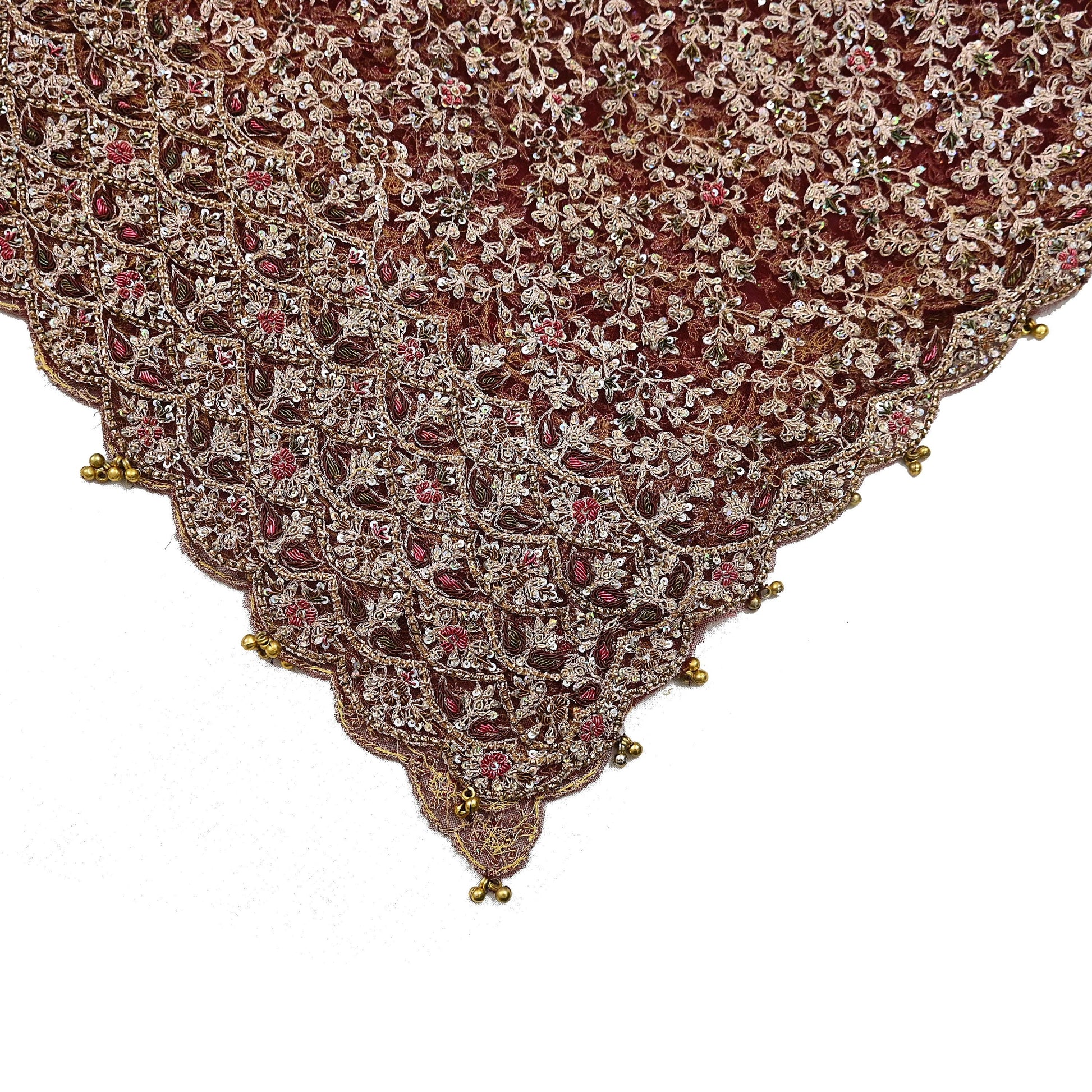 Indian Vintage Heavy Wedding Maroon Dupatta Net Mesh Long Stole Hand Embroidered Scarves Golden Zardozi Zari Sequins Dridal Veil Hijab