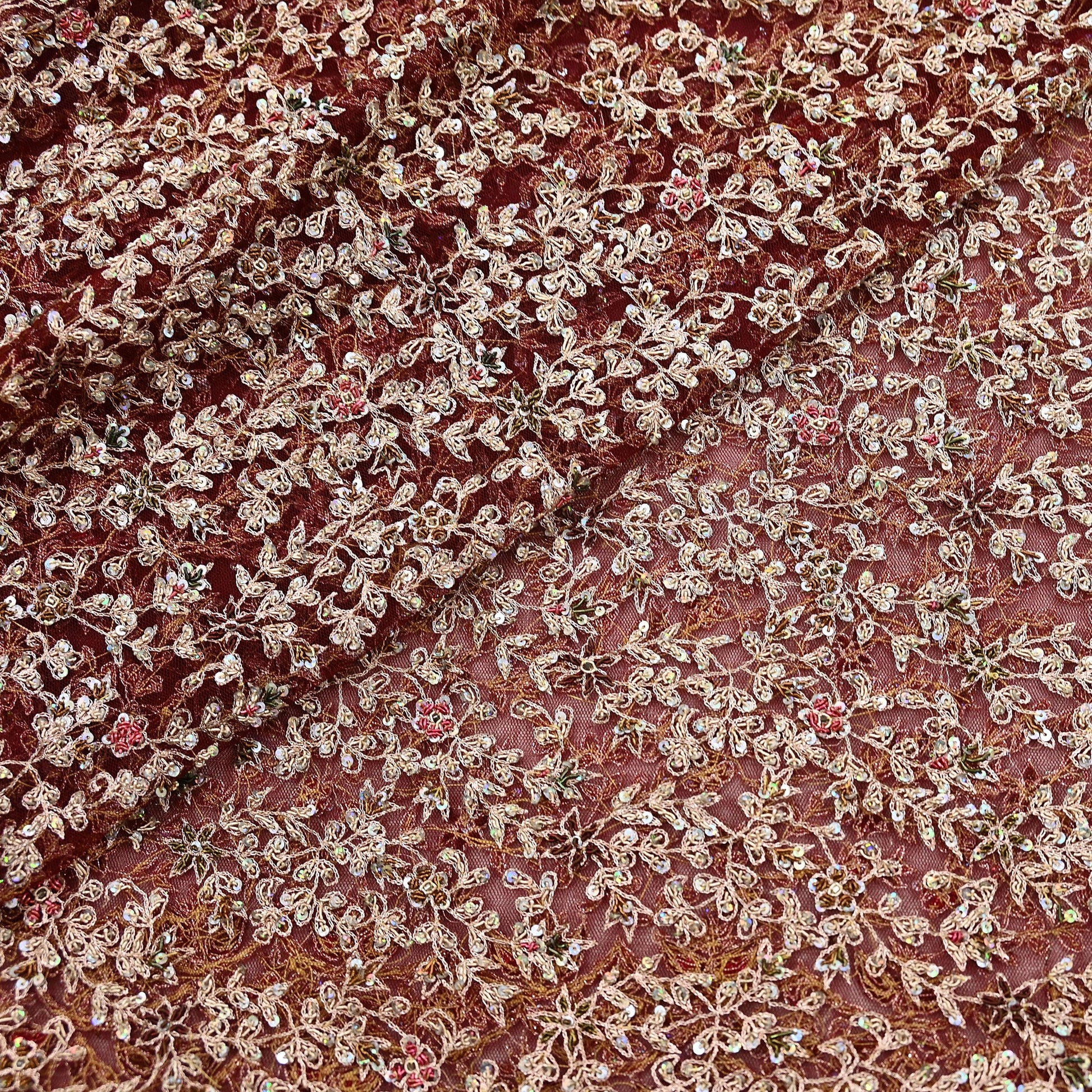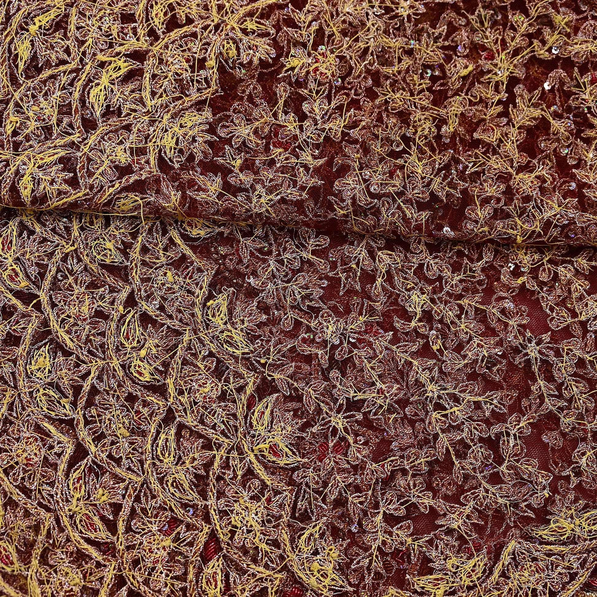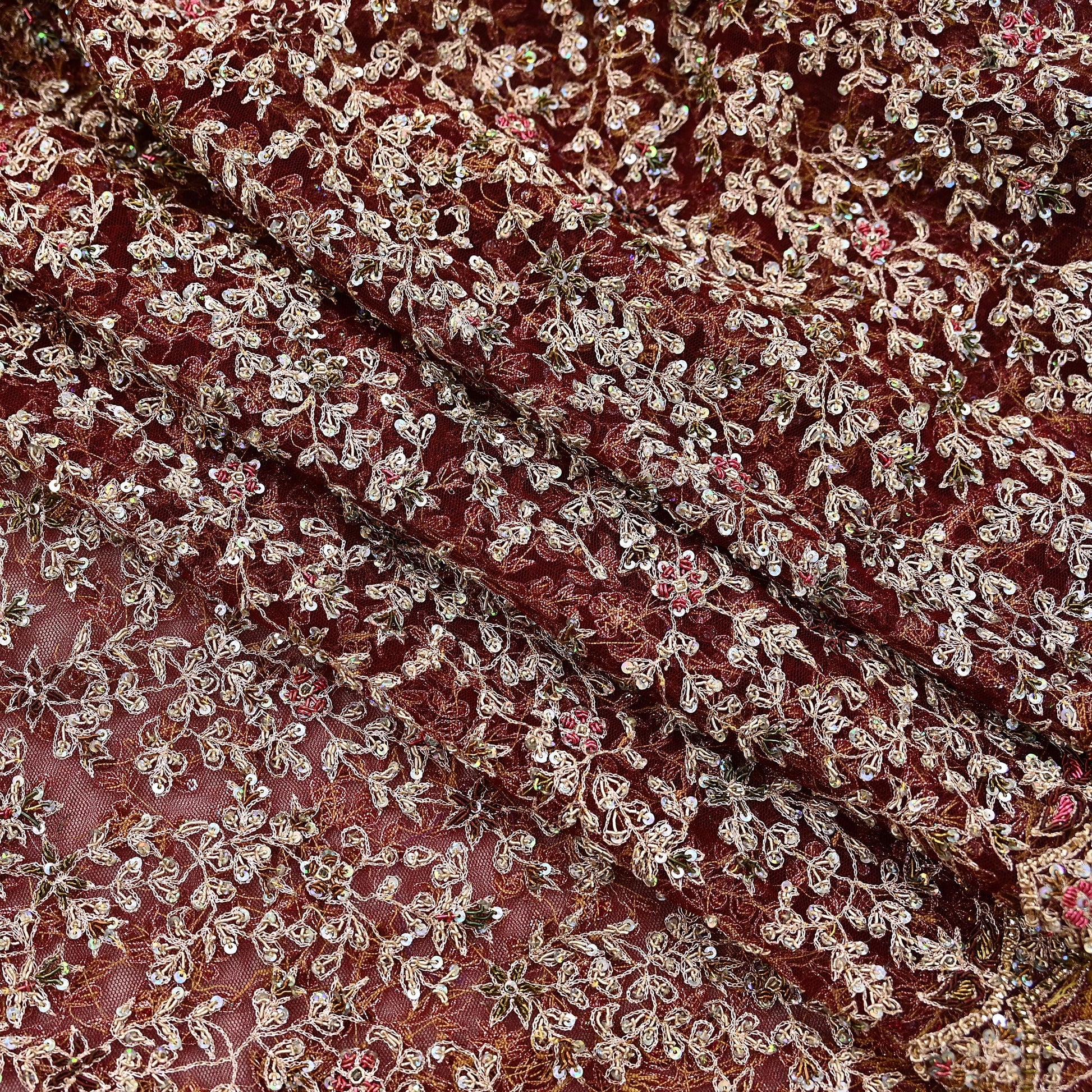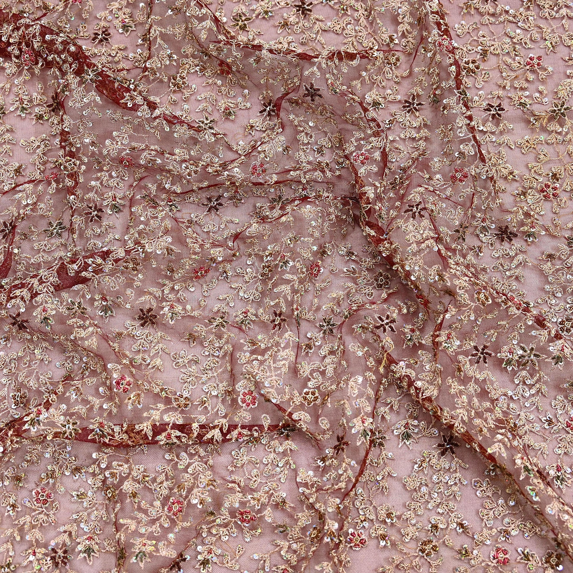 Indian Vintage Heavy Wedding Maroon Dupatta Net Mesh Long Stole Hand Embroidered Scarves Golden Zardozi Zari Sequins Dridal Veil Hijab