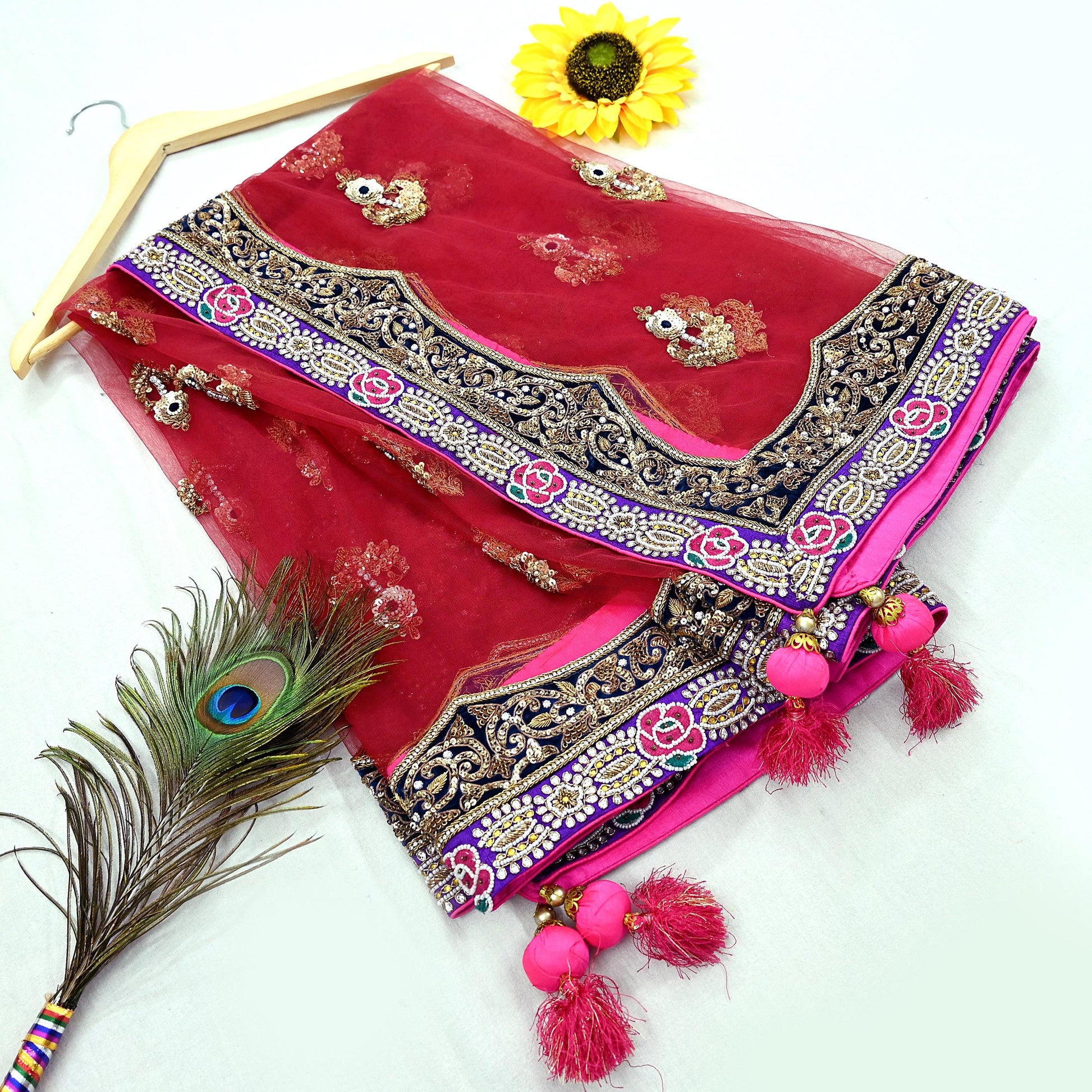 *New Heavy Hand Embroidered Heavy Dupatta Set Designer By Anamika Khanna Net Dupatta/Stole In Maroon Color.