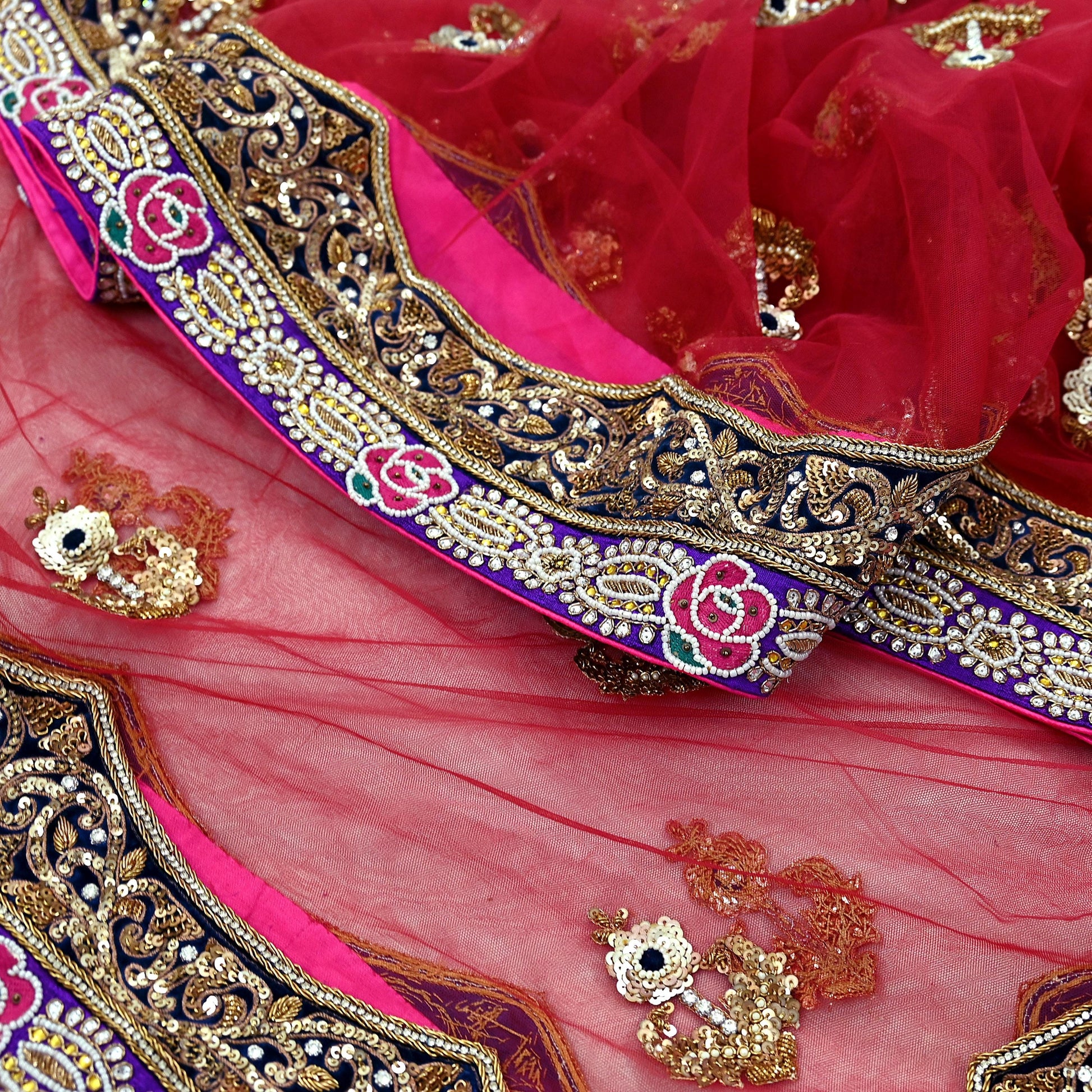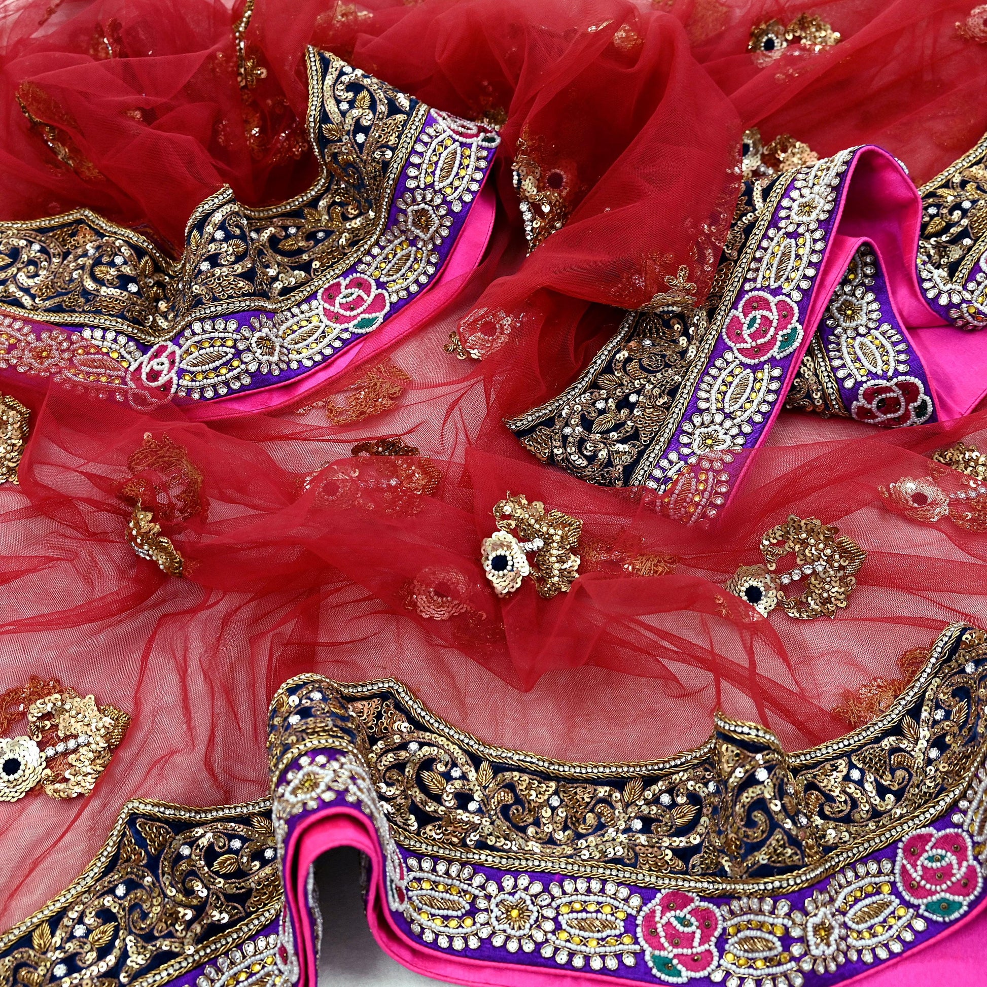 Indian Vintage Heavy Wedding Maroon Net/Mesh/Velvet Hand Embroidered Dupatta Designer By Anamika Khanna Bridal Wear Dabka Zardozi Veil Hijab