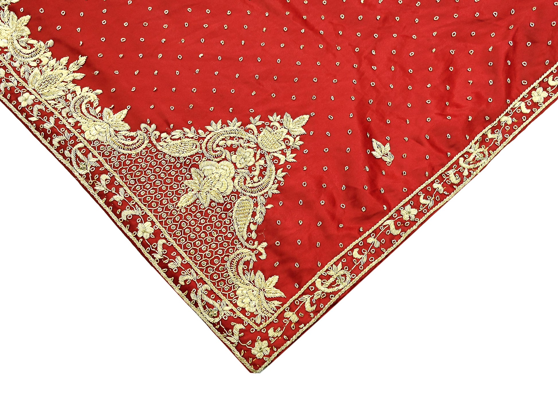 Indian Vintage Heavy Wedding Red Dupatta Pure Satin Silk Long Stole Hand Embroidered Scarves Golden Zardozi Bridal Heavy Dupatta hijab veil