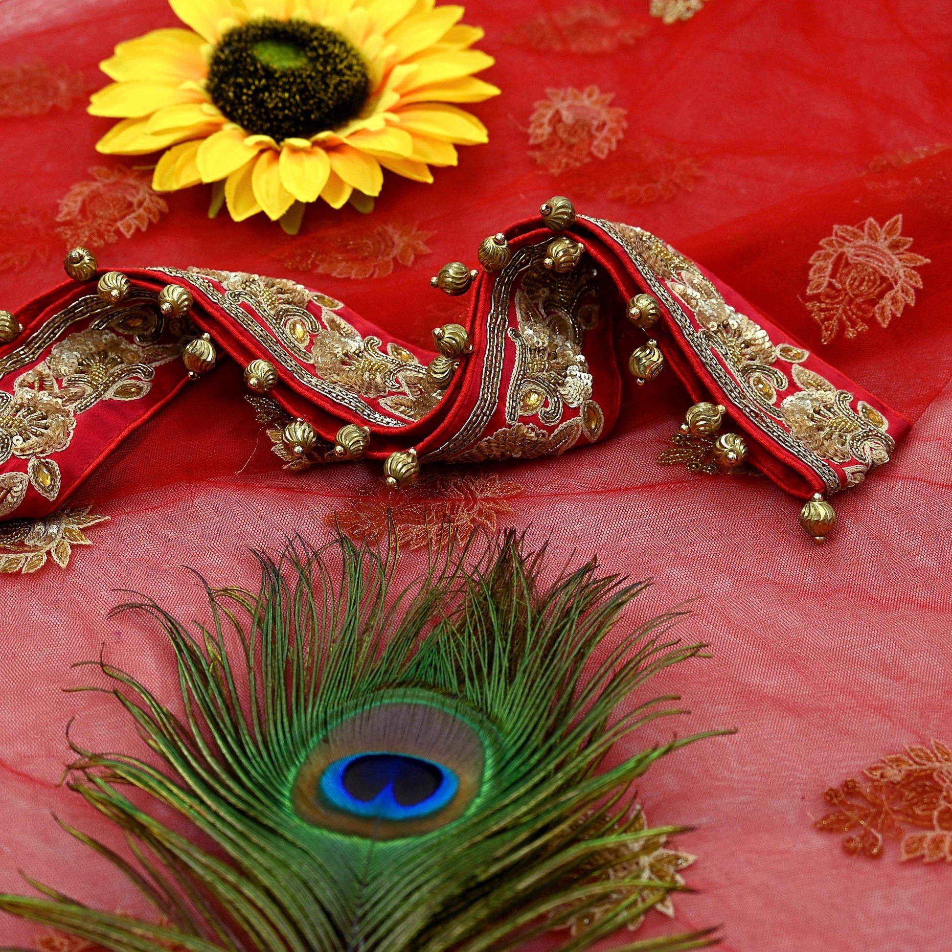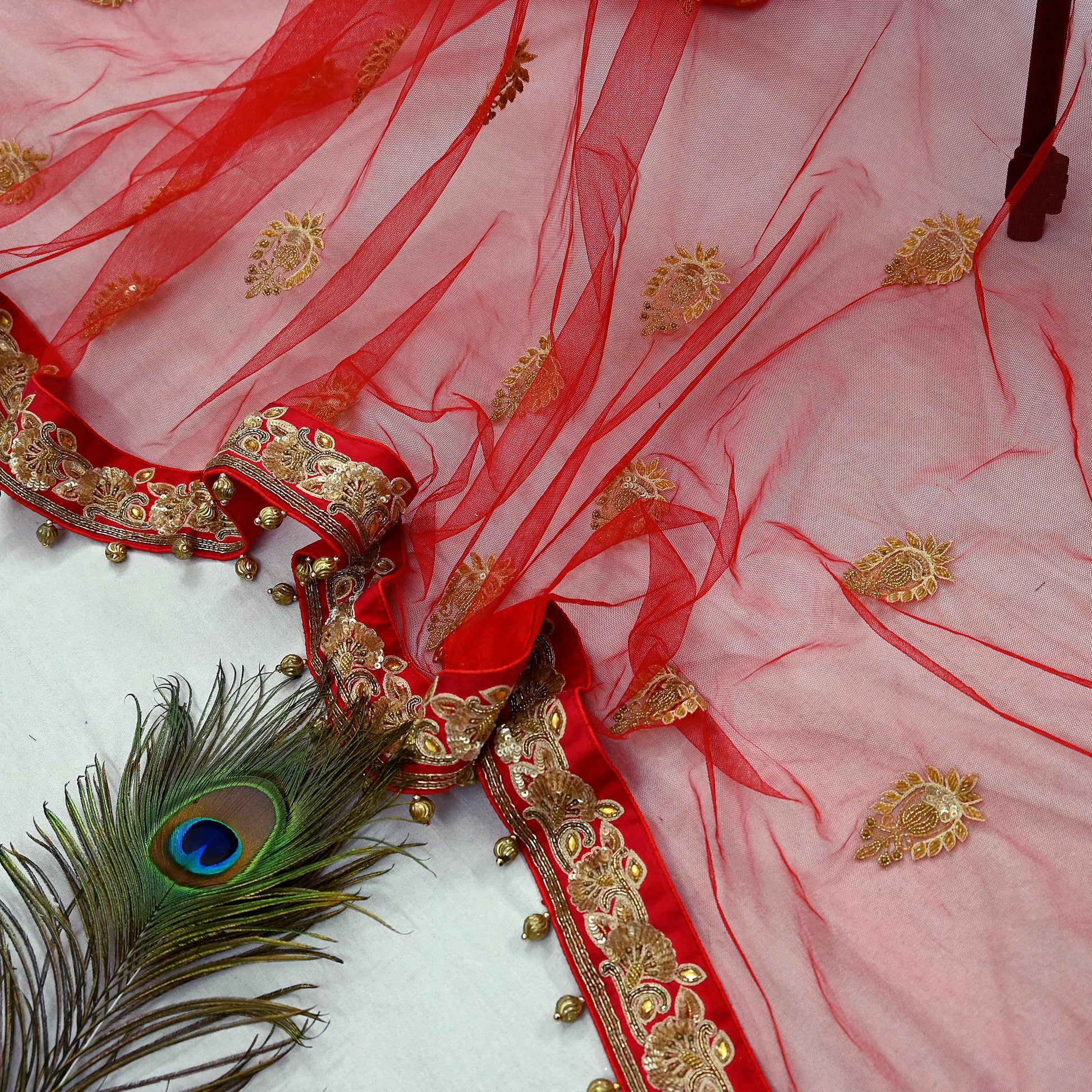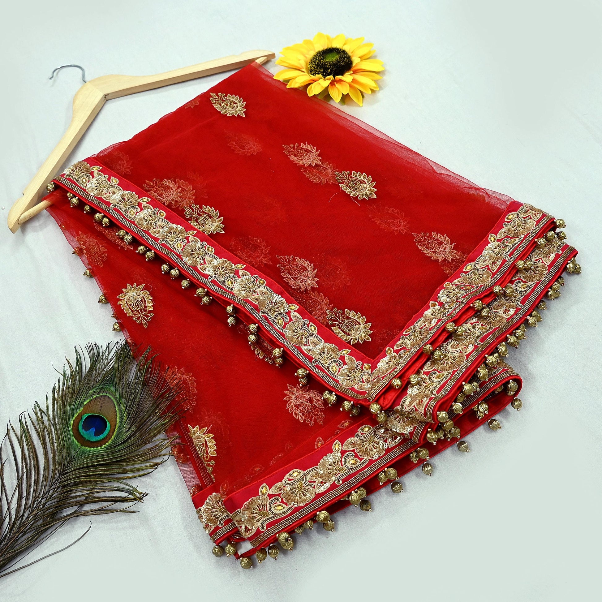 Indian Vintage Heavy Wedding Red Net/Mesh/ Velvet Hand Embroidered Dupatta Designer By Manish Malhotra Bridal Wear Zardozi Veil Hijab