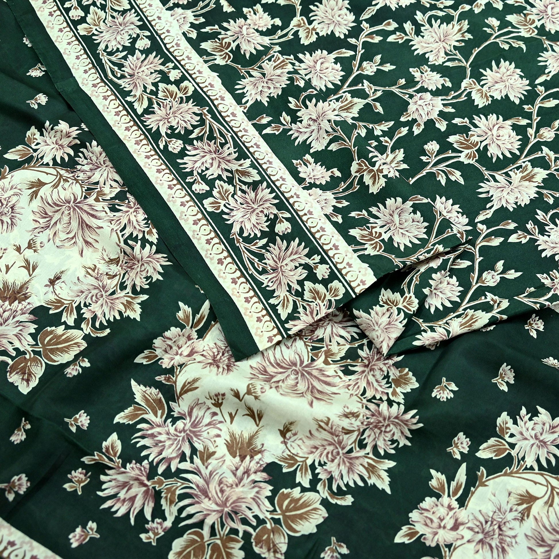 Indian Vintage Ivory & Green Saree Pure Silk Printed Sari 6yd Sewing Craft Fabric Dress Making Soft Crafting Quilting Quilting Upcycle