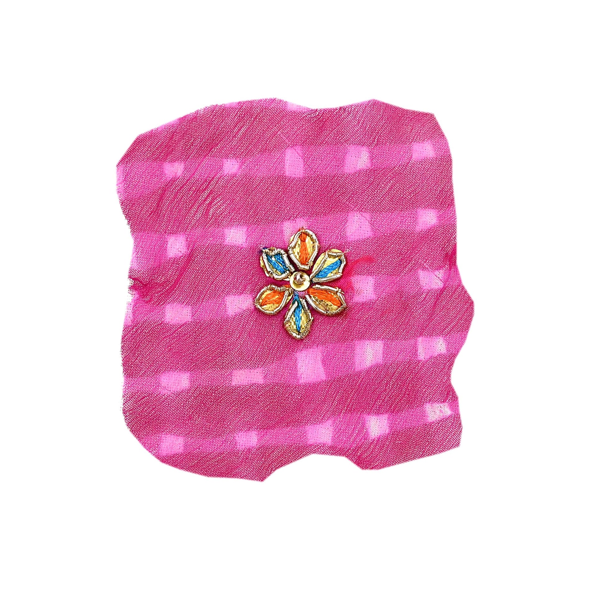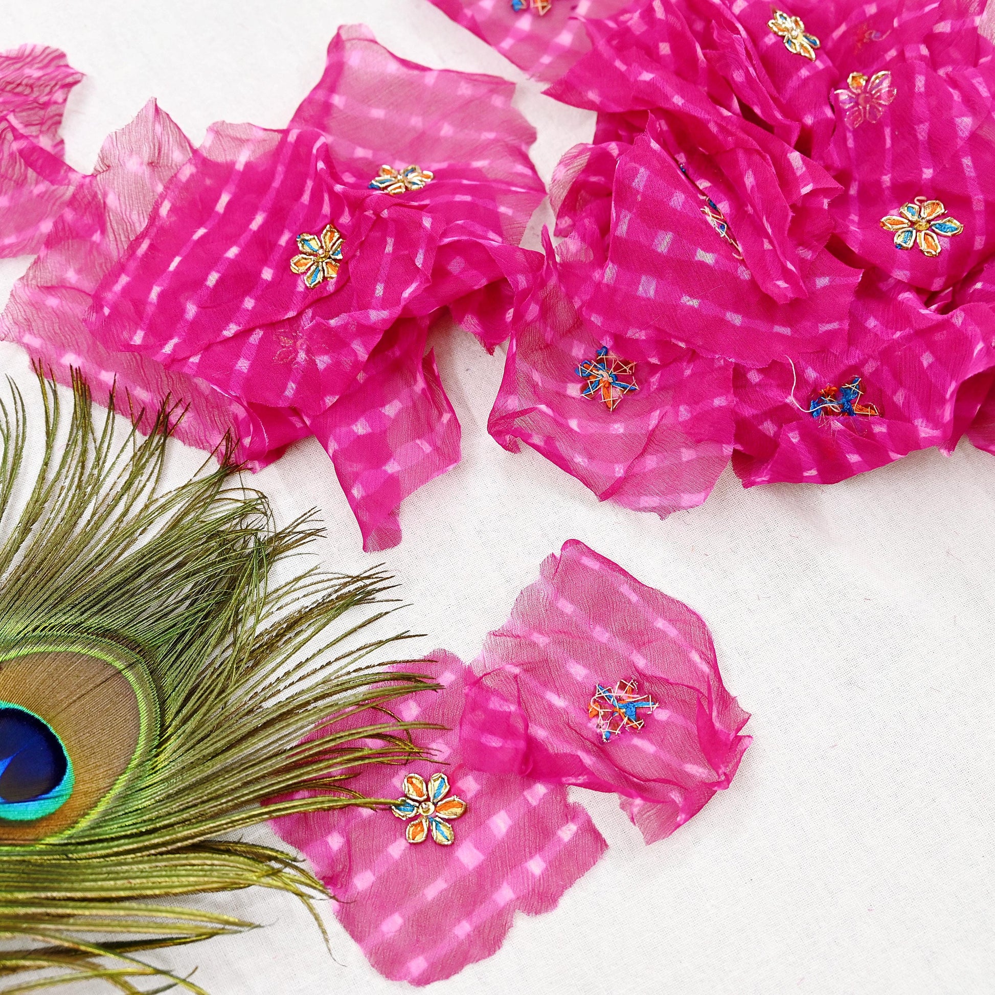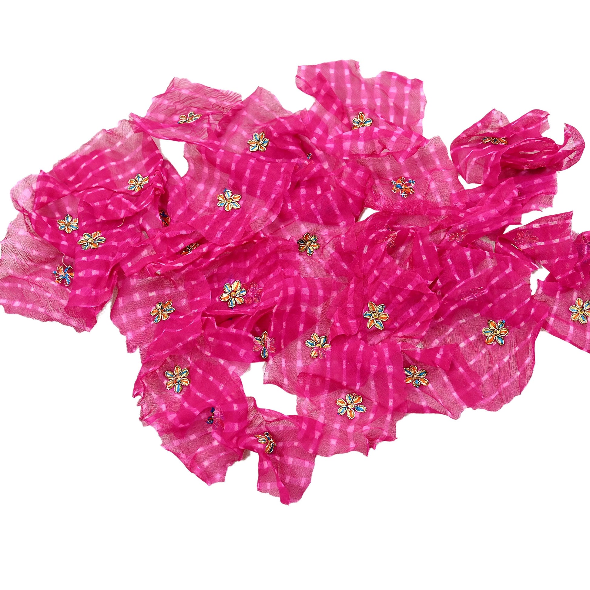 Indian Vintage Magenta Pure Chiffon Silk Appliques Set of 35 | Hand-Embroidered bandhani Floral Patches Zardozi, for Craft, Journals