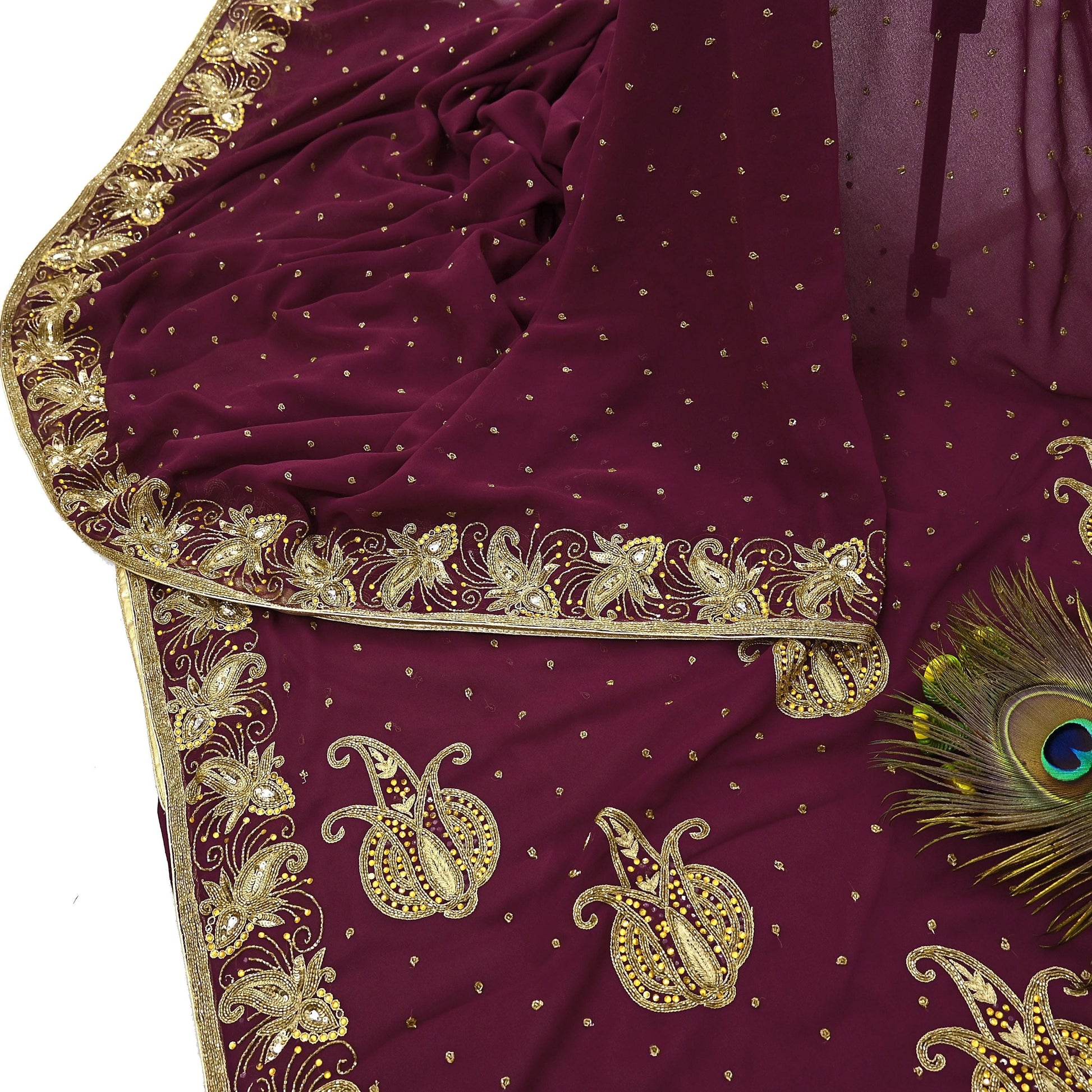 *Awesome Beautiful Maroon Colored Hand Embroidered Georgette Sari.