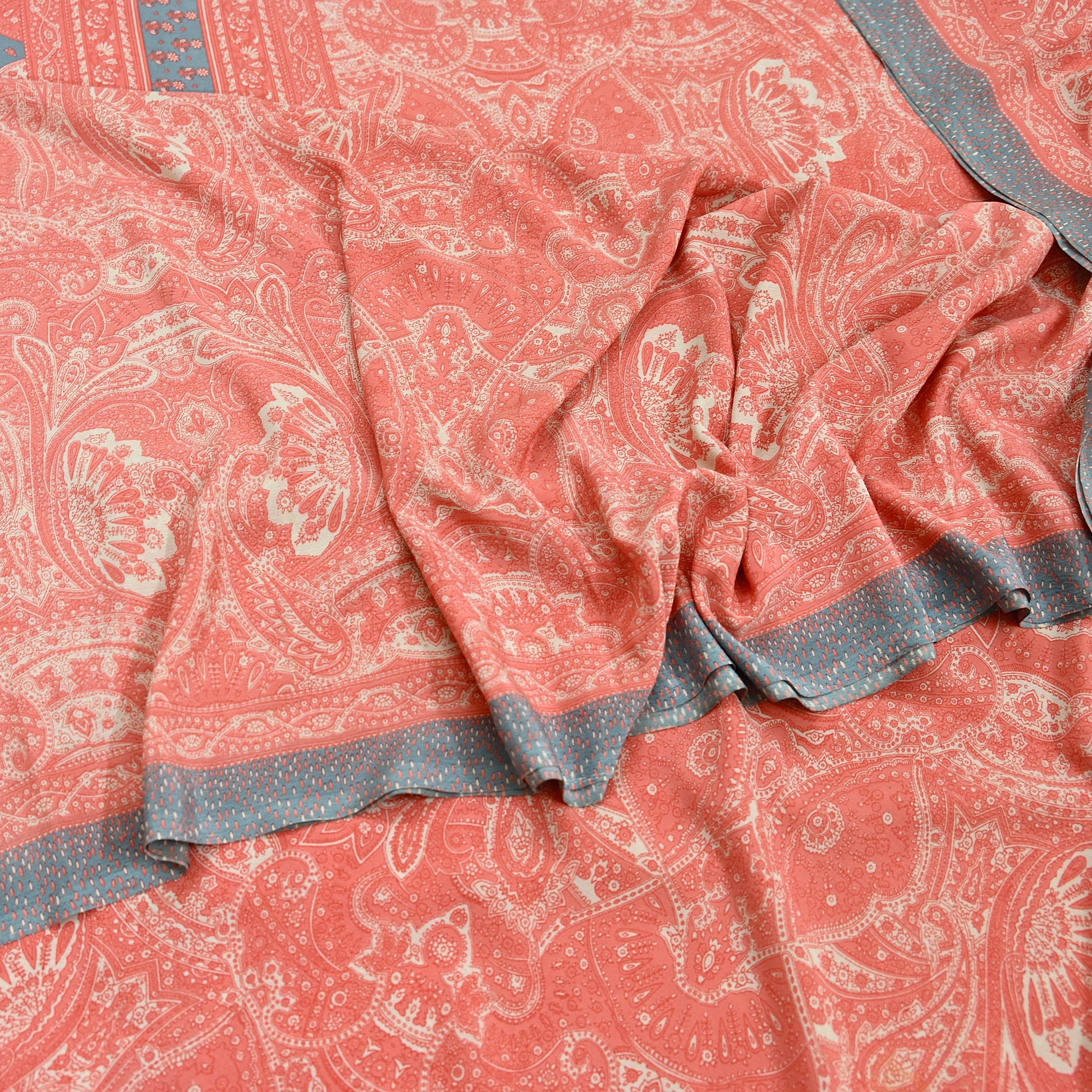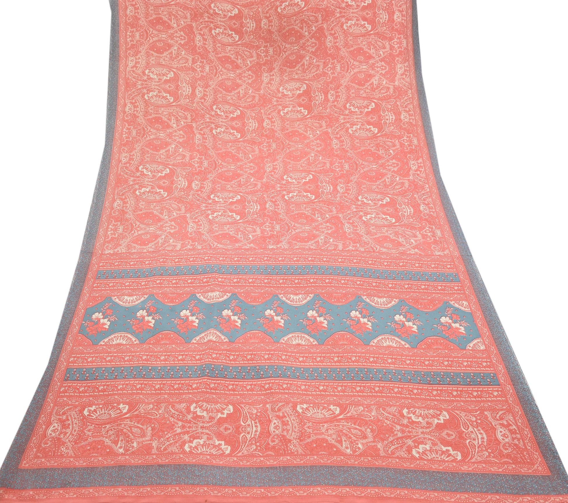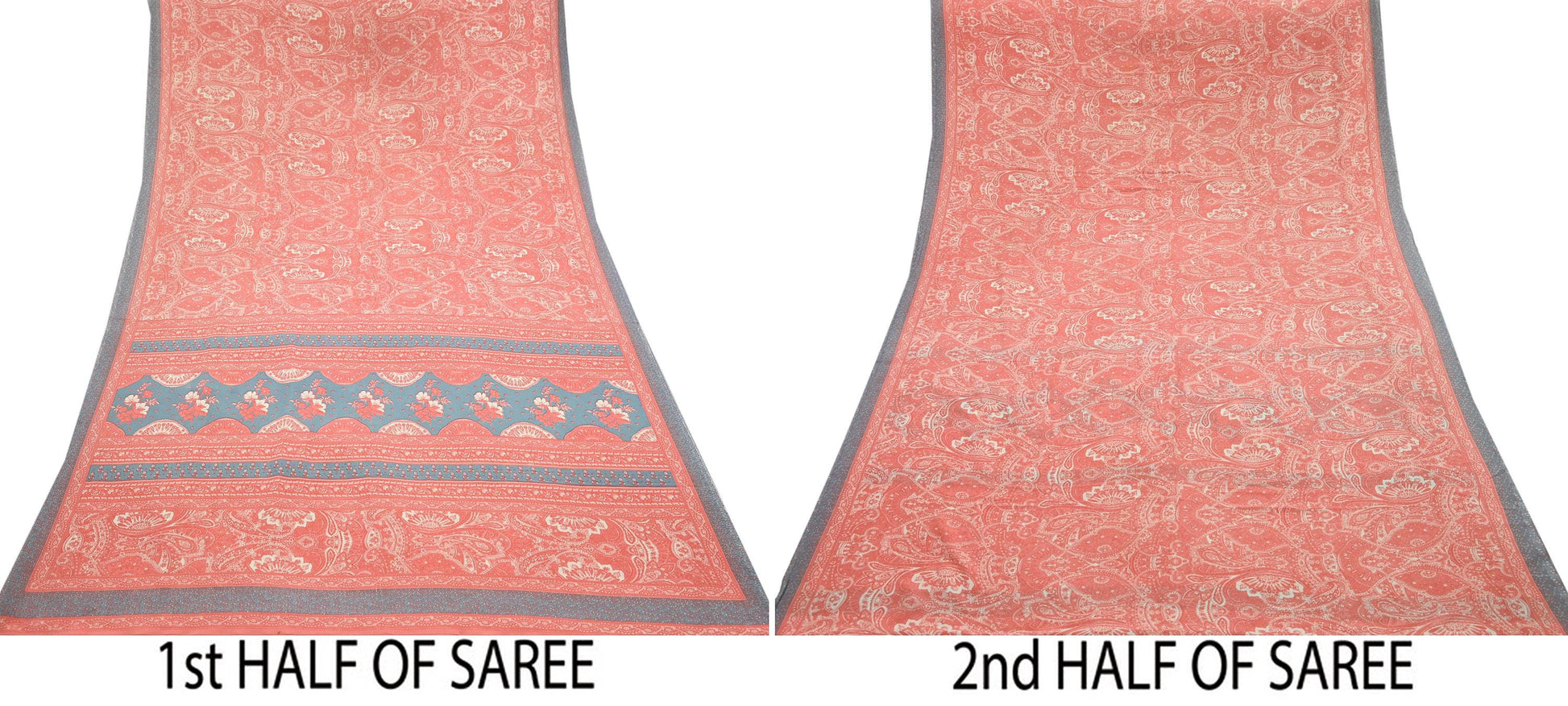 Indian Vintage Moss Crepe Saree | Printed Floral Sari Fabric | 6 Yards | Soft Craft Fabric for Sewing, Dressmaking, Quilting,Upcycling