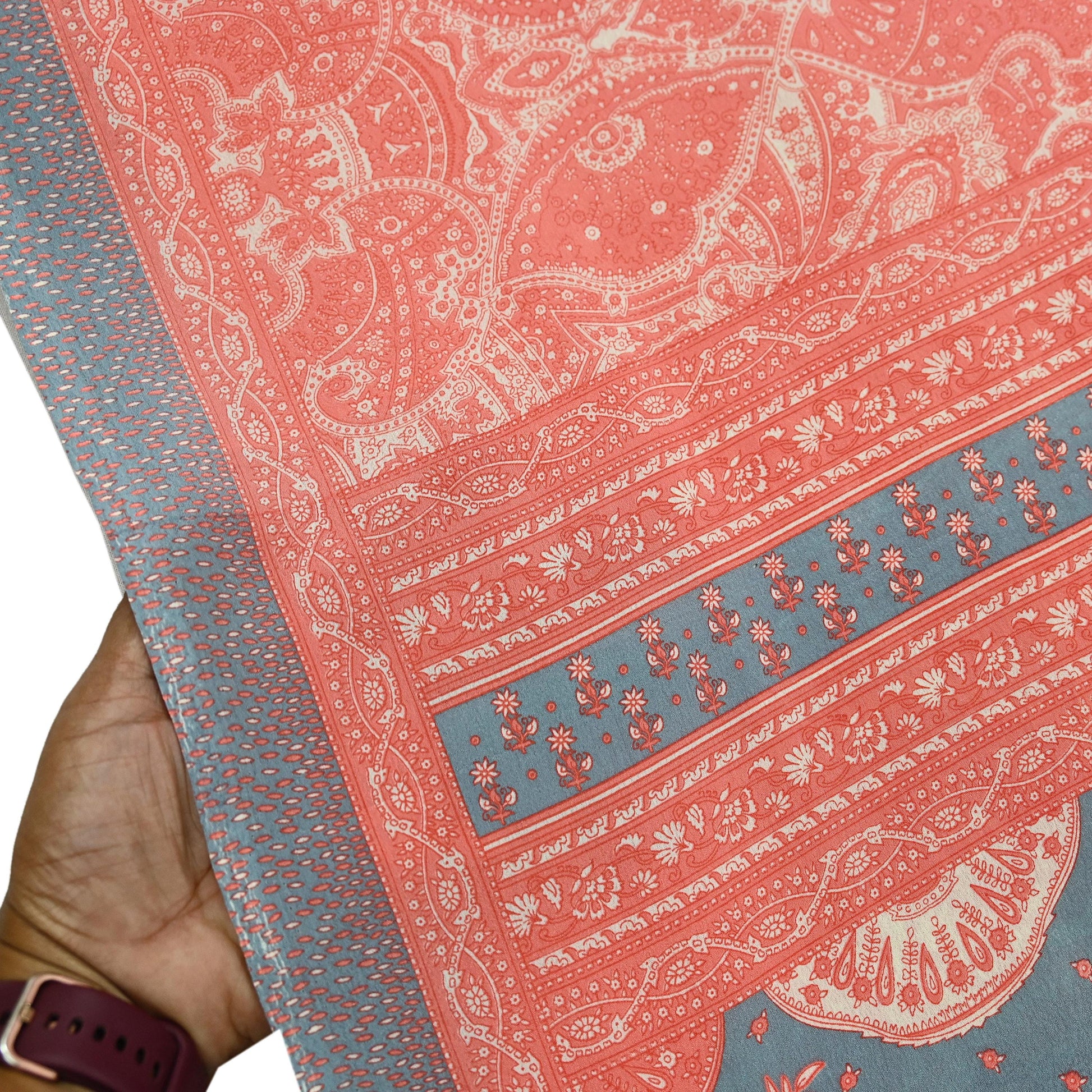 Add a touch of vintage charm to your creations with this lovely Peach & Ivory moss crepe saree, featuring elegant printed floral designs on the pallu, border, and center. Lightweight yet durable, this saree drapes gracefully and offers the soft, textured feel of crepe silk—though it’s crafted from strong polyester moss crepe, making it ideal for versatile use.