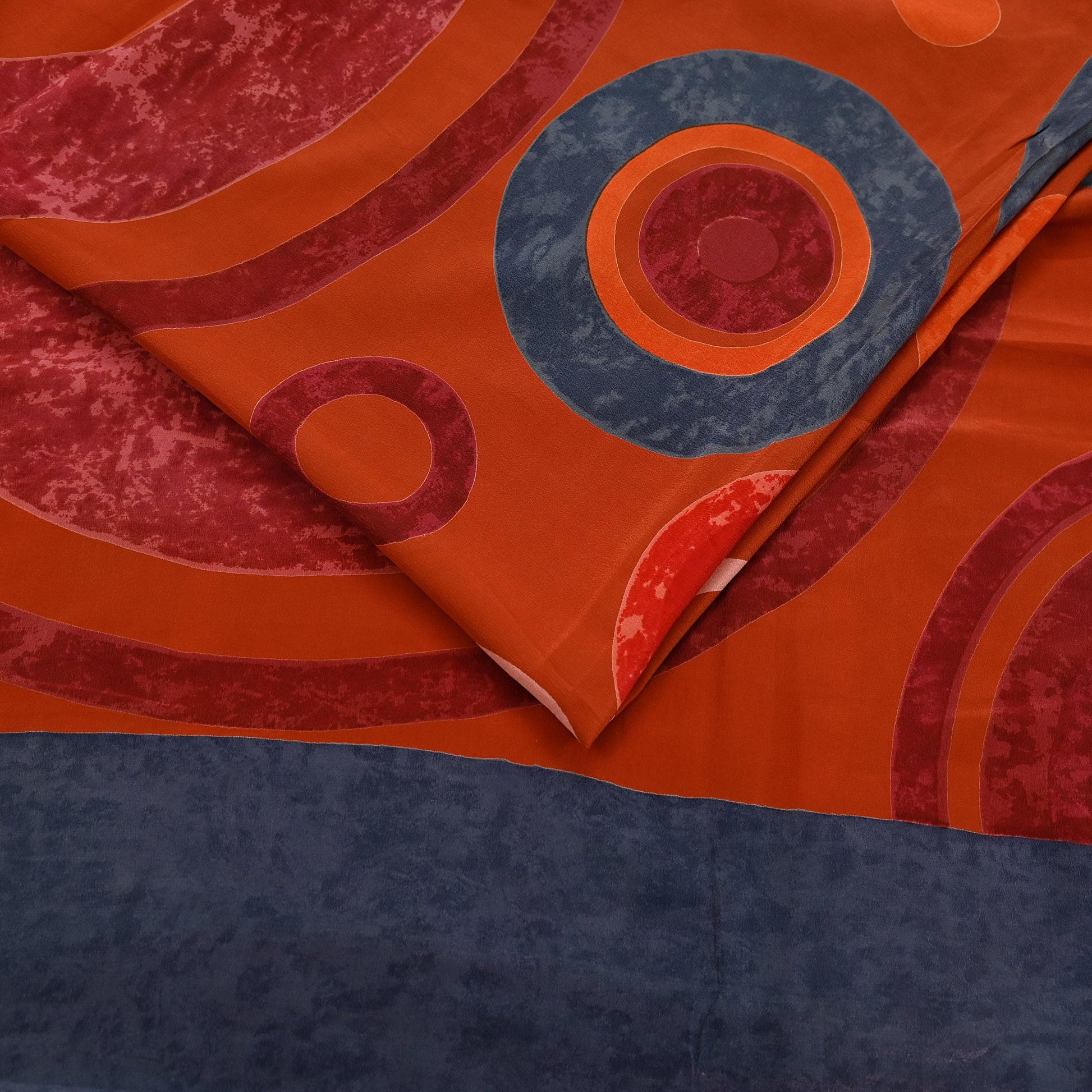 This elegant vintage Multi saree, crafted from 100% pure crepe silk, features a soft texture and graceful drape that make it perfect for both wear and creative reuse. Decorated with abstract printed motifs across the pallu, border, and center, it offers a striking, artistic appeal.