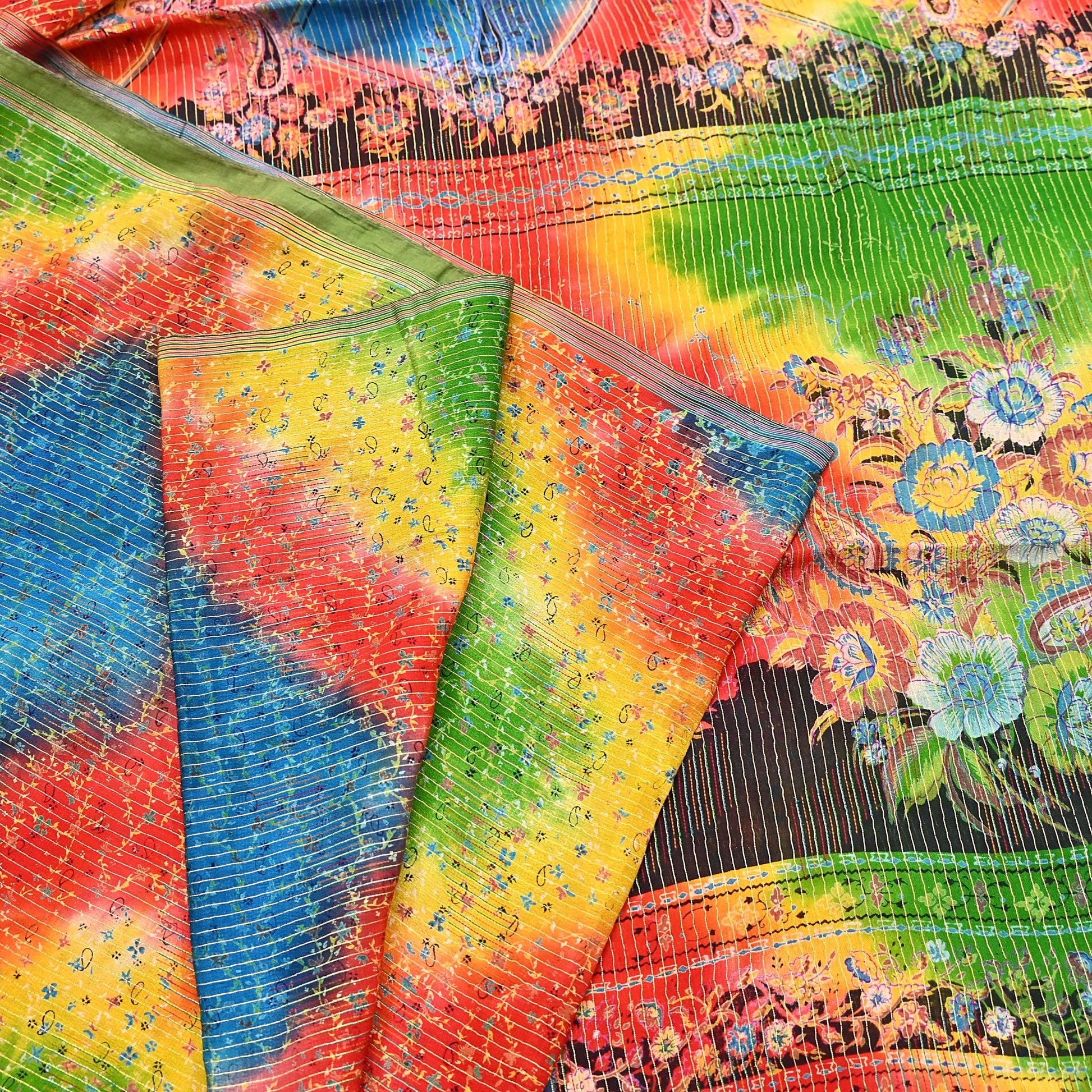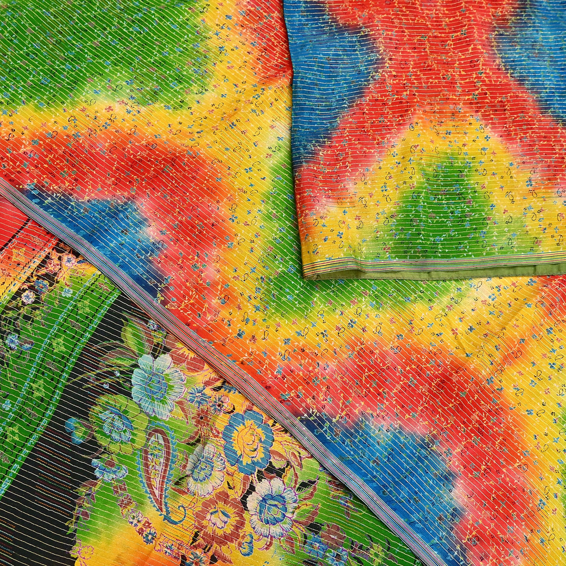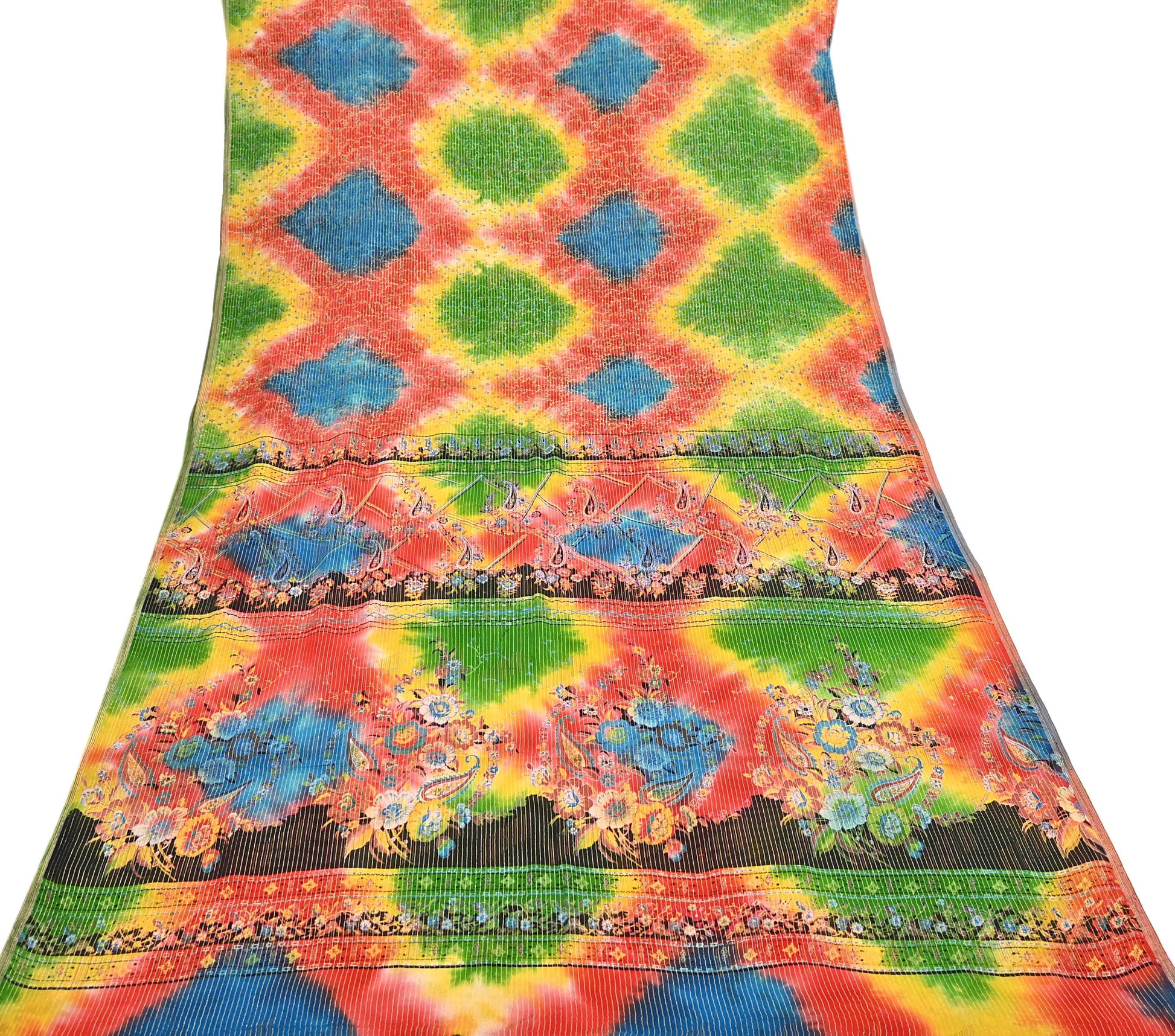Indian Vintage Multi Saree 100% Pure Silk Printed Sari Craft Fabric 5yd Sewing Dress Making Soft Floral Crafting Quilting Upcycle Zari