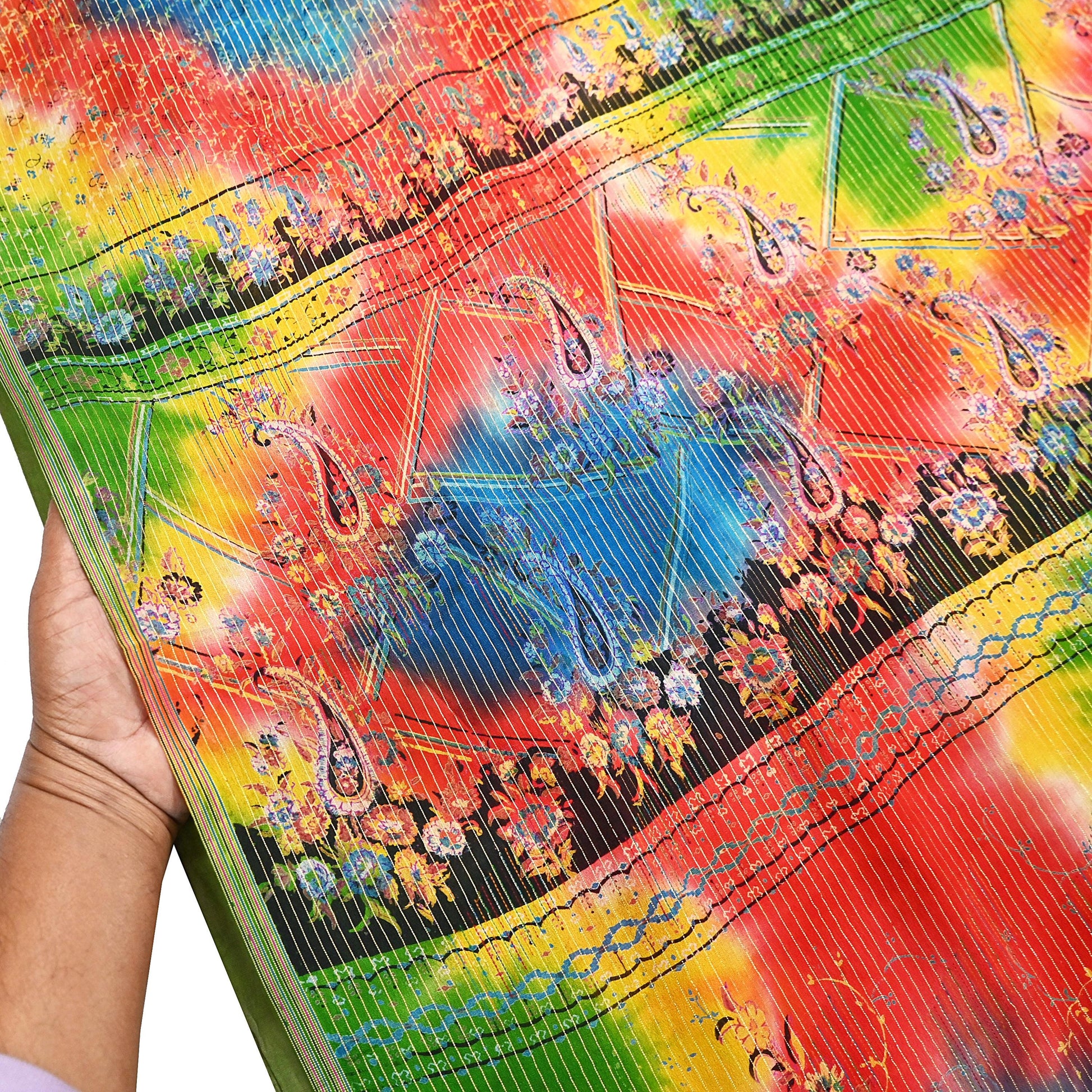 Nice Floral Design With Printed Work On Pure silk Base Fabric Is Really Enhancing The Beauty Of The Saree.