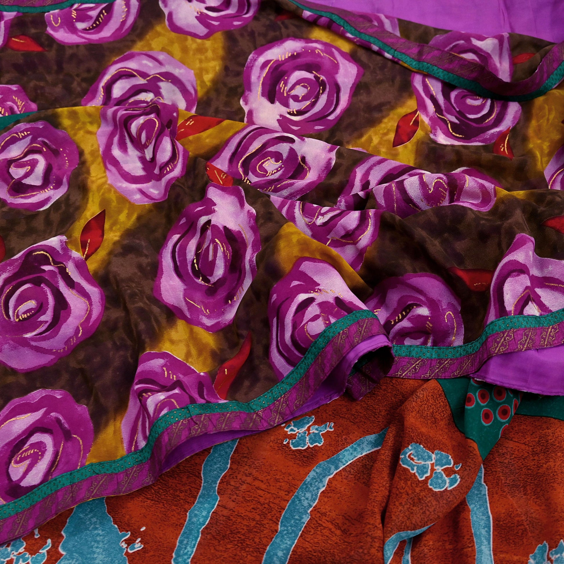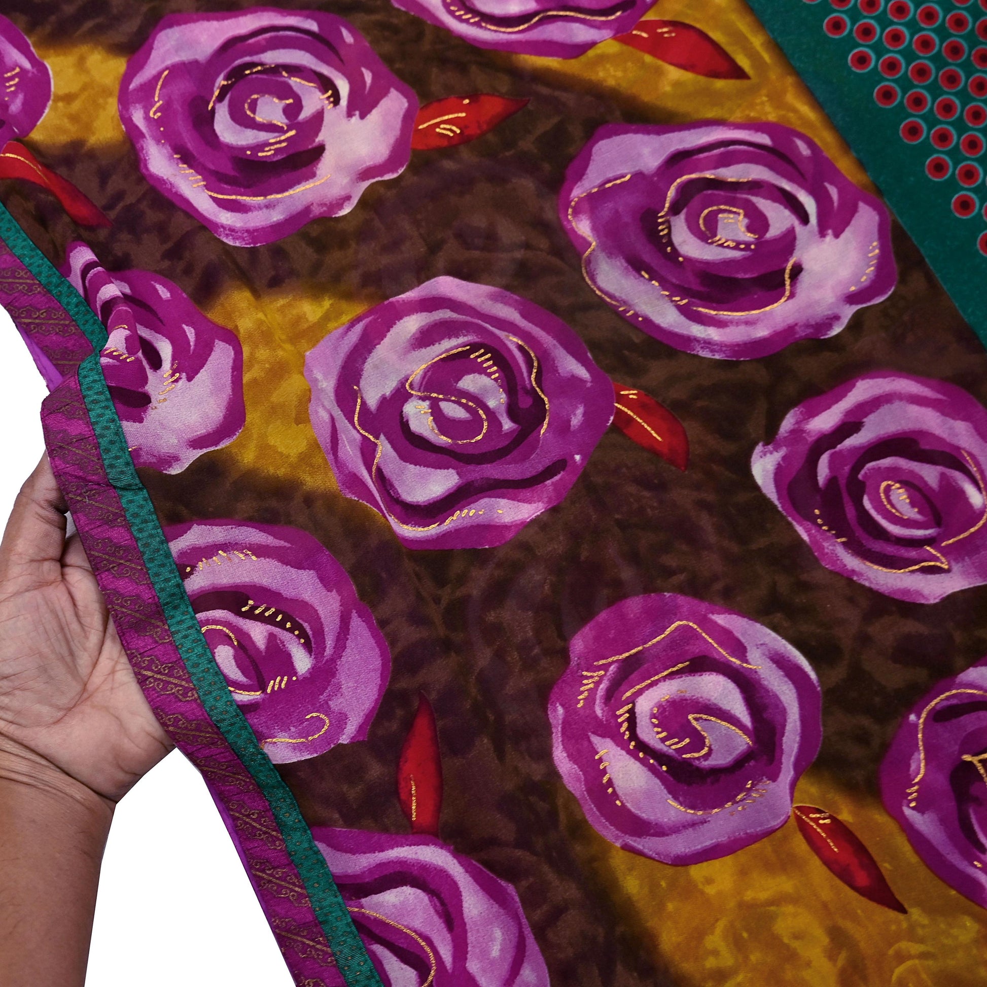Indian Vintage Multi Saree Georgette Digital Printed Sari Sewing 6yard Craft Soft Crafting Dress Making