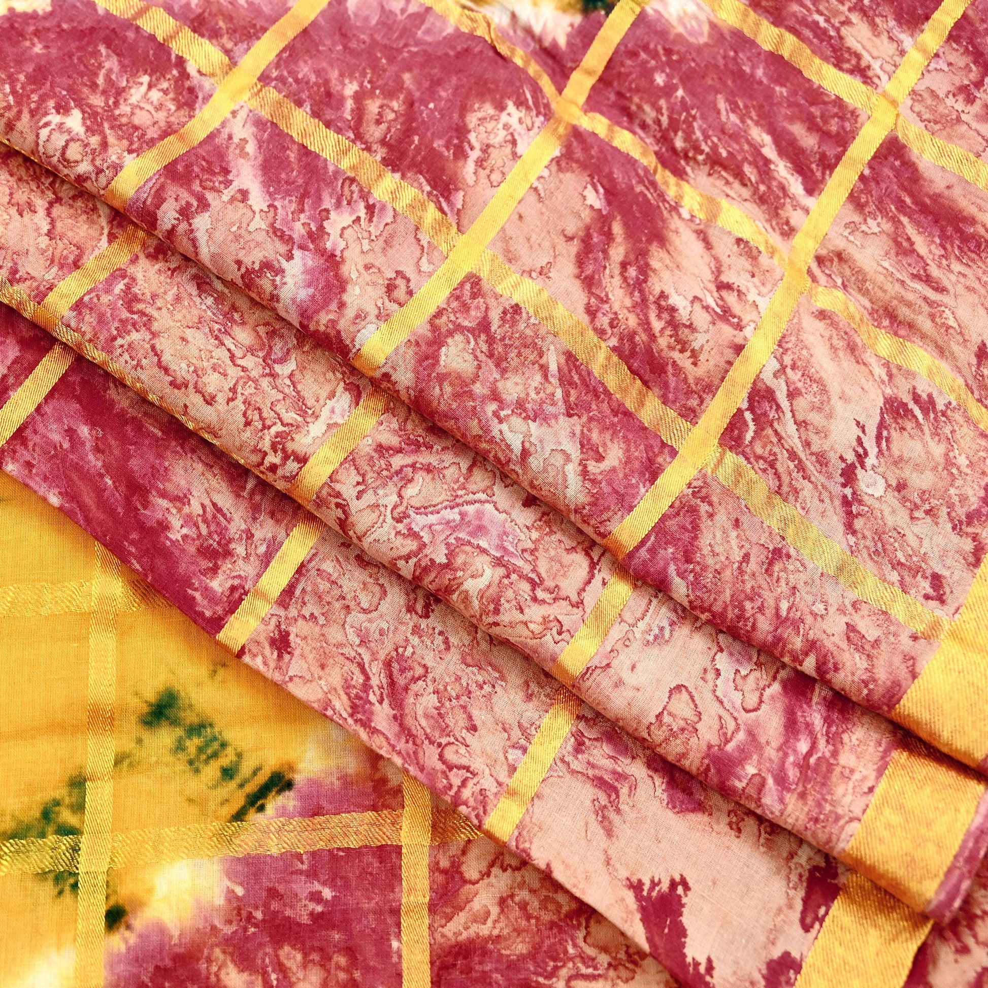 *Bandhani Design In Center Part Of Sari. With Woven Work.