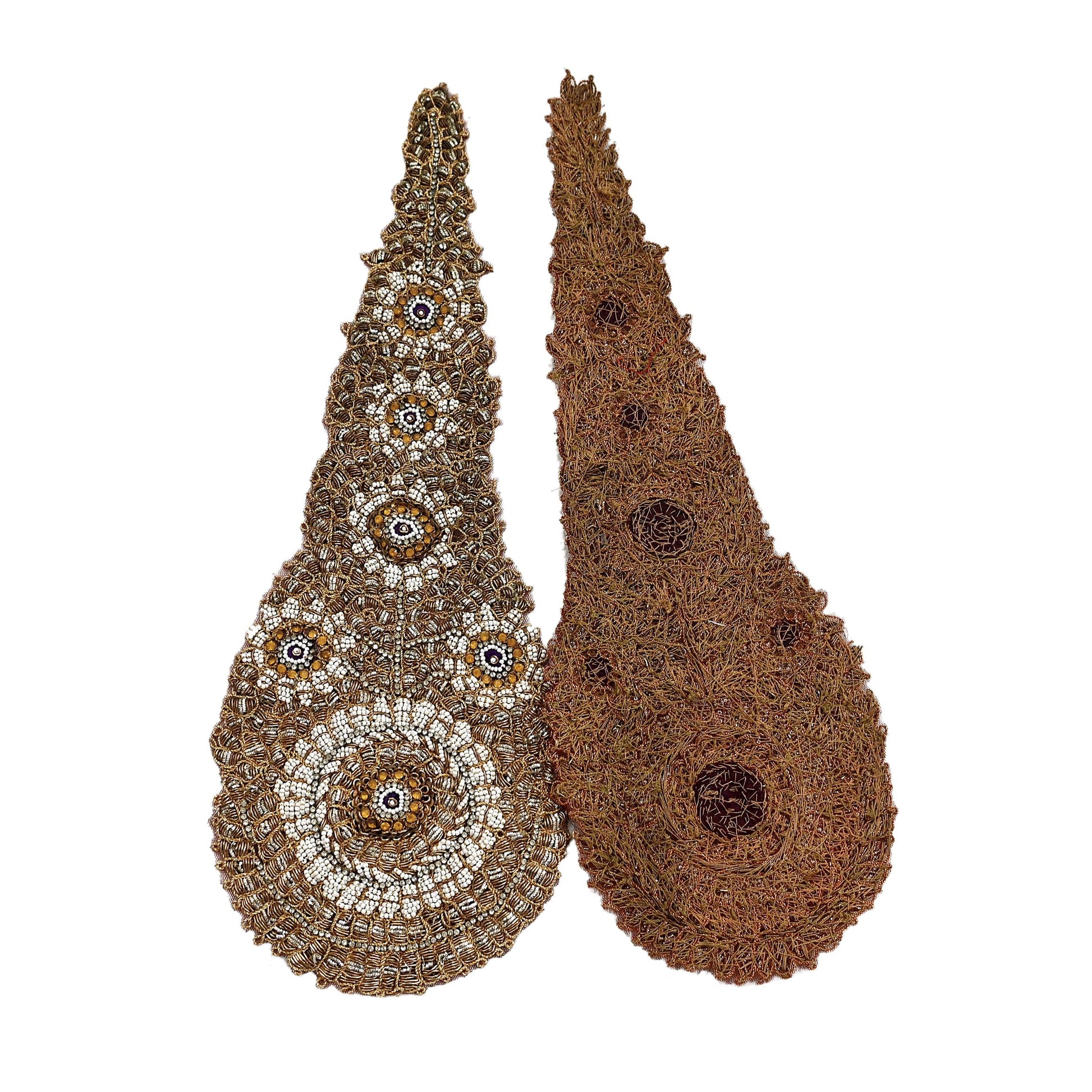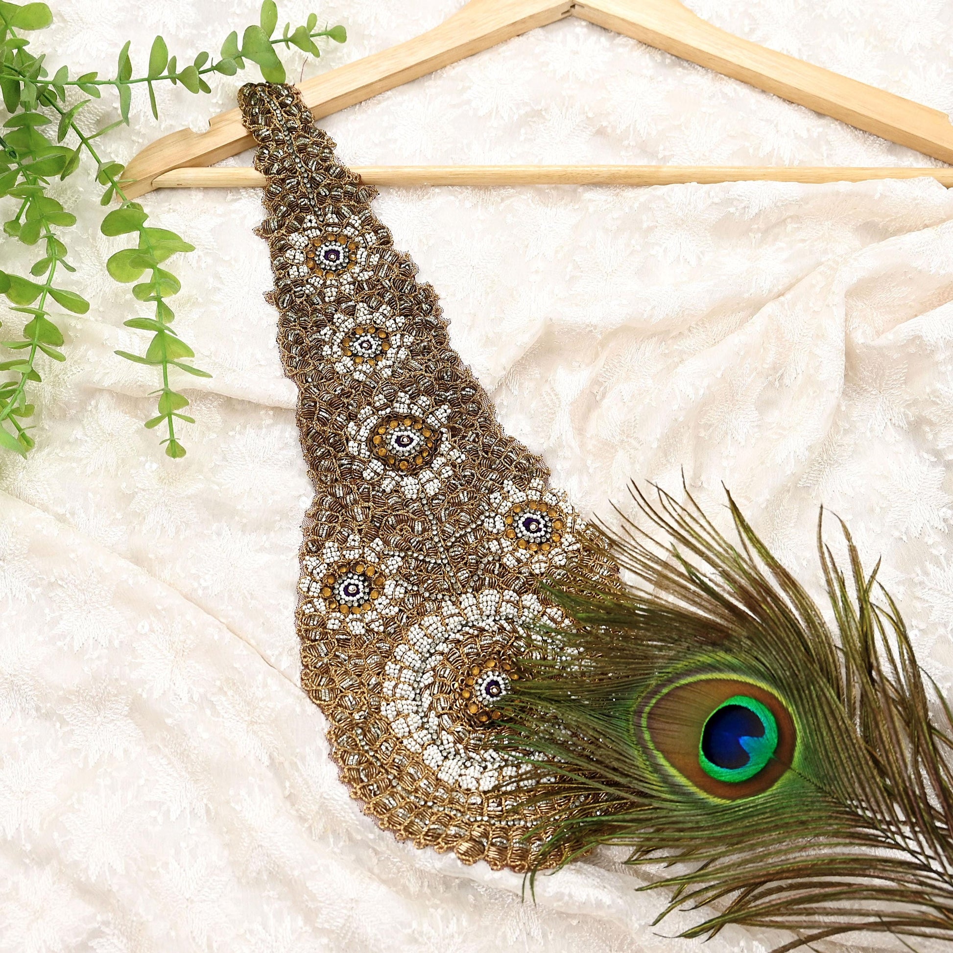 Indian Vintage Net/Mesh Appliques Set of 1 | Hand-Embroidered Floral Patches with Zardozi,Dabka, Zari,for Craft, Journals